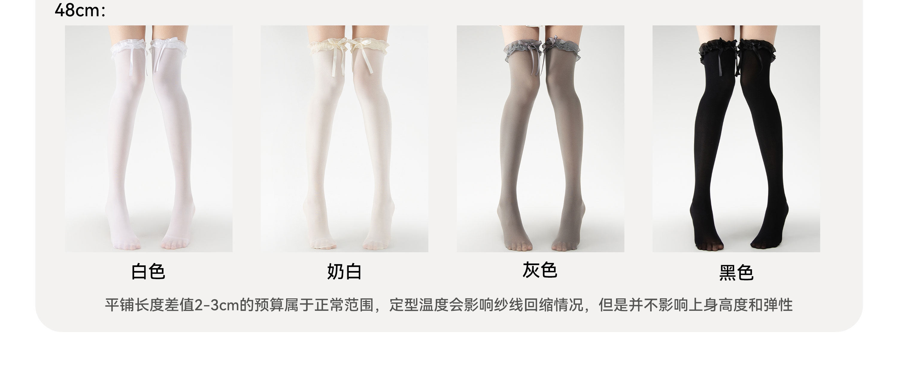 Arriving at the First Floor, Velvet Lace Over-The-Knee Socks in Black, Slimming Bow Thigh-High Socks, Milky White Sweet Calf Socks