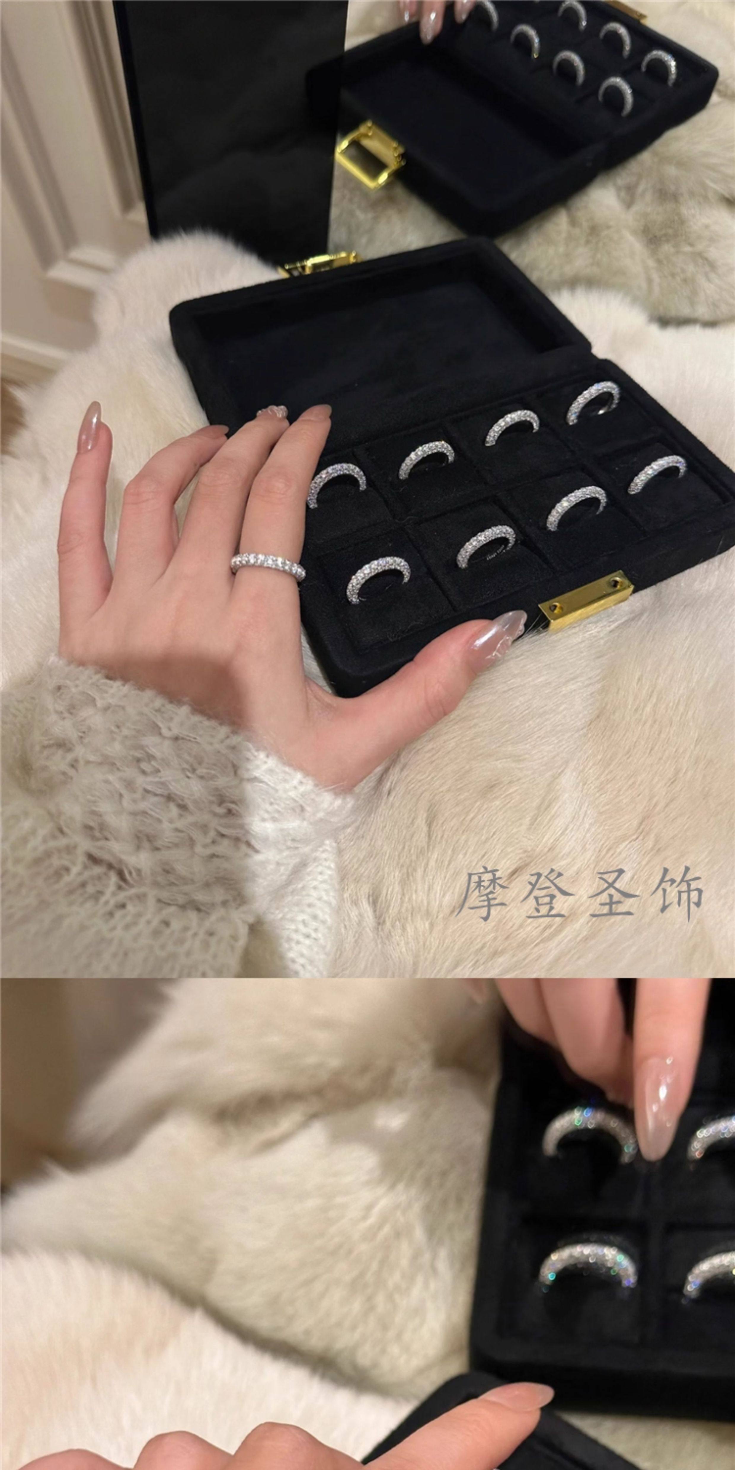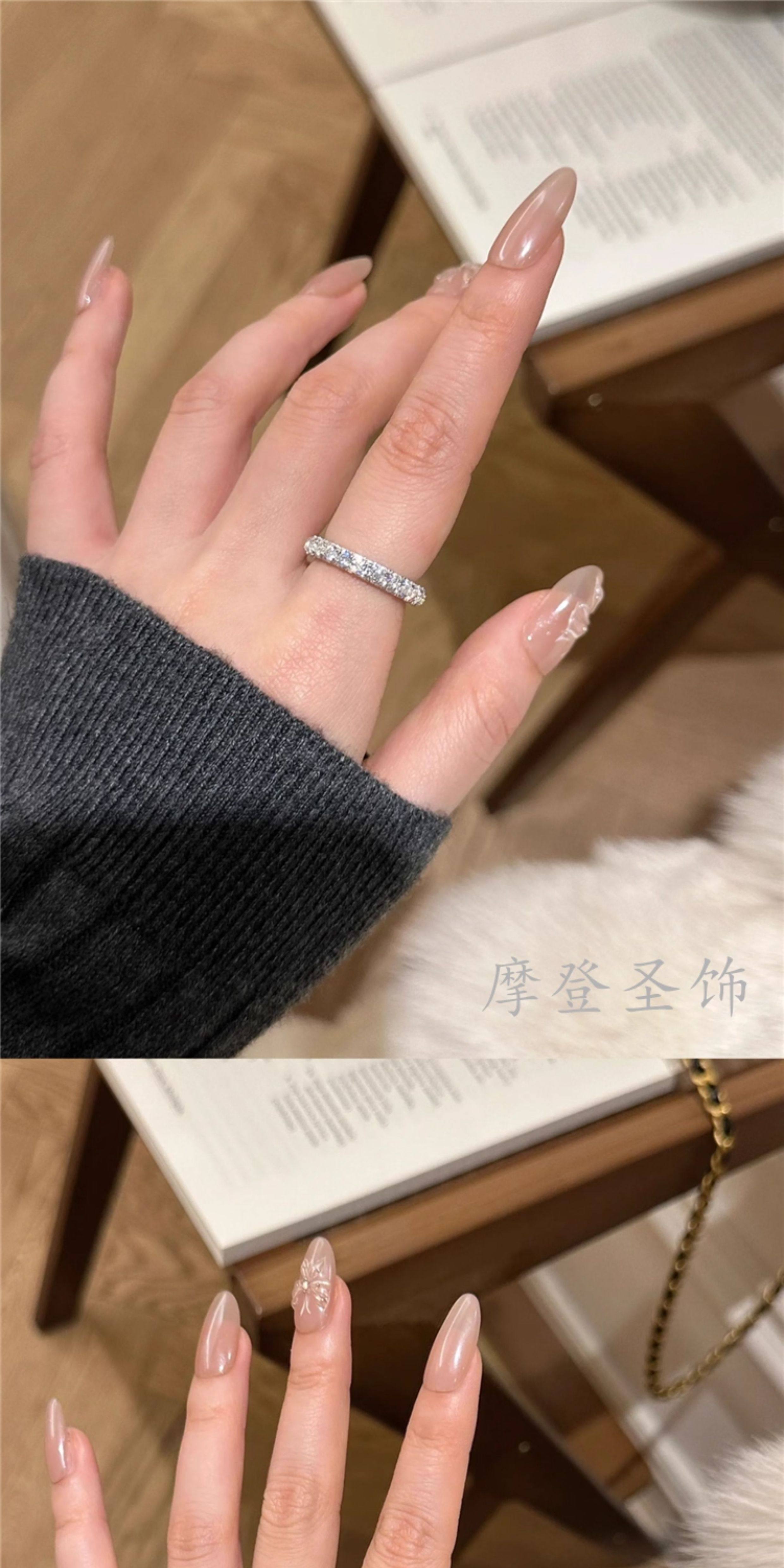 Modern Saint Jewelry S925 Sterling Silver Ring for Women, Light Luxury, Niche Design, High-End Feel, Starry Diamond Circle Ring for the Index Finger