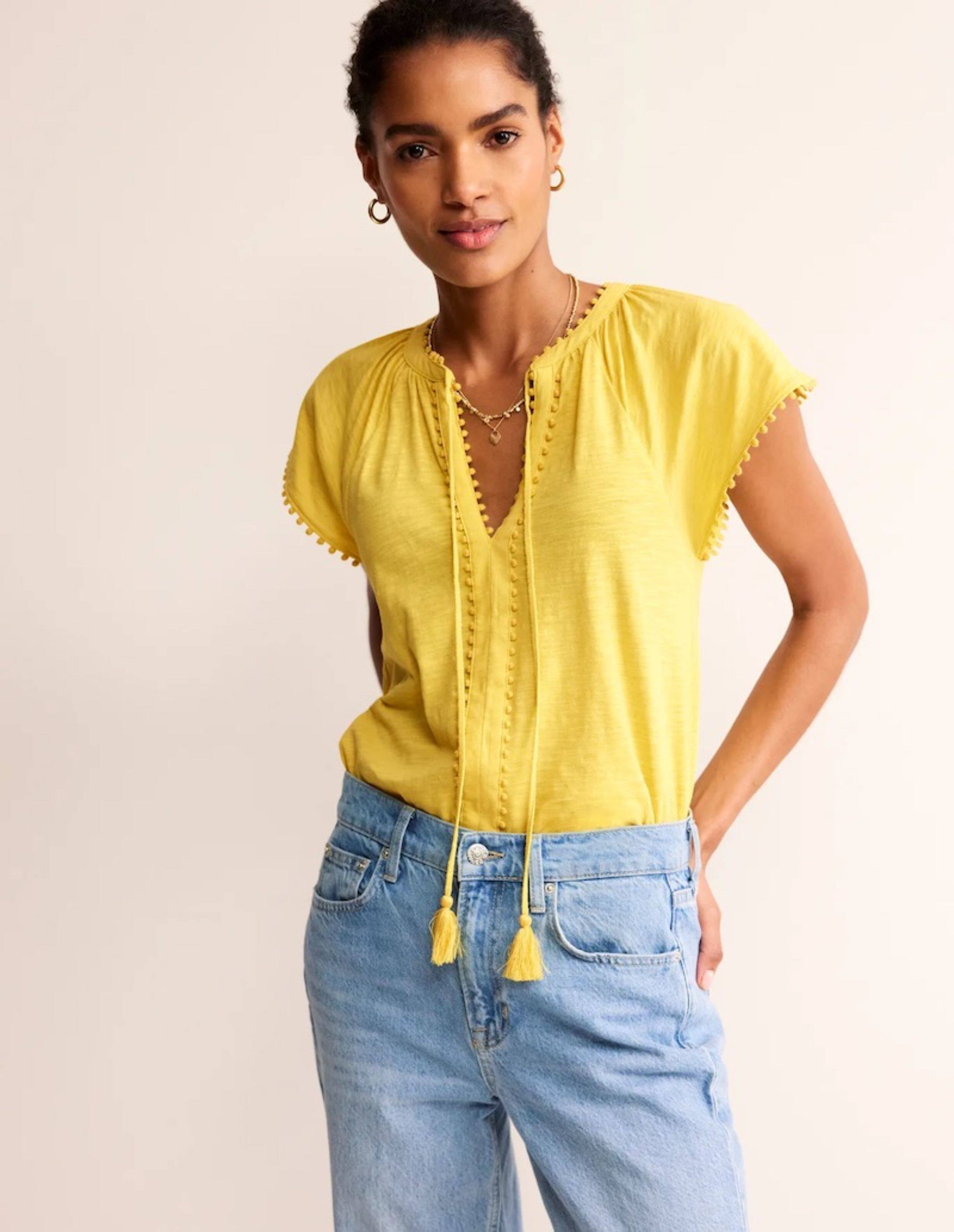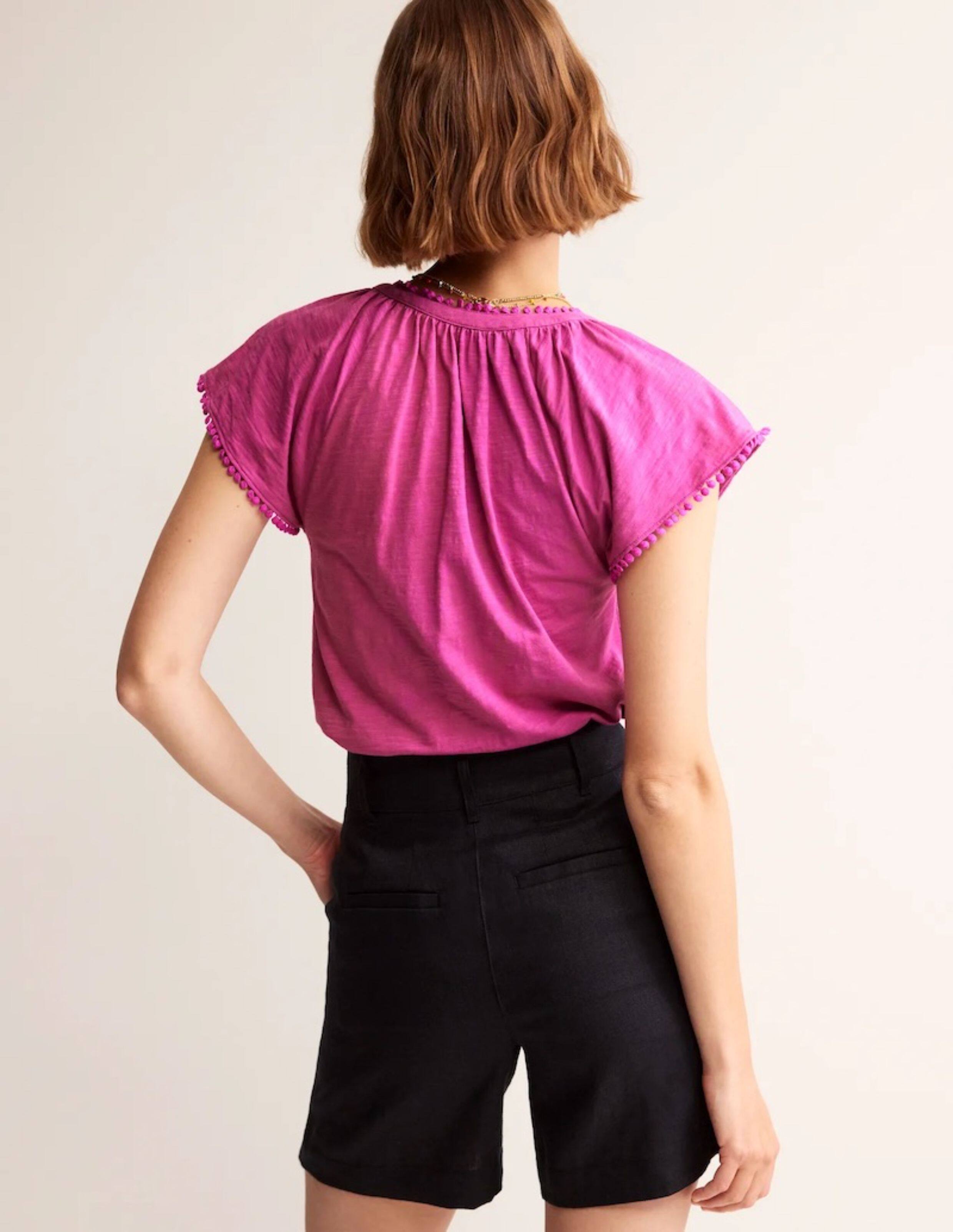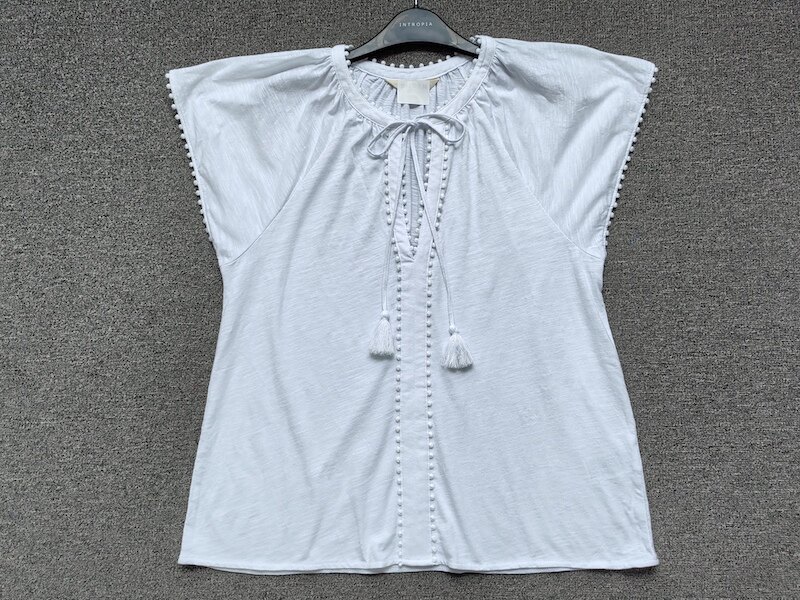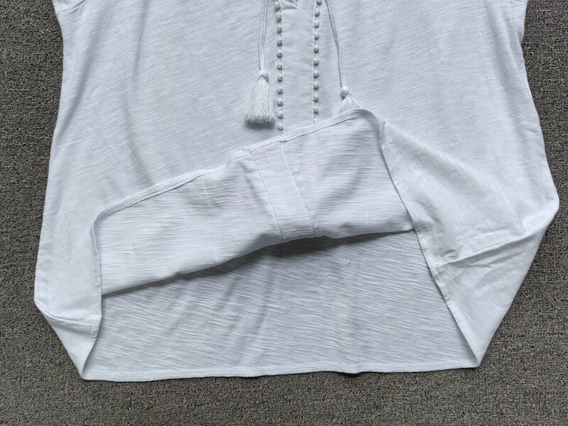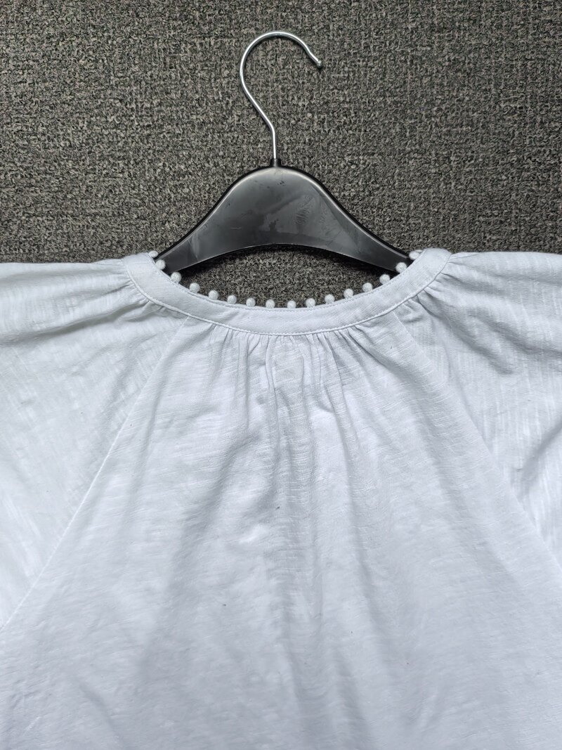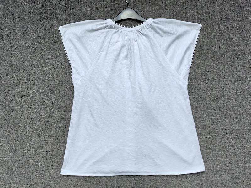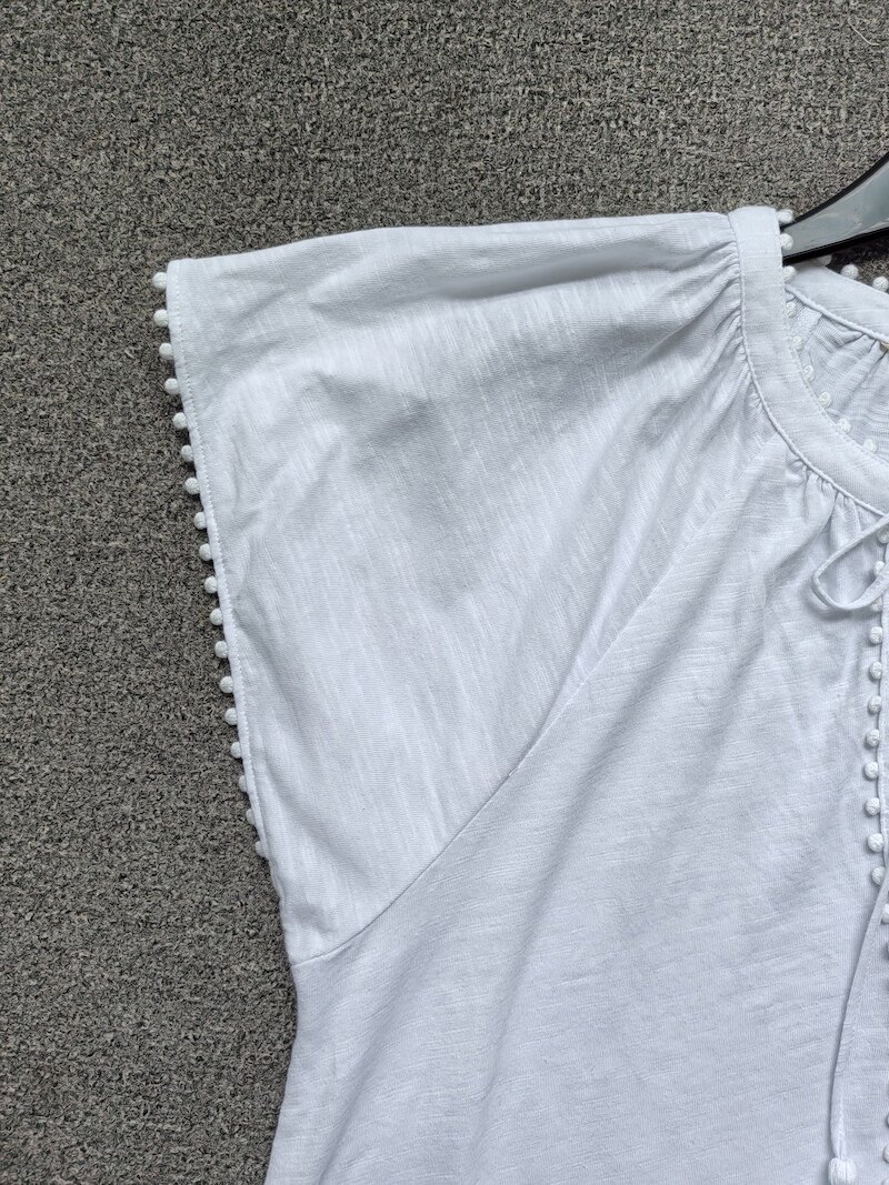 British Single-Brand Summer New Product V-Neck Drop Shoulder Tieable Short-Sleeve Comfortable Cotton Ball-Decorated T-Shirt for Women Casual Wear