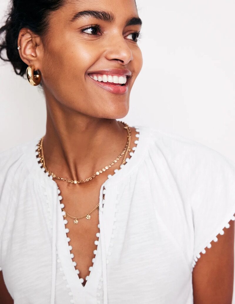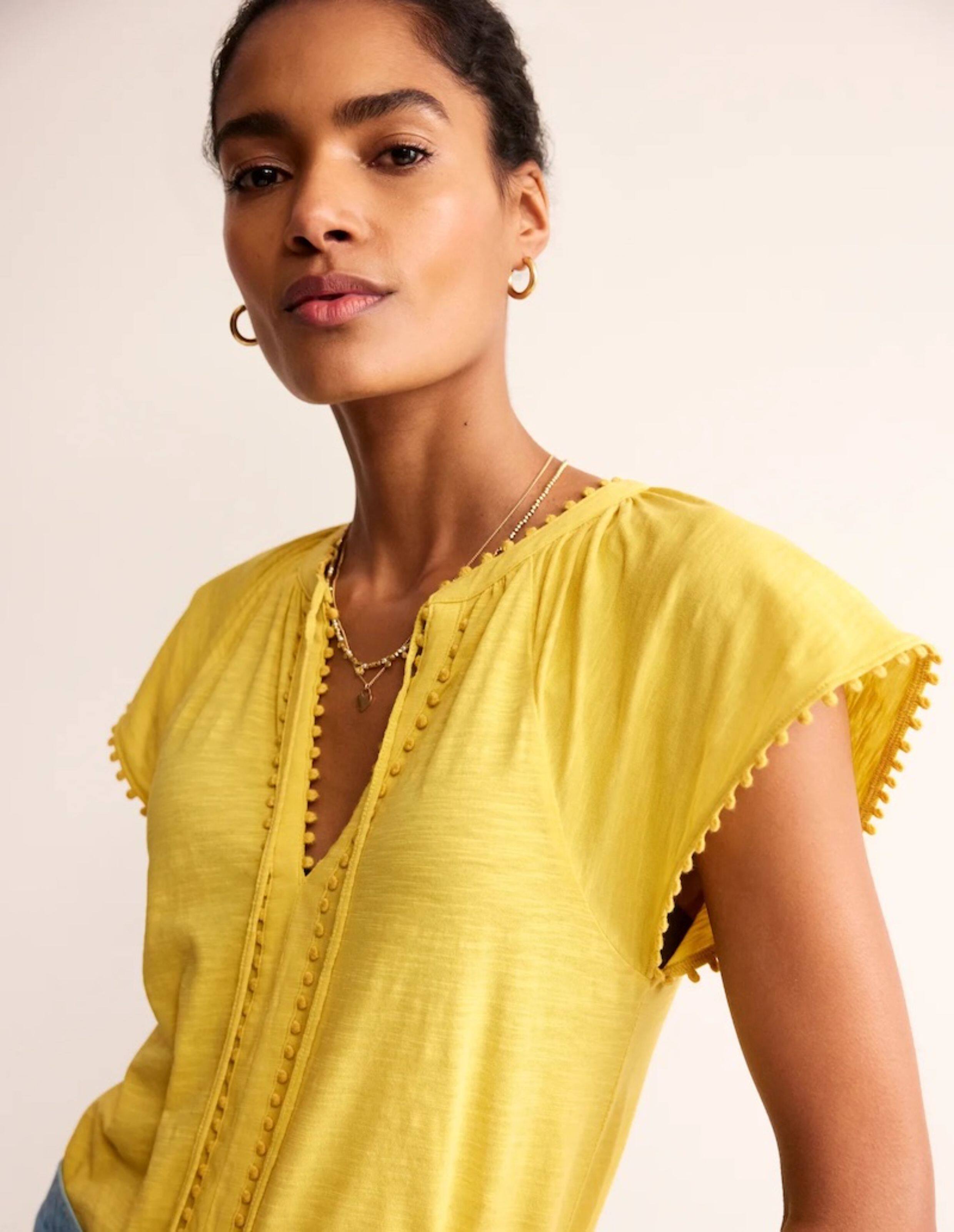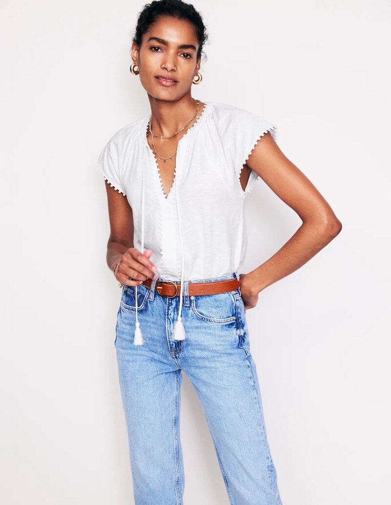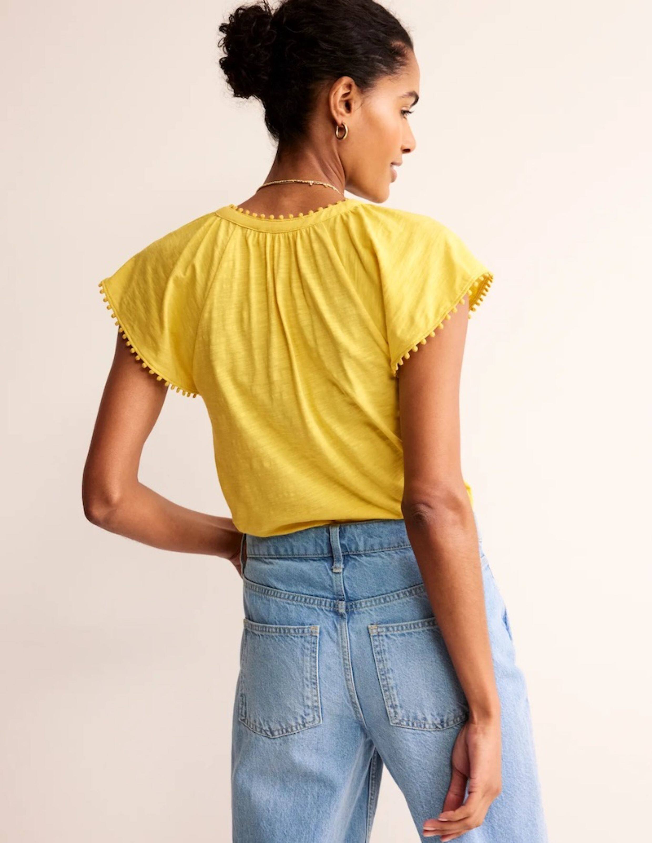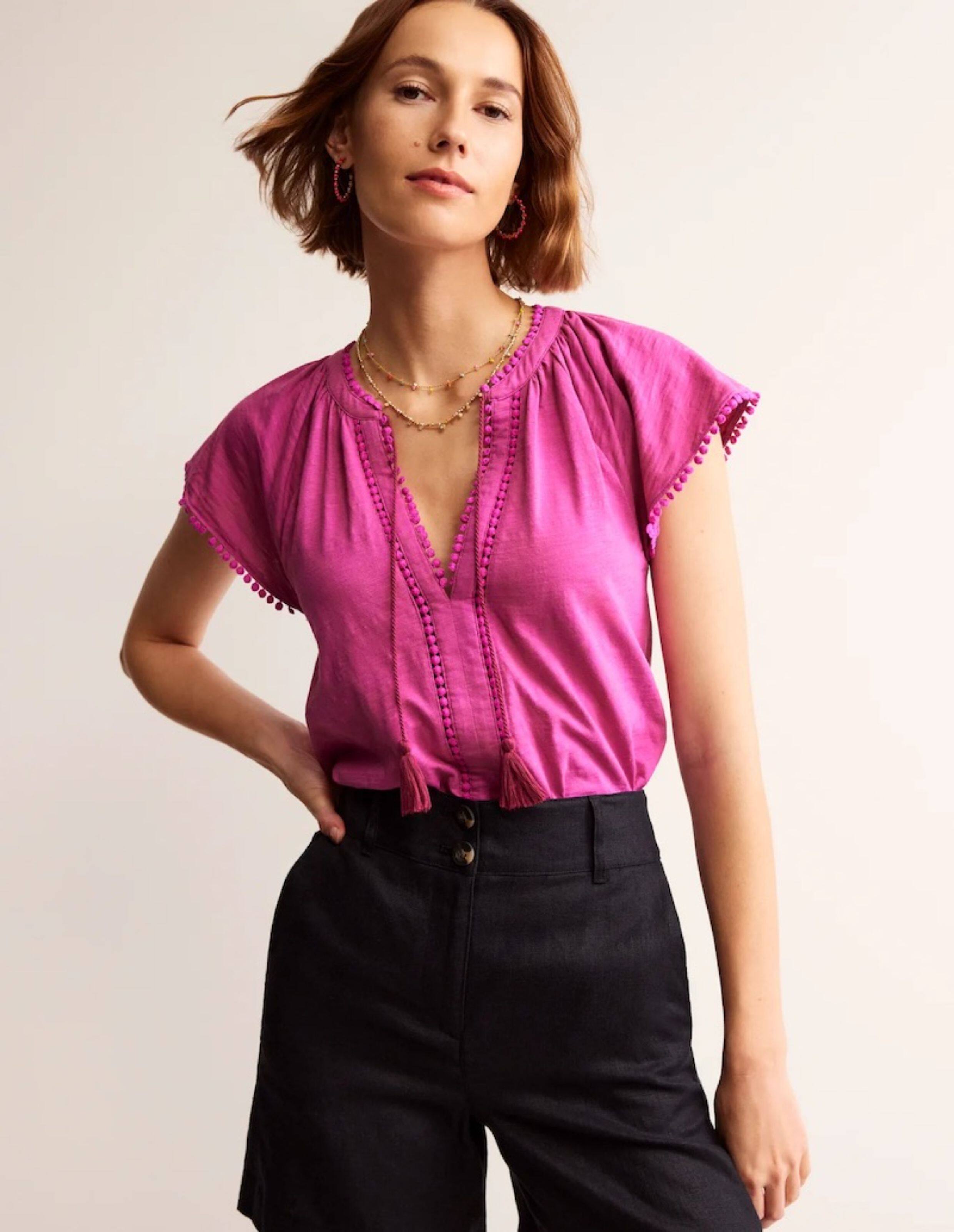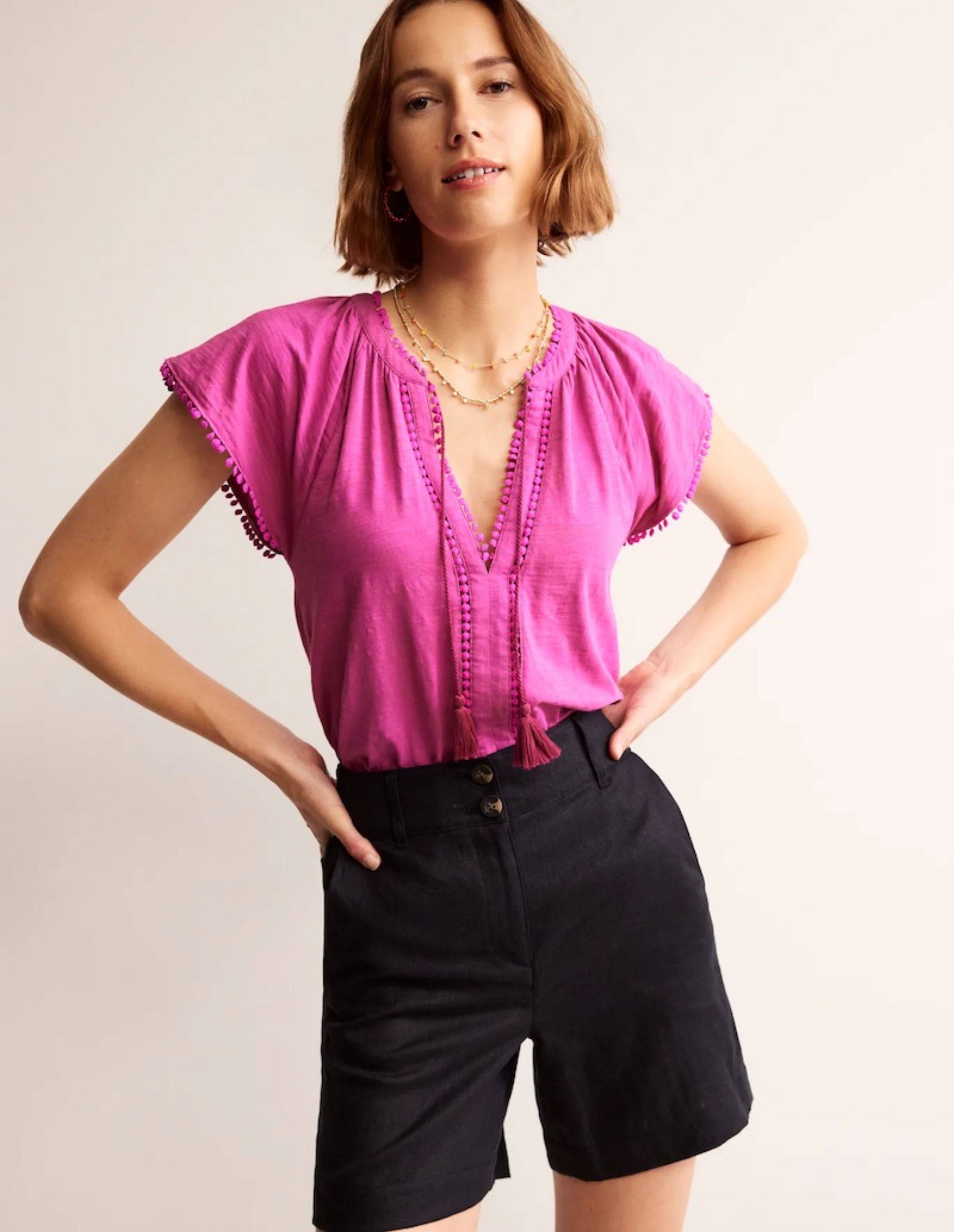 British Single-Brand Summer New Product V-Neck Drop Shoulder Tieable Short-Sleeve Comfortable Cotton Ball-Decorated T-Shirt for Women Casual Wear