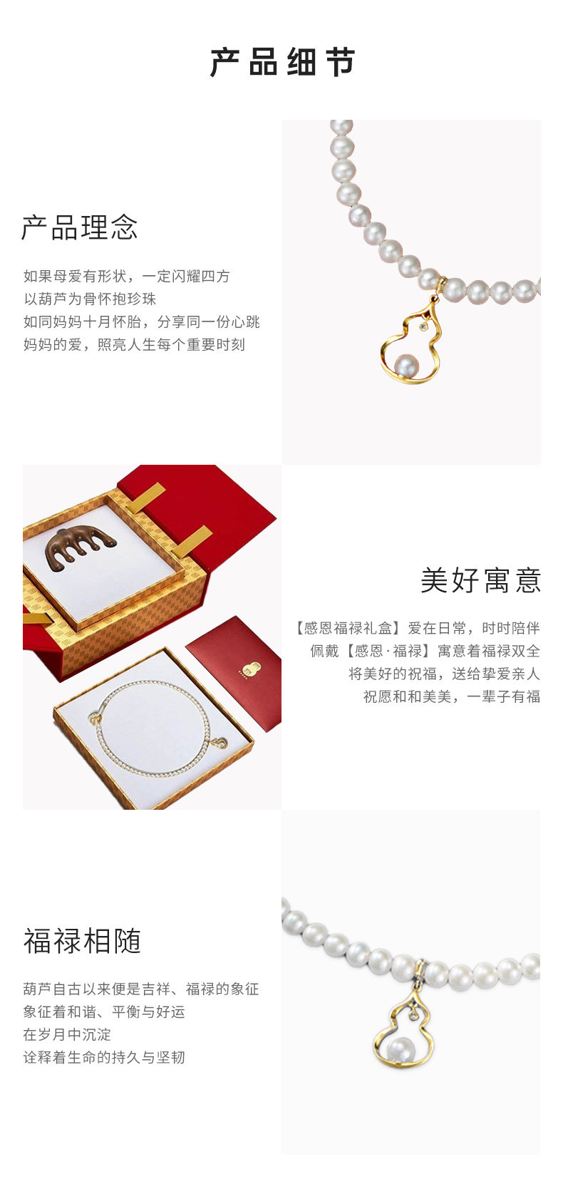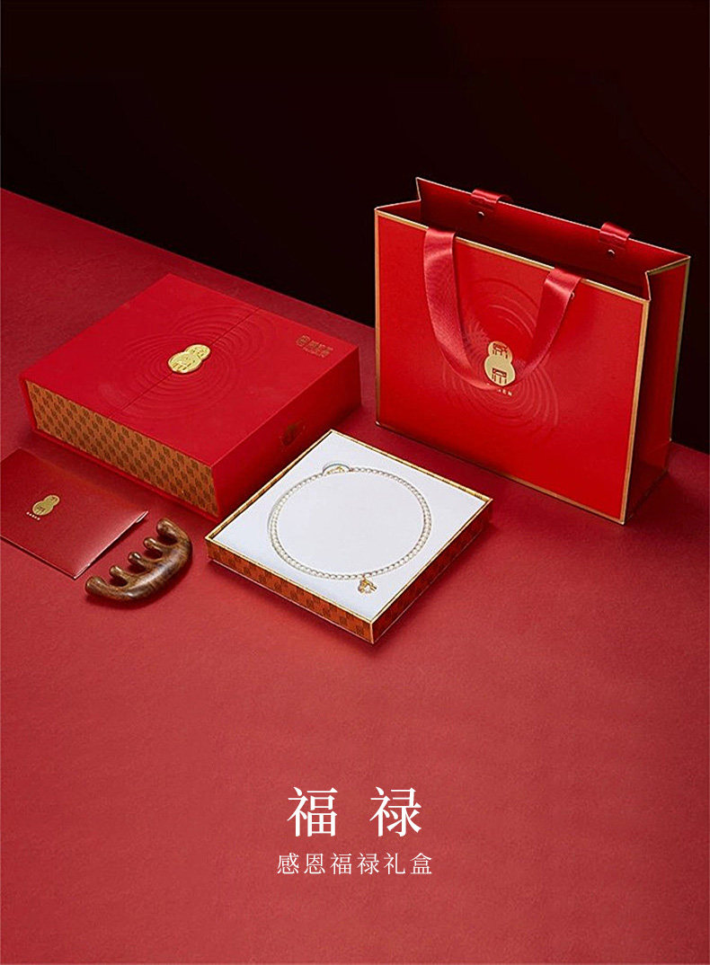 Chow Tai Fook Gratitude Blessing Silver Pearl Necklace Silver Gold-Plated Chain Set with Gourd Gift Box for Elderly Mothers Mother's Day L
