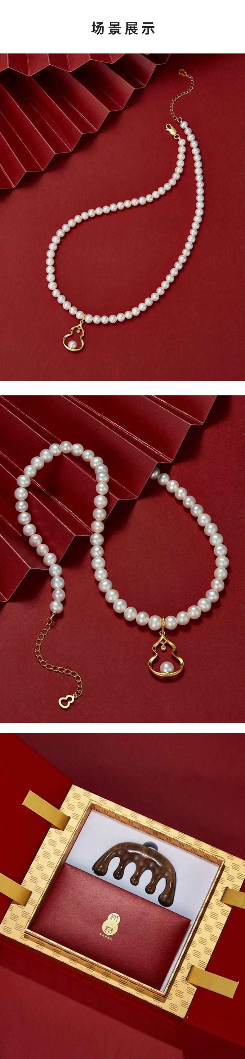 珍珠约6mm;葫芦约22.5mm*14.5mm;梳子长约10.5cm*高约5.5cm
