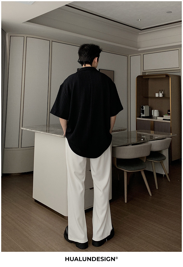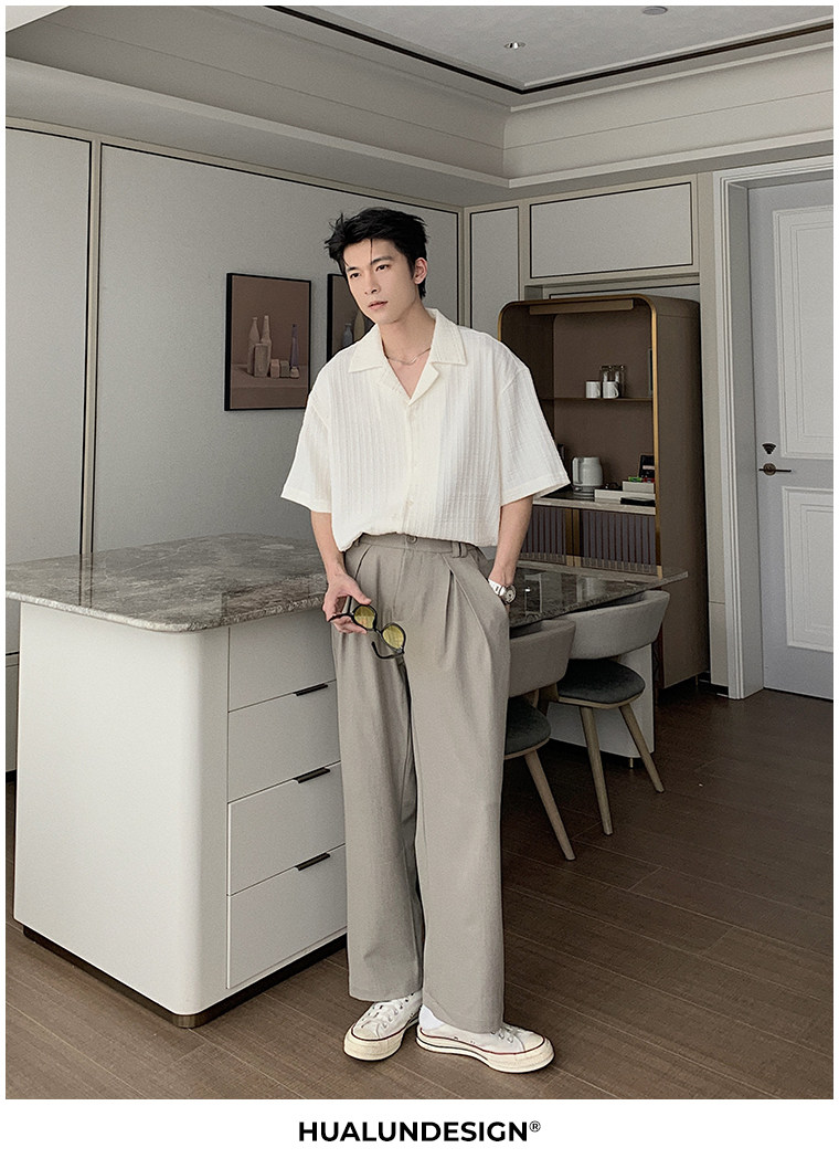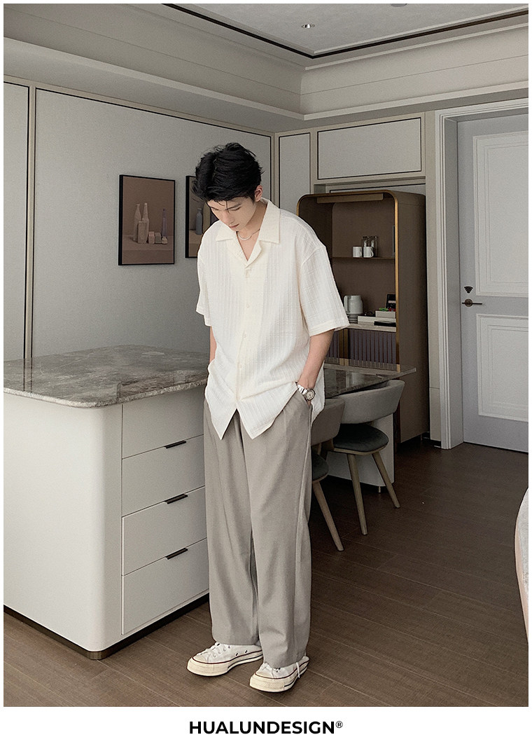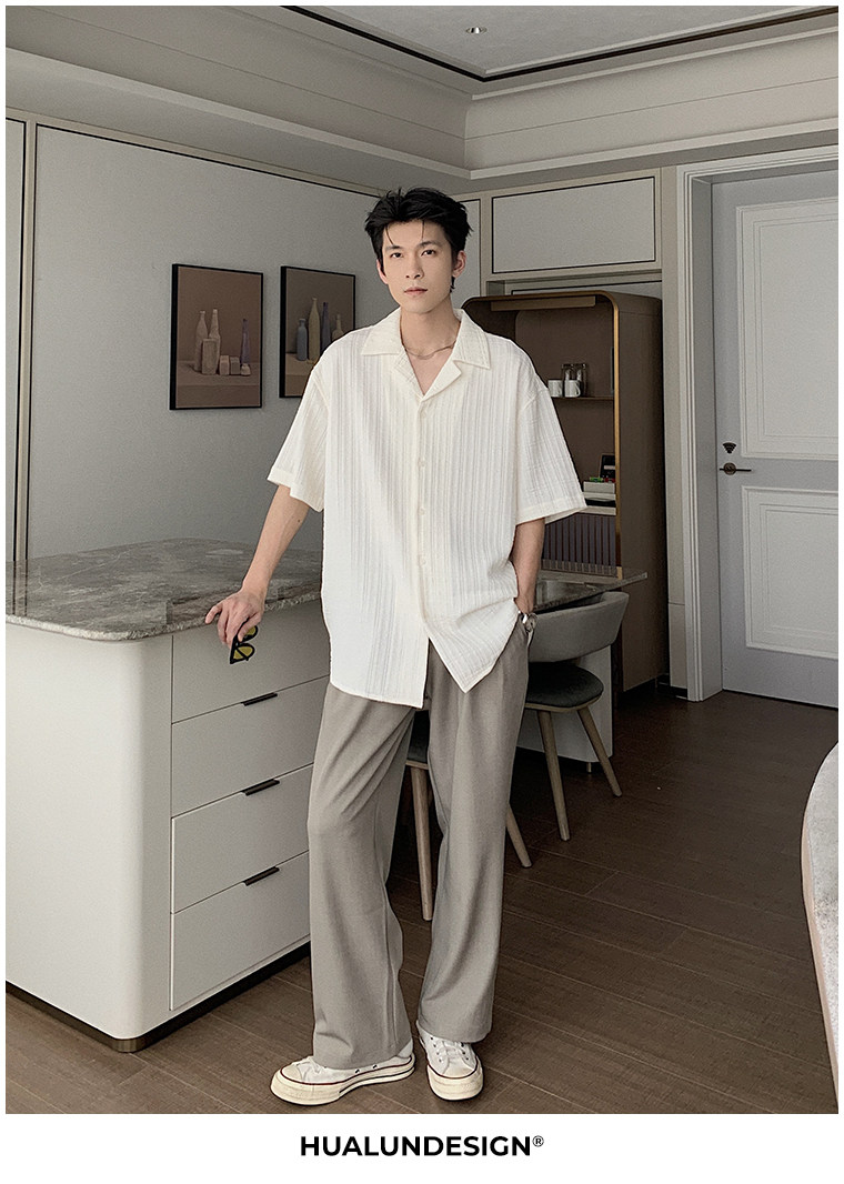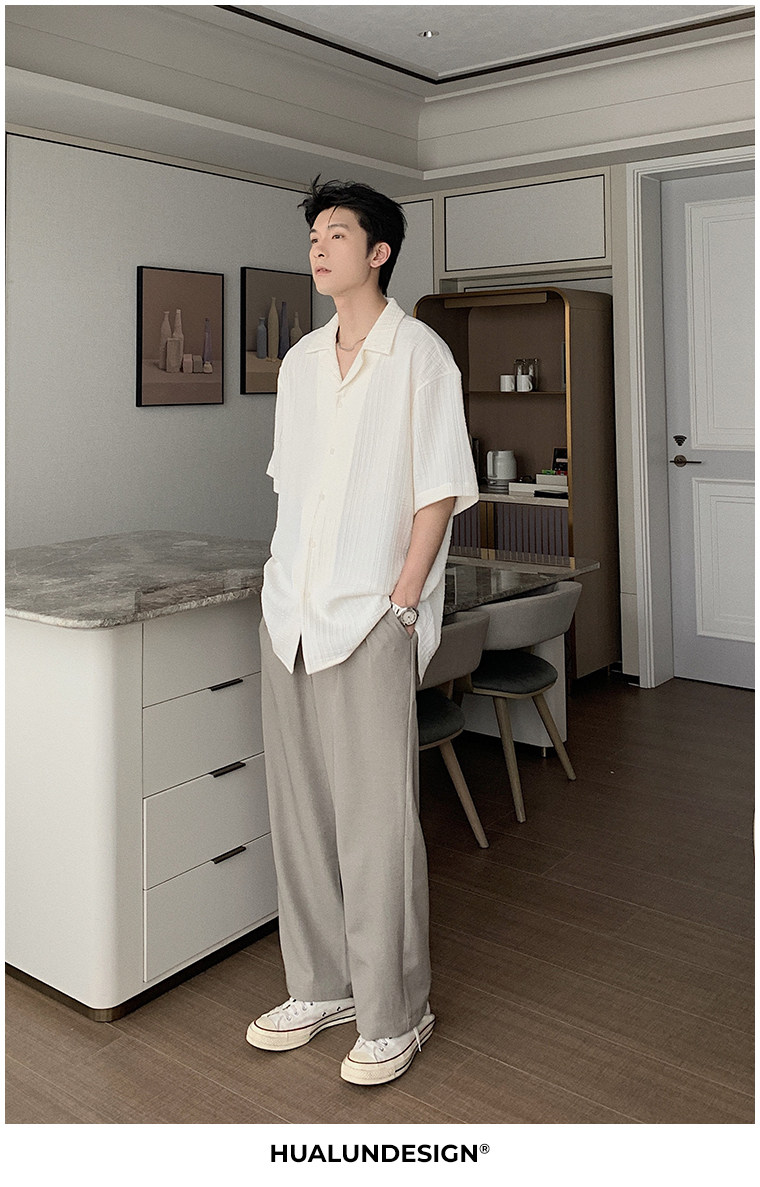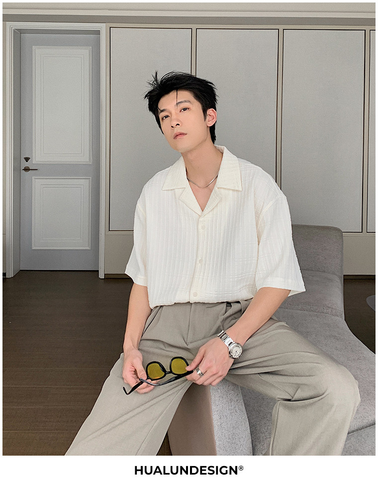 Hualun Men's Cuban Collar Shirt Short-Sleeved Shirt Men's Summer Design Loose Trendy Brand Simple Casual Top