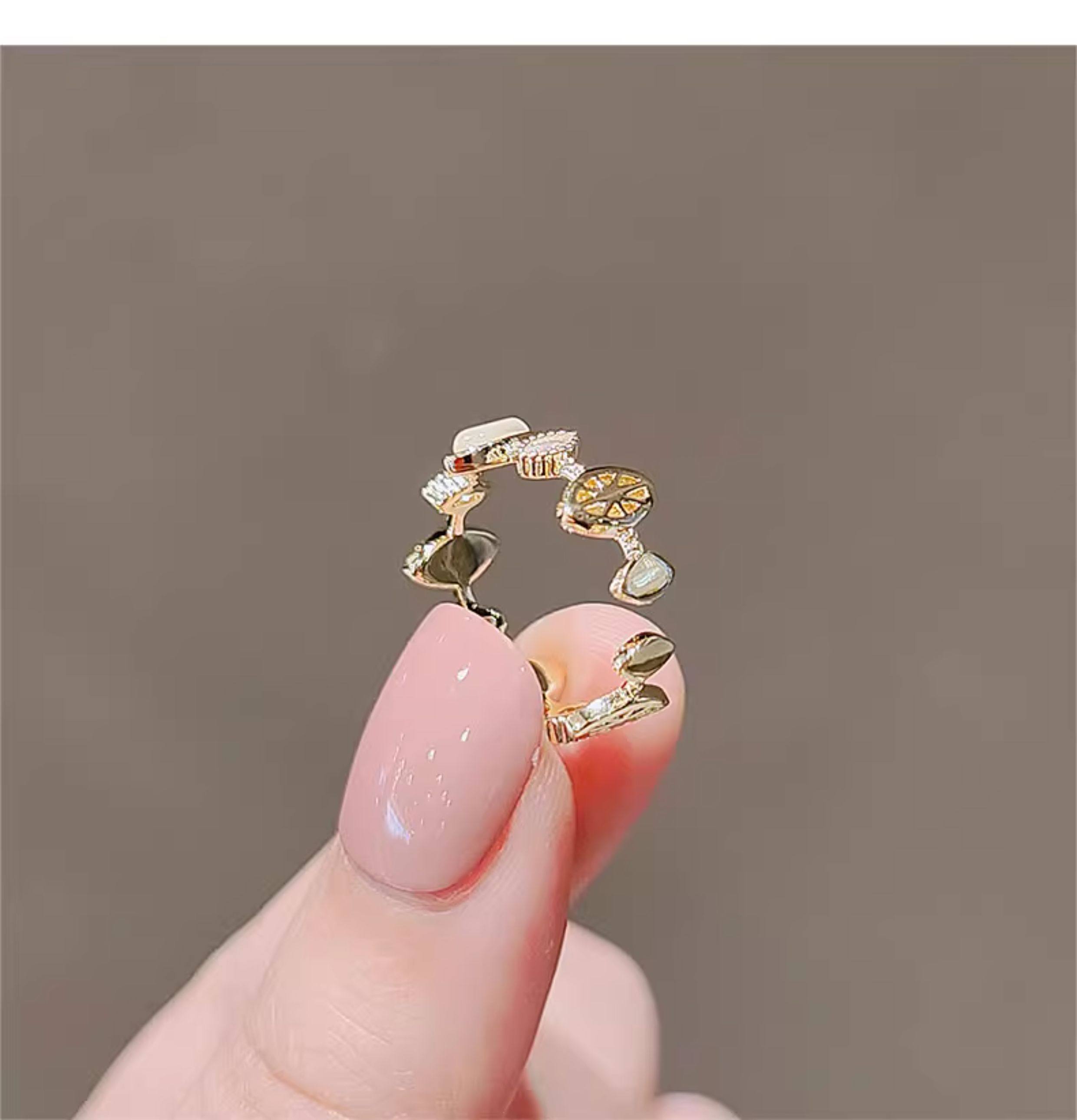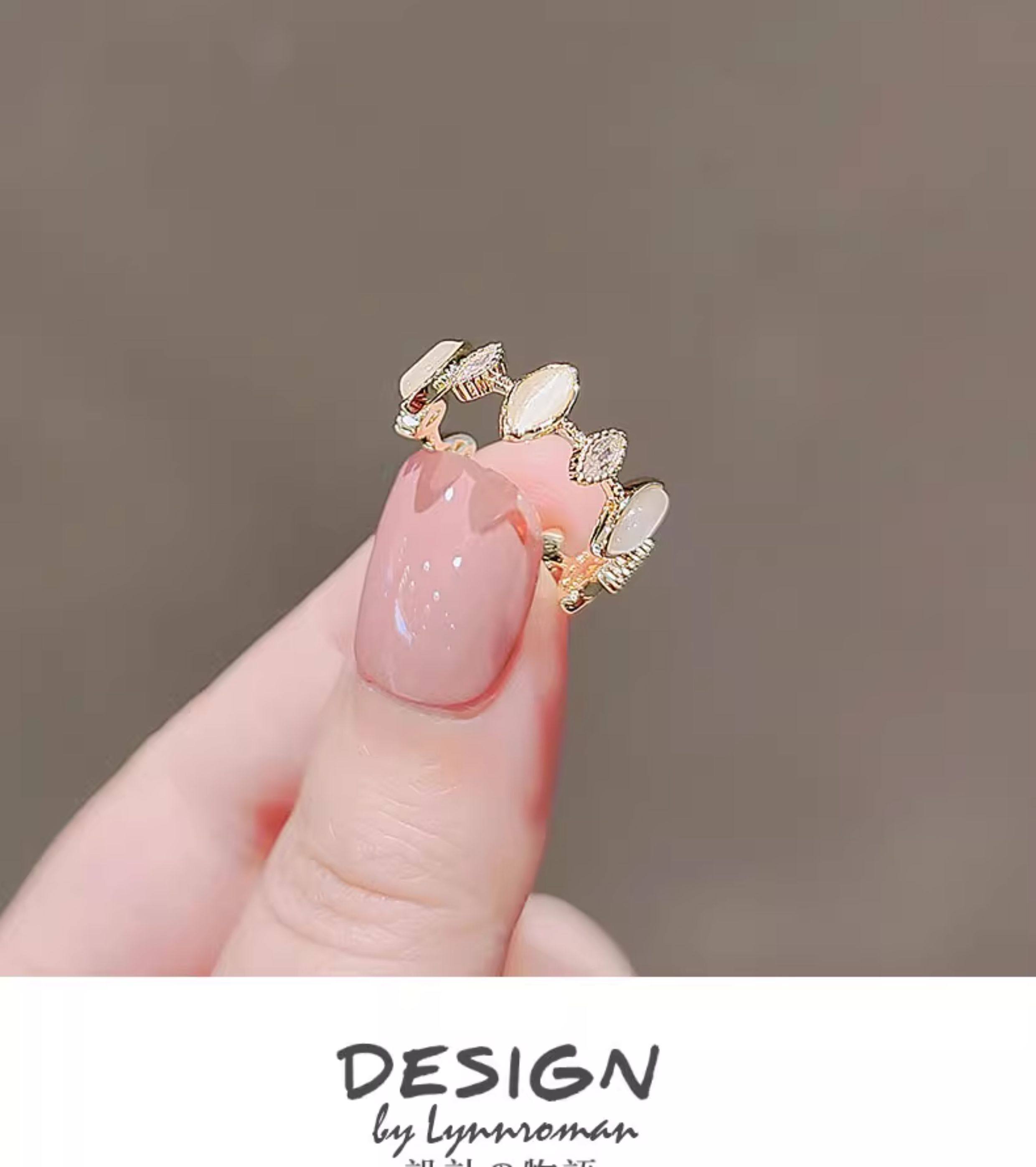Lynnroman Japanese-Style Summer Faux Cat's Eye Ring, Light Luxury Niche Personality Open-Ended Index Finger Ring, Trendy and Adjustable