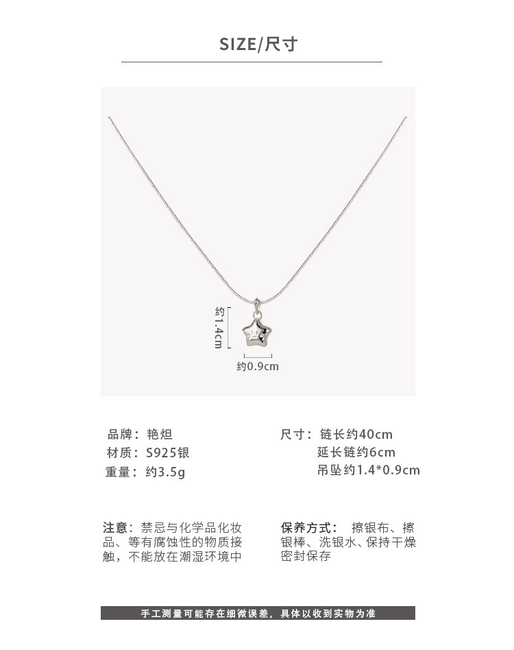 Yandai 925 Silver Lucky Five-Pointed Star Necklace for Women, Cute Star Pendant Clavicle Chain, Fashionable Age-Reducing Neck Chain