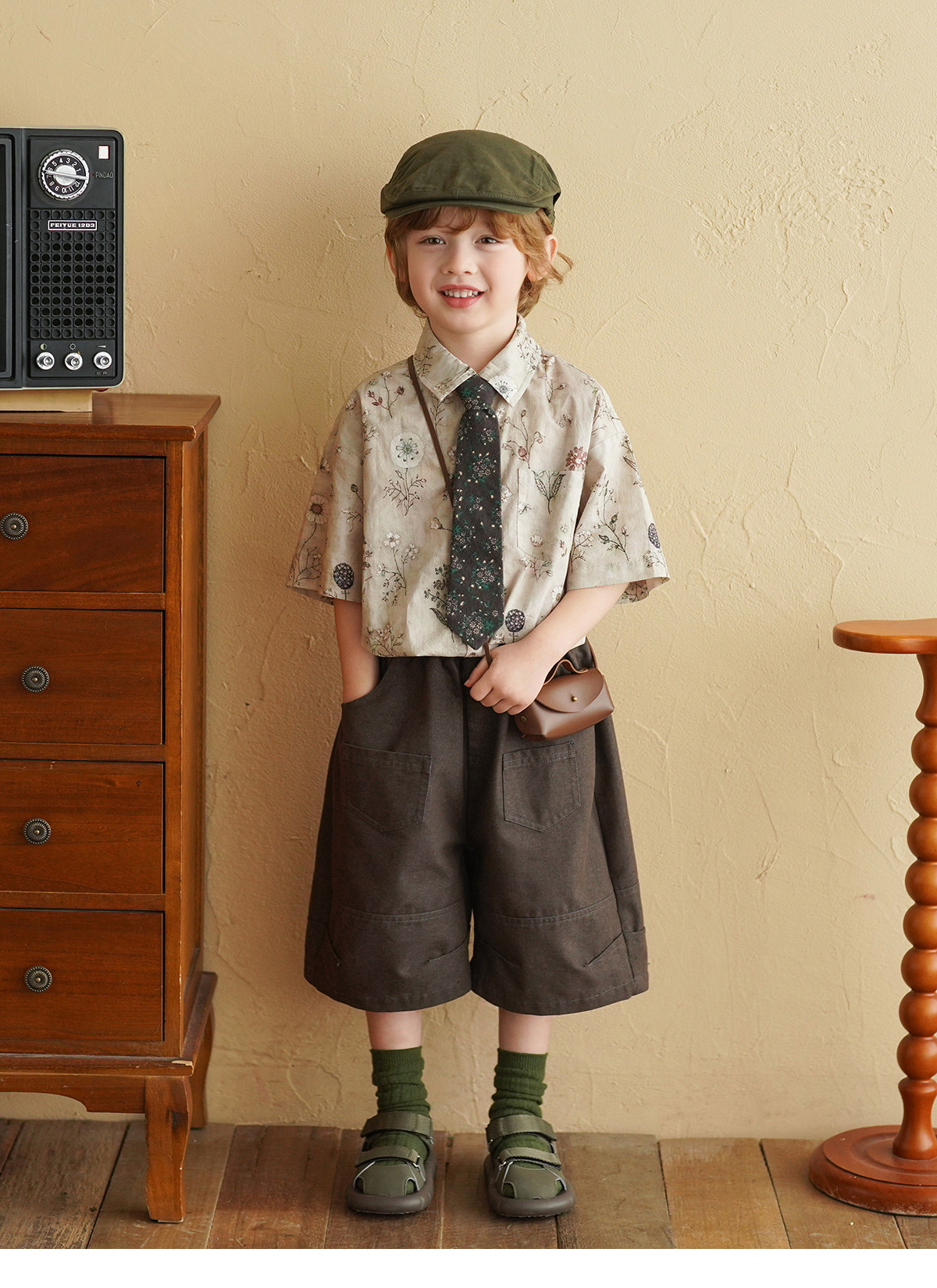 Yantaijia Children's Tie Small Tie ins Boys and Girls Short Artistic Cotton Printed Striped Arrow Tie