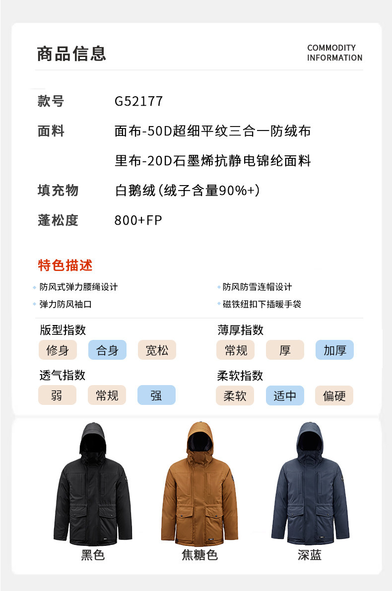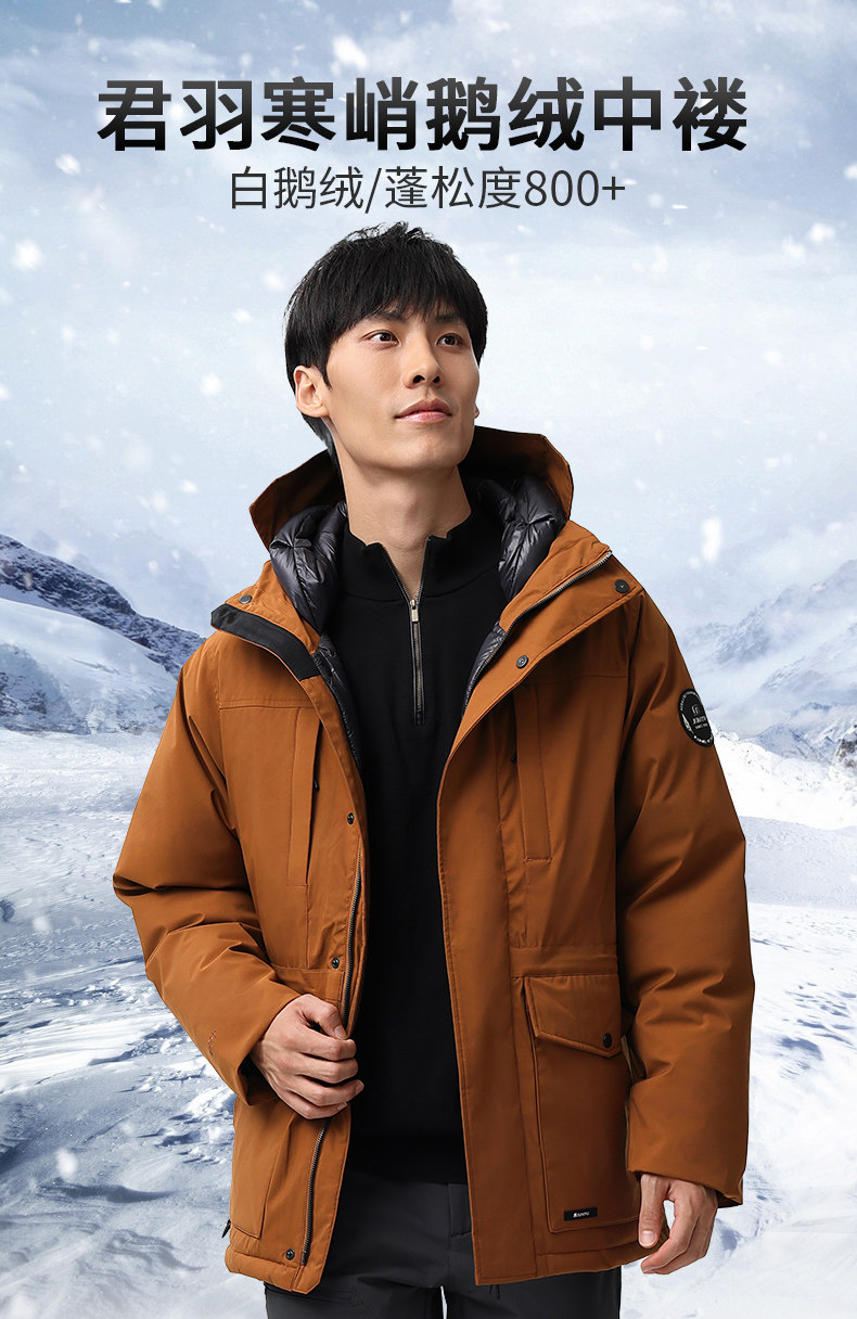 Junyu Outdoor 800 Fill Power down Jacket for Men, Mid-Length, Winter Thickened Hooded Workwear Style Goose down Jacket, Men's Coat 177