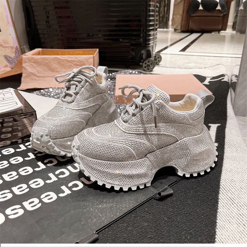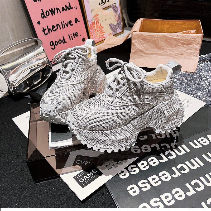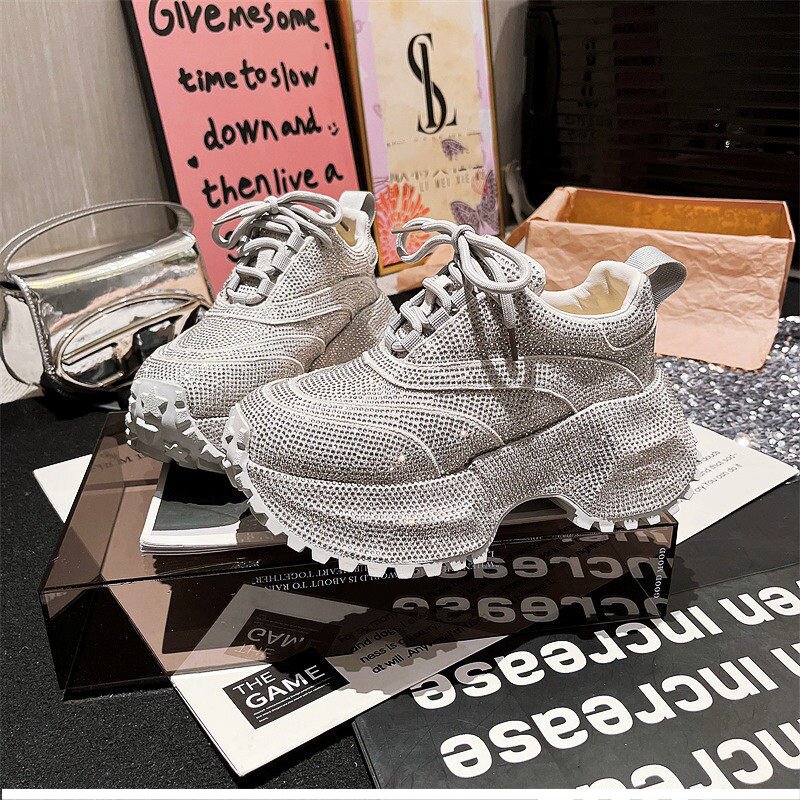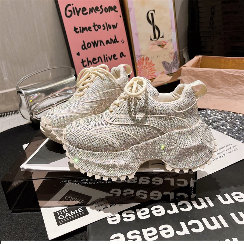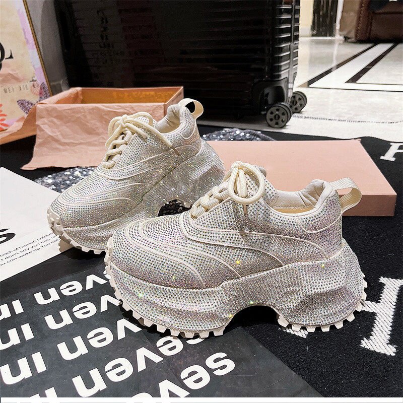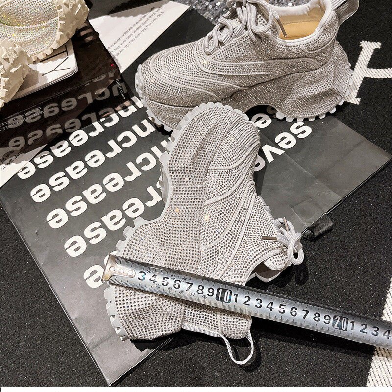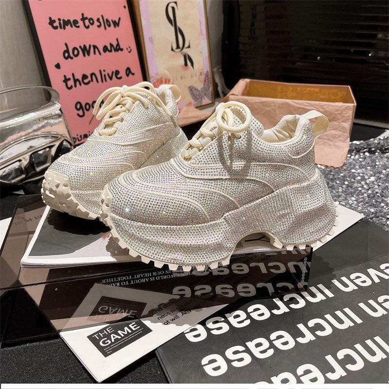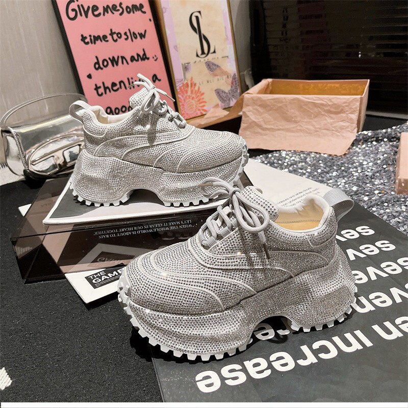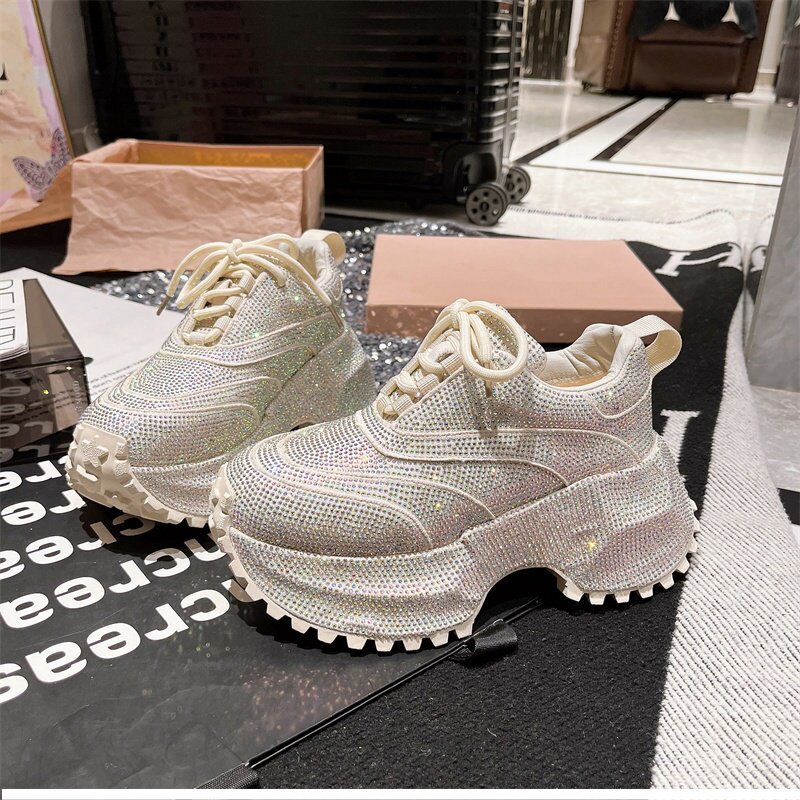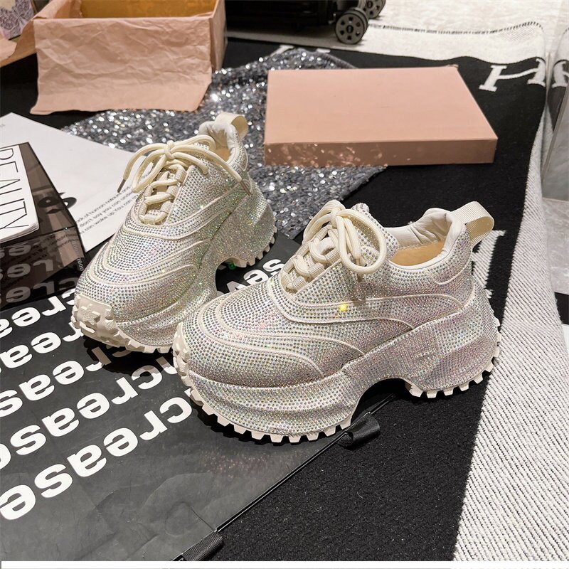 Hong Kong Rhinestone Platform Thick-Soled Height-Increasing Dad Shoes for Women 2026 Spring and Autumn New Versatile Breathable Casual Sports Shoes Trendy