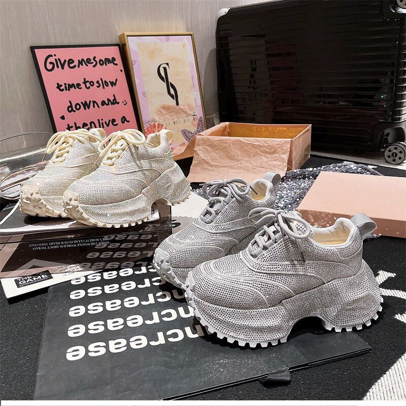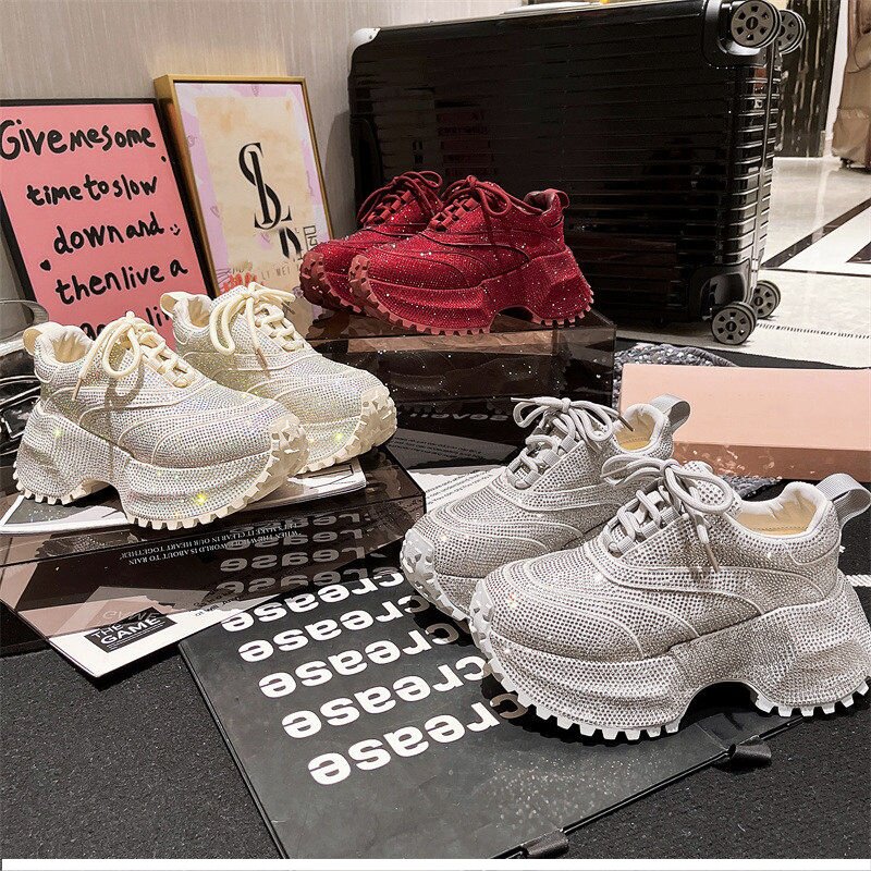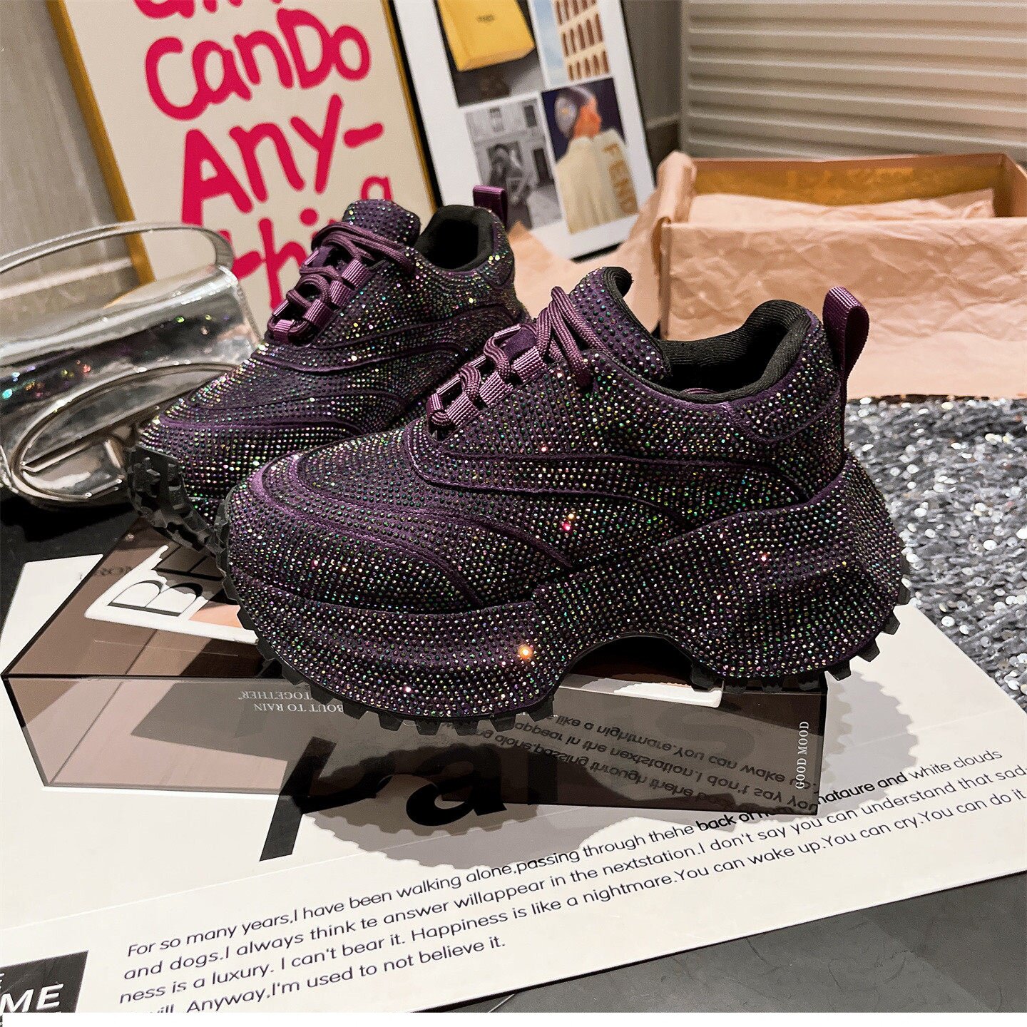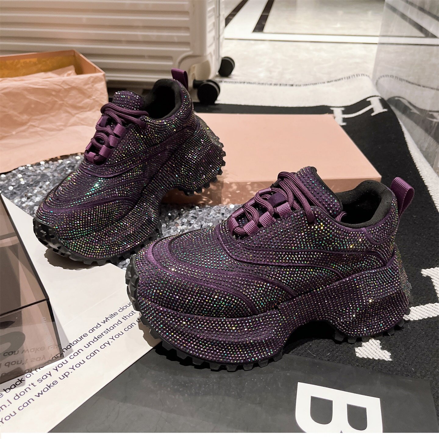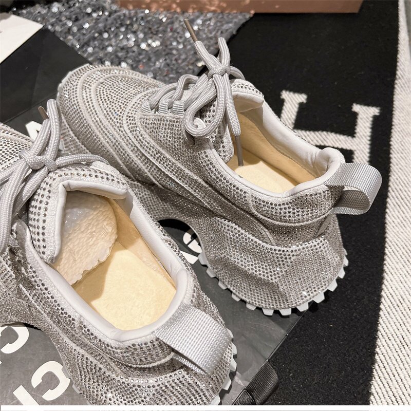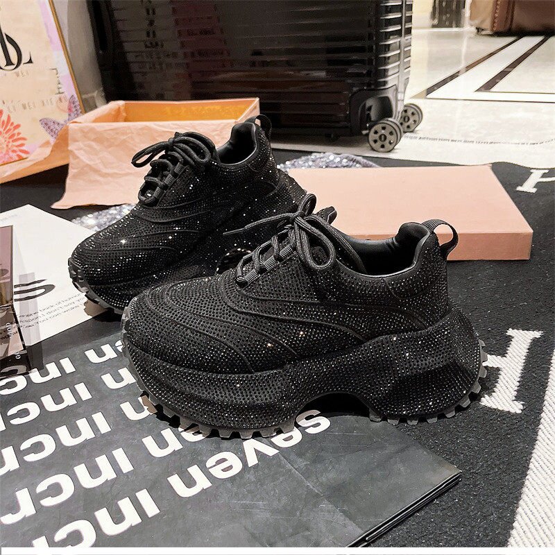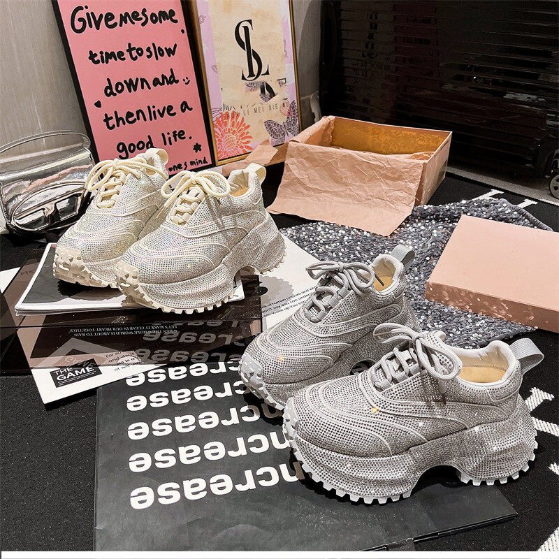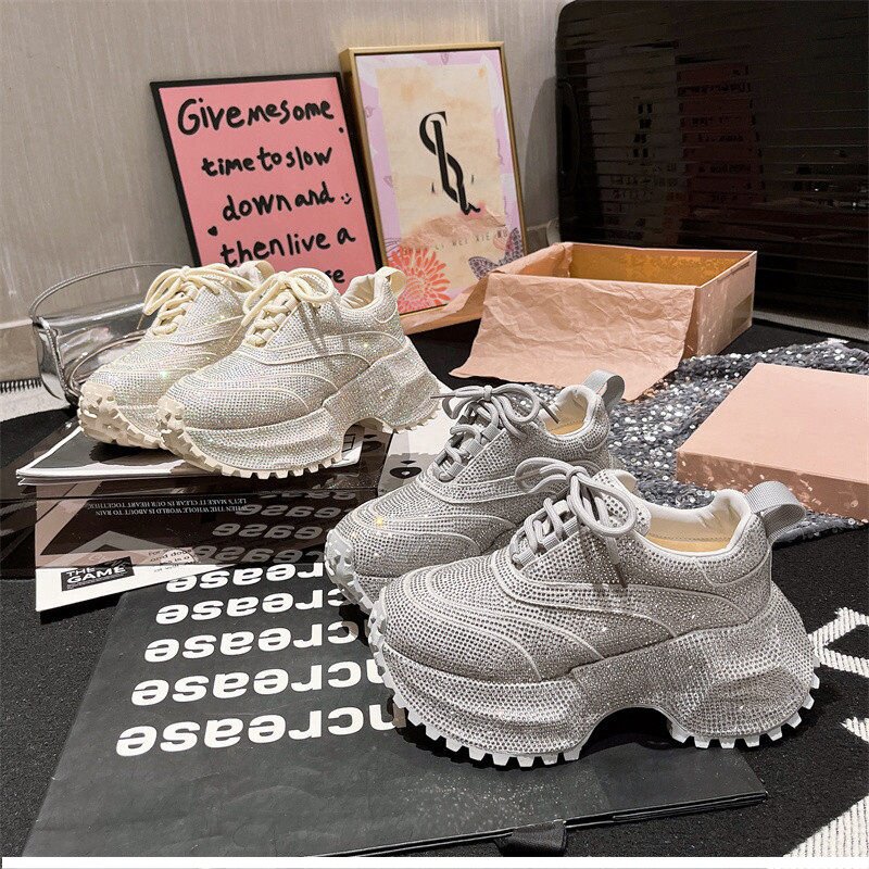 Hong Kong Rhinestone Platform Thick-Soled Height-Increasing Dad Shoes for Women 2026 Spring and Autumn New Versatile Breathable Casual Sports Shoes Trendy