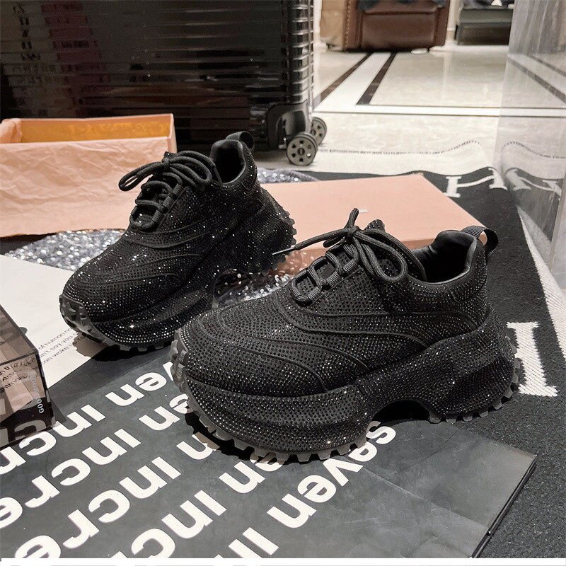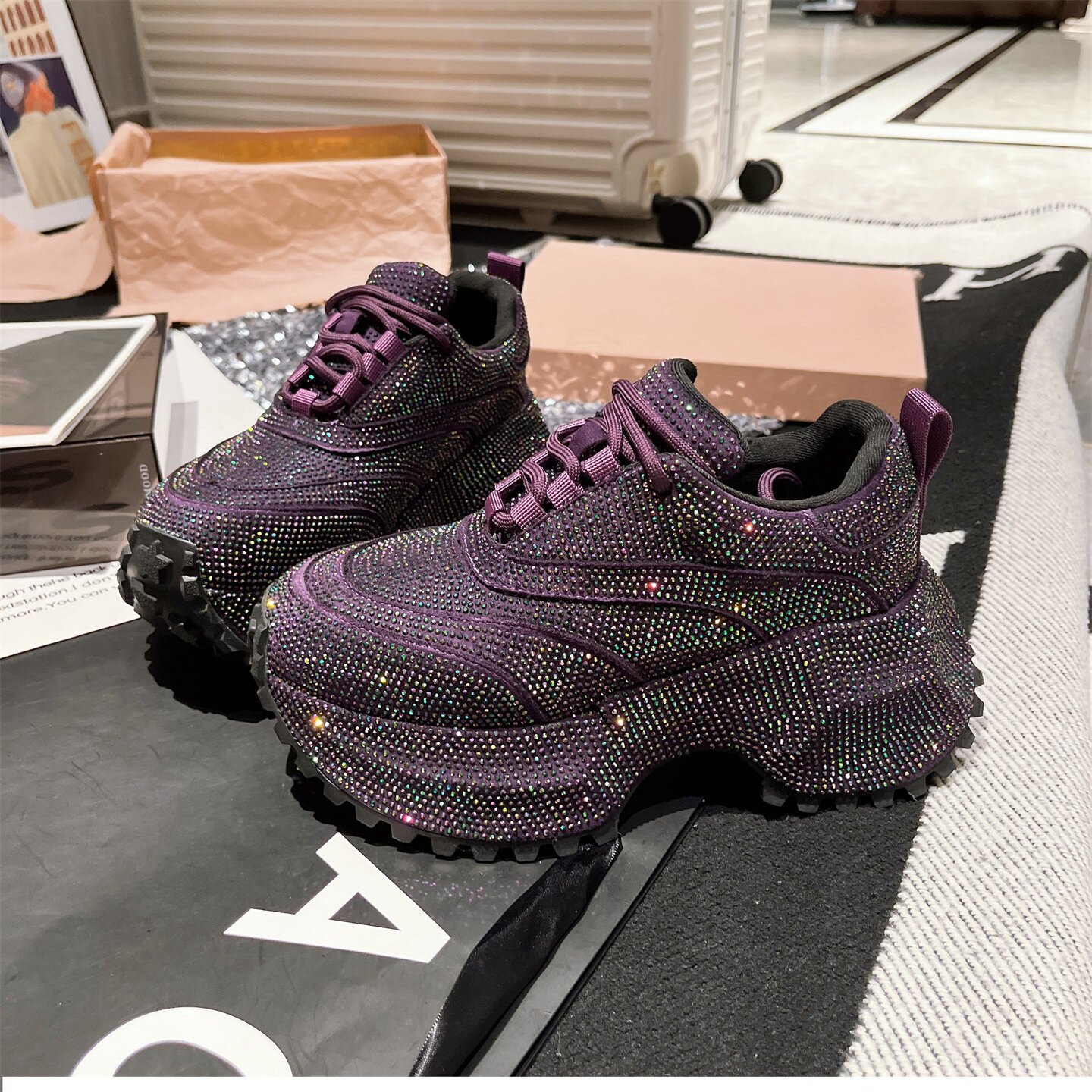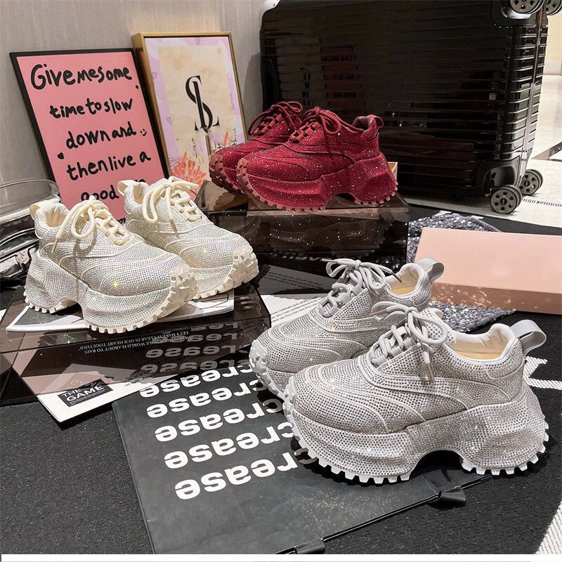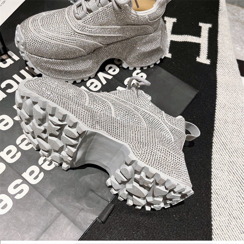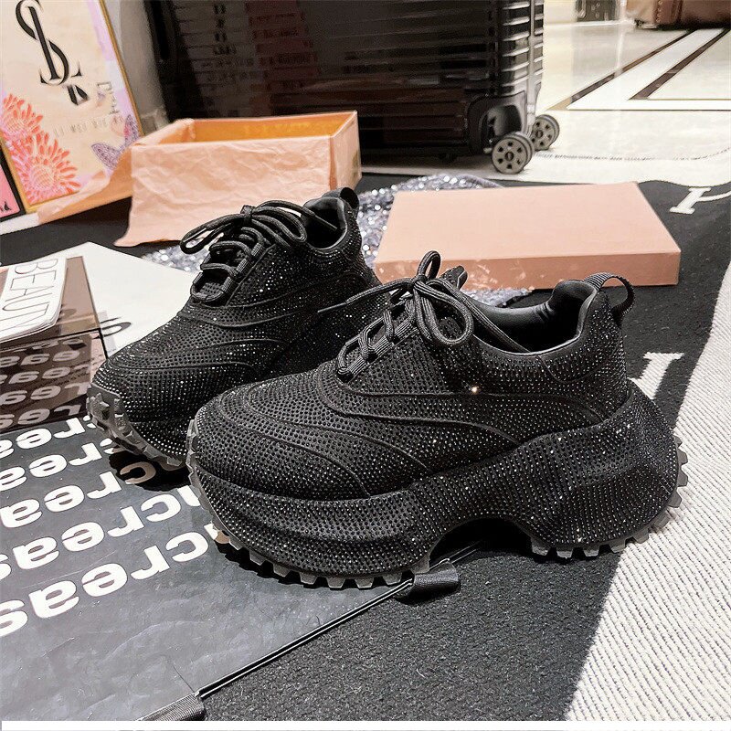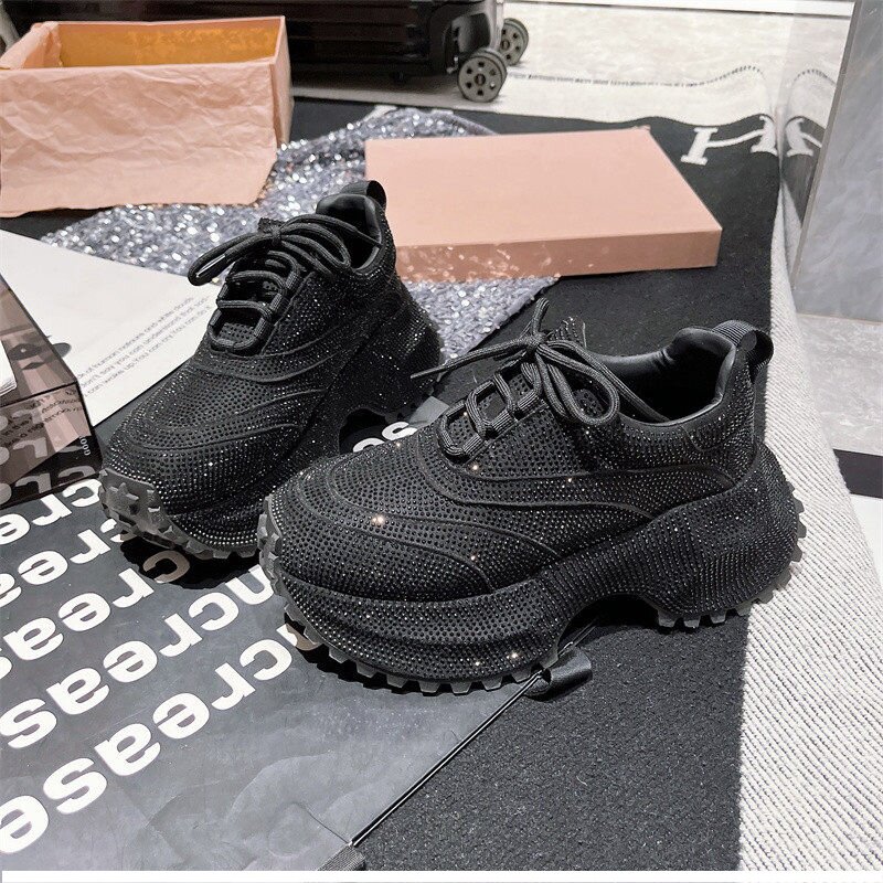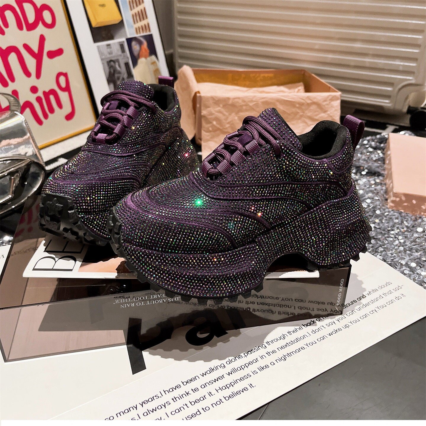 Hong Kong Rhinestone Platform Thick-Soled Height-Increasing Dad Shoes for Women 2026 Spring and Autumn New Versatile Breathable Casual Sports Shoes Trendy