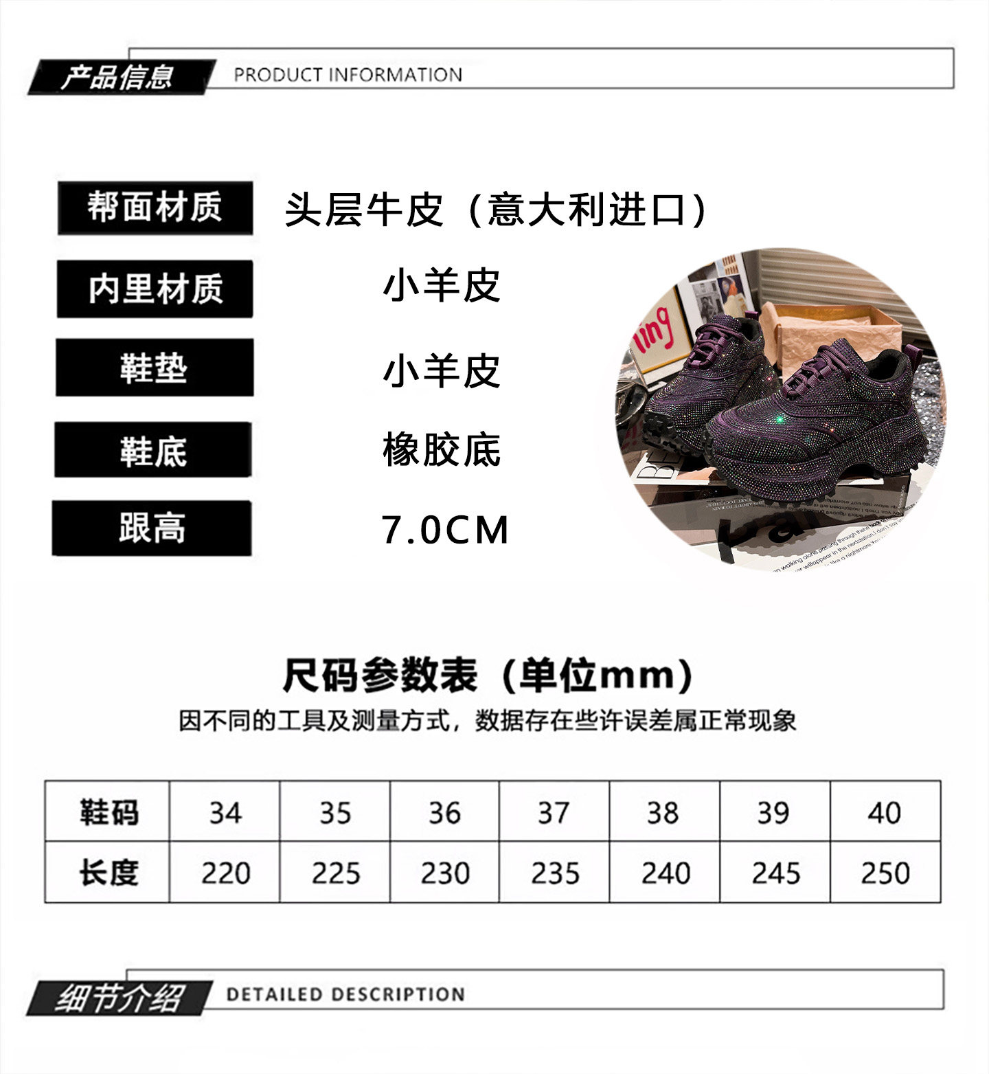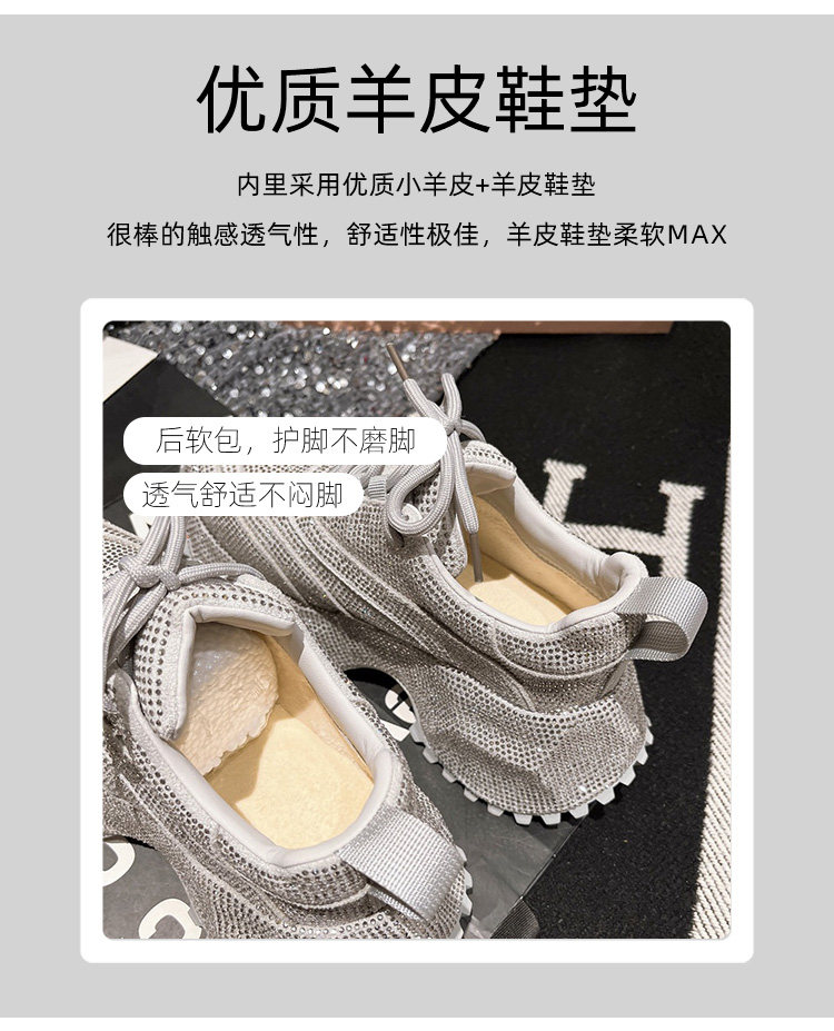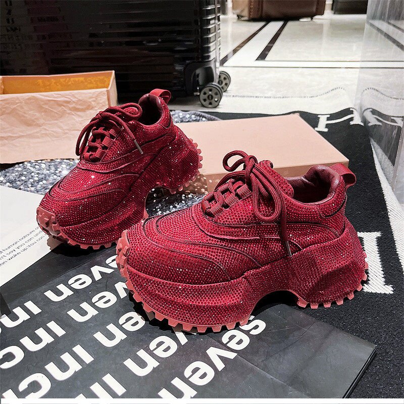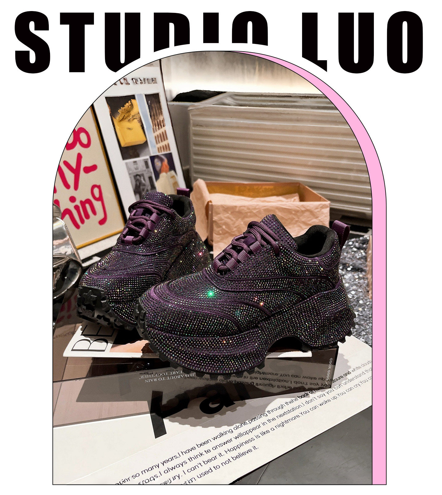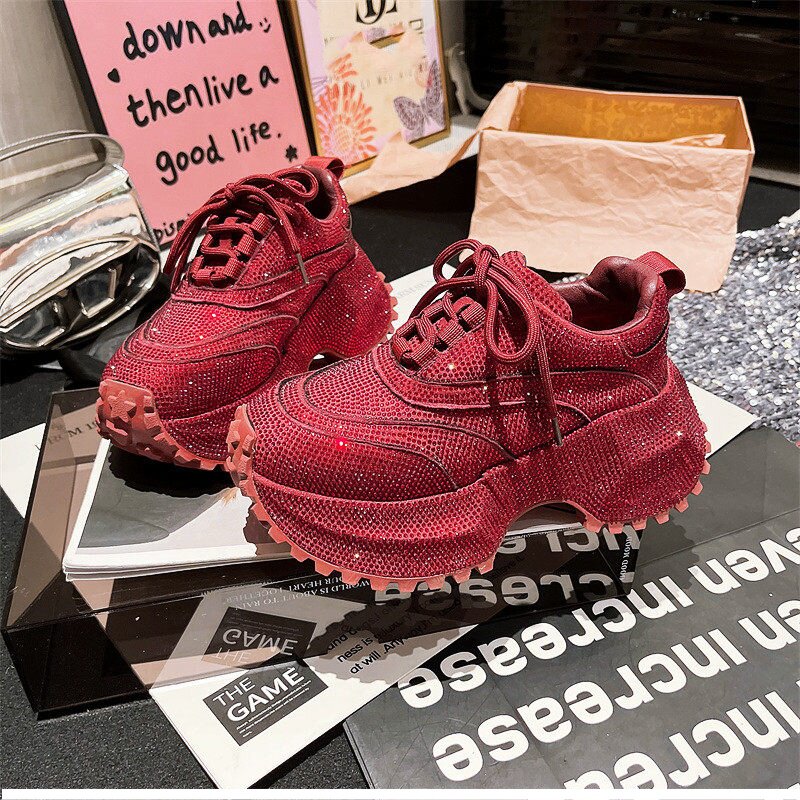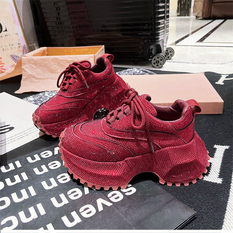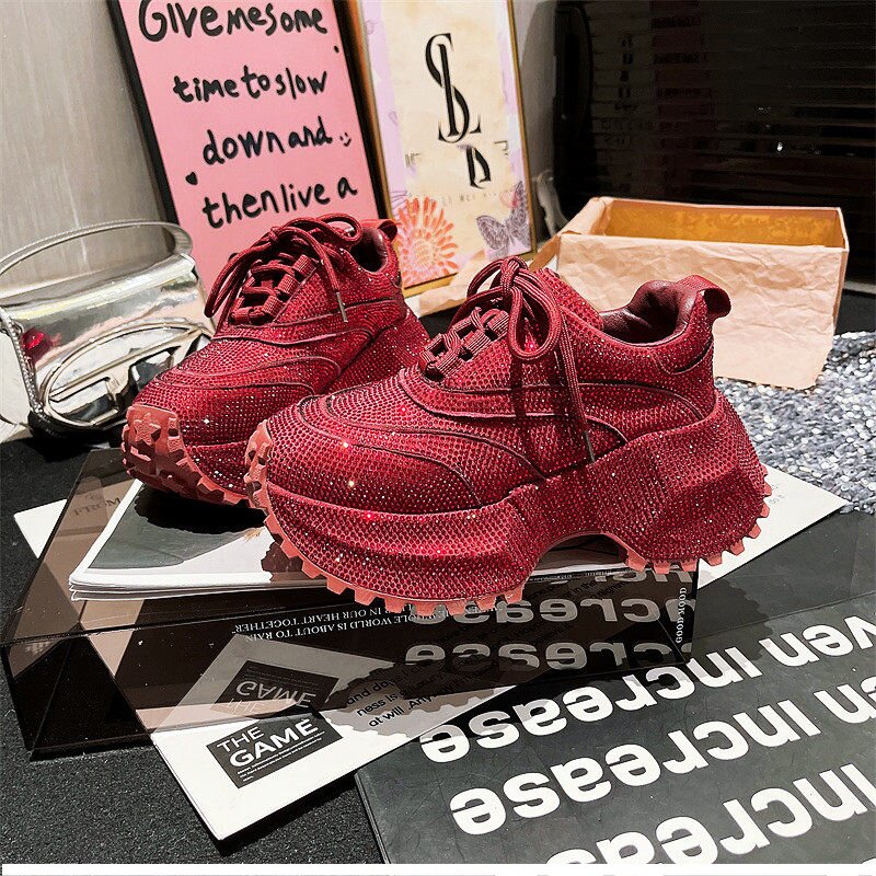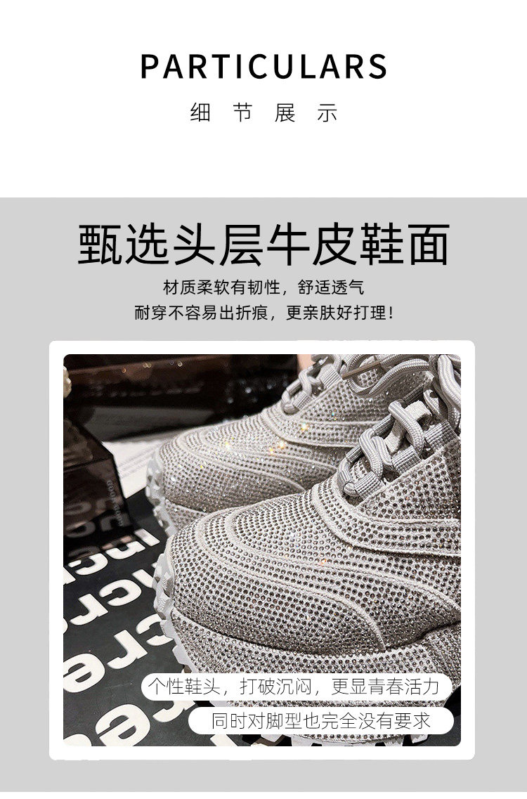 Hong Kong Rhinestone Platform Thick-Soled Height-Increasing Dad Shoes for Women 2026 Spring and Autumn New Versatile Breathable Casual Sports Shoes Trendy