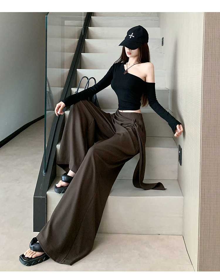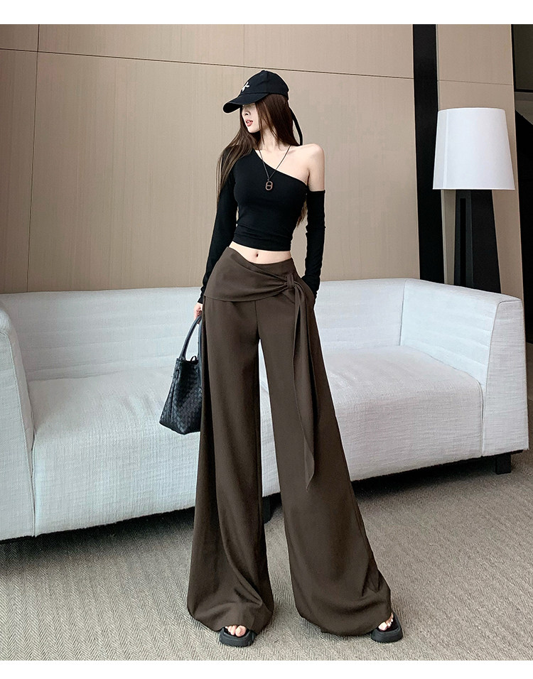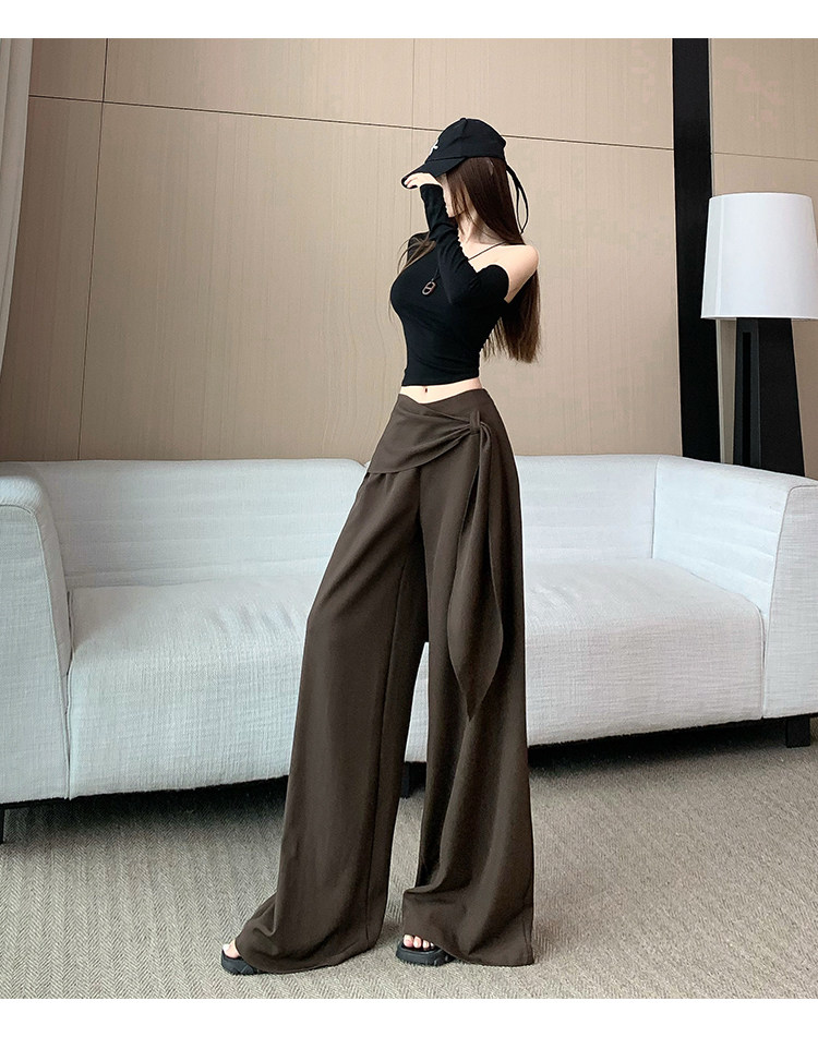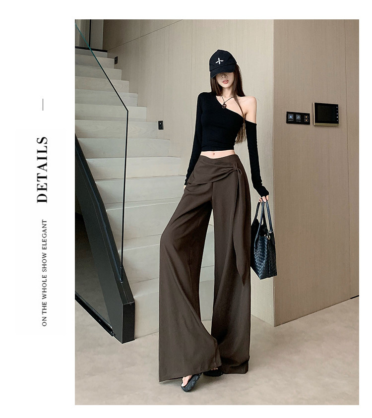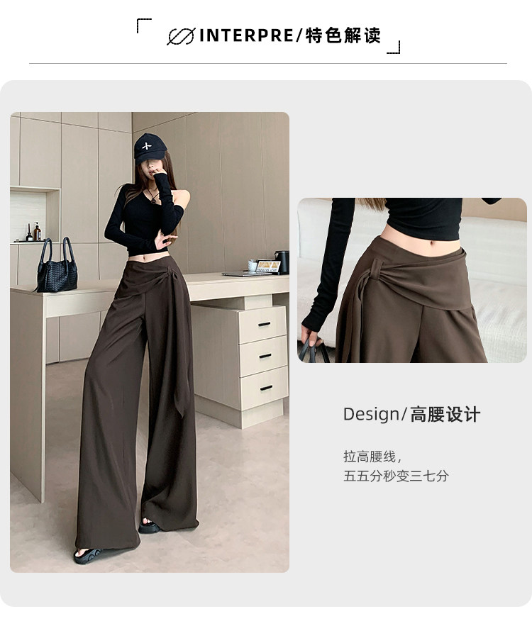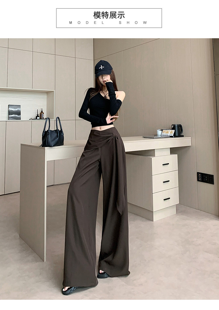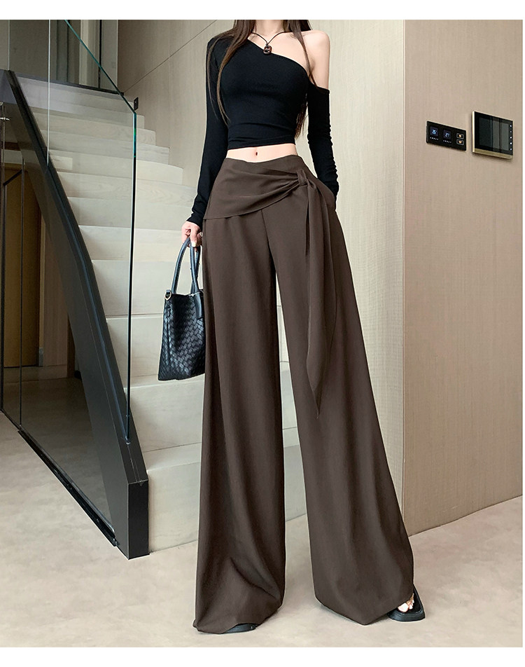 Brown Coffee-Colored Suit Pants for Women, Spring and Autumn, High-End Drape, High-Waisted Wide-Leg Pants, Loose, Lazy, Straight-Leg Casual Long Pants