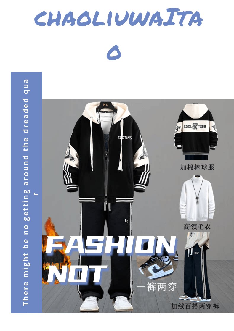 New Spring and Autumn Men's Baseball Jacket Thickened Cotton Coat for Teenagers, Trendy and Stylish Outfit for Middle and High School Students