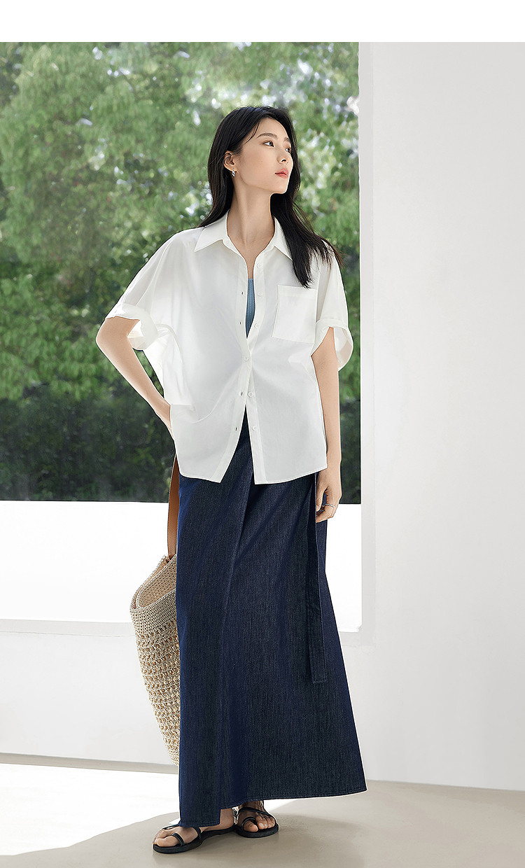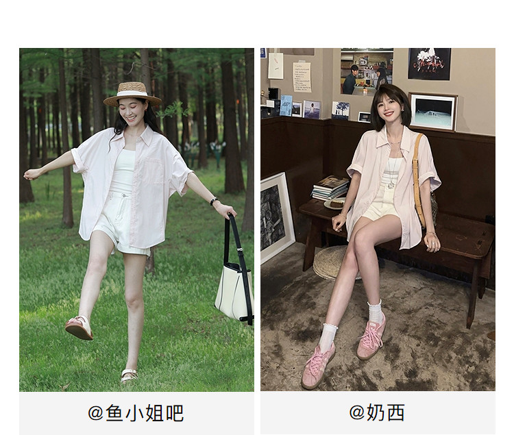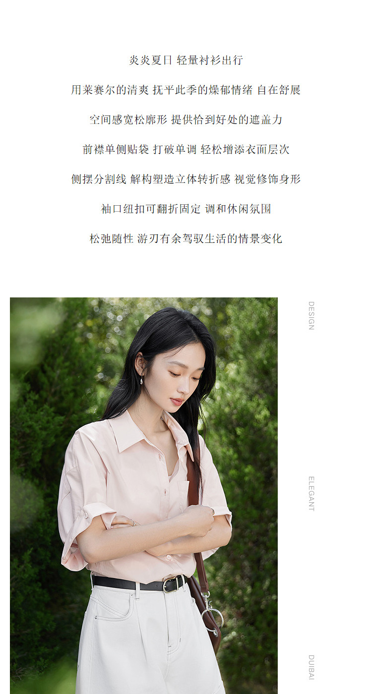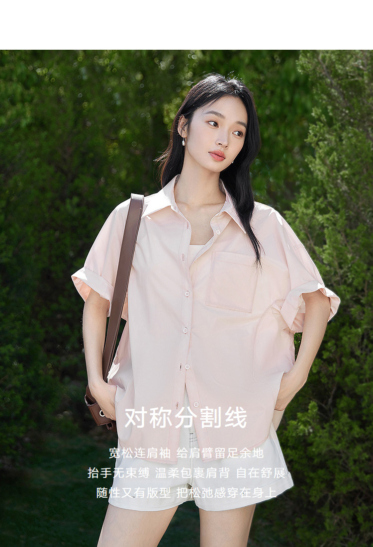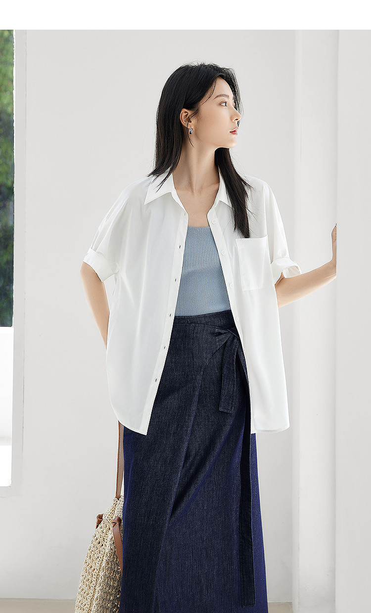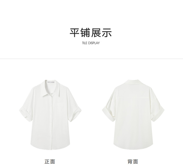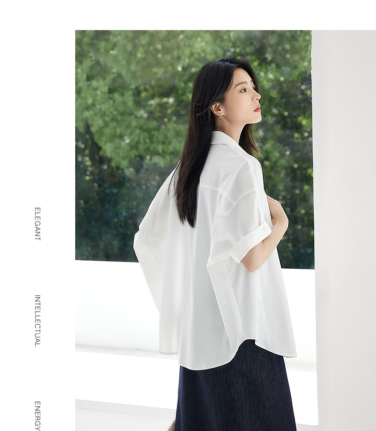 White Loose Casual Rolled-Up Short-Sleeved Shirt for Women 2026 Summer New Style Elegant Shirt with a Relaxed Fit and Slimming Effect Top