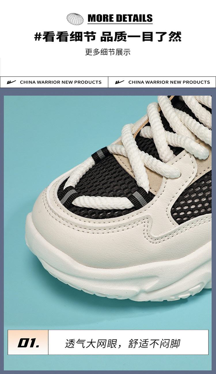 Warrior Women's Shoes 2026 Spring/Summer New Dad Shoes Thick-Soled Height-Increasing Sneakers High-Top Sports Shoes Student Shoes Breathable