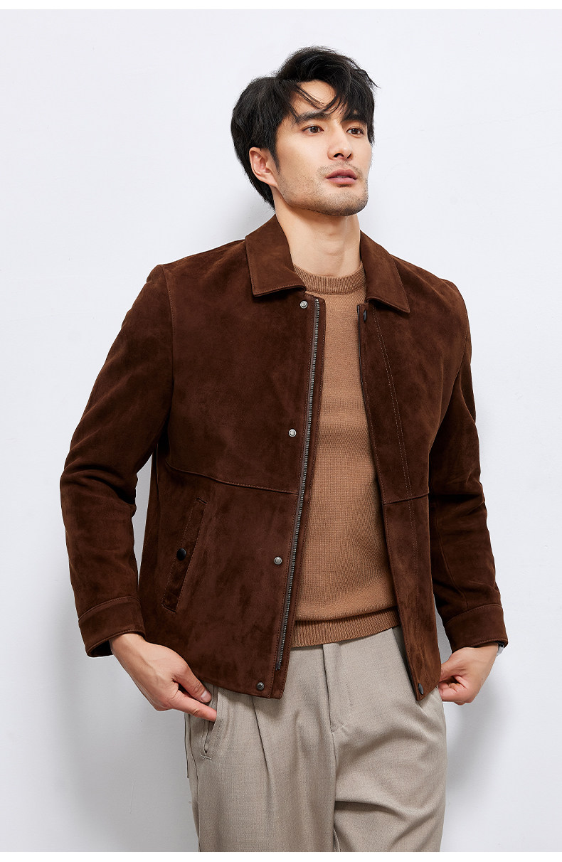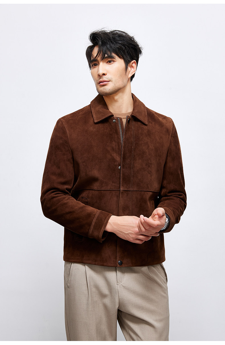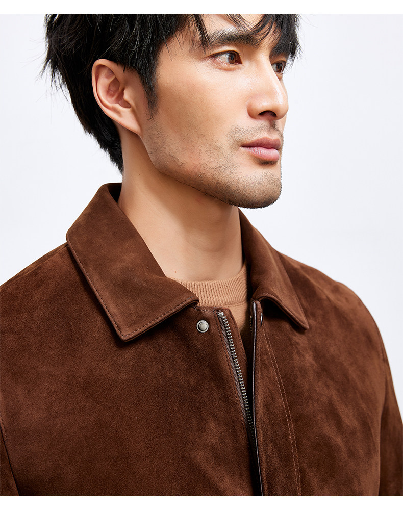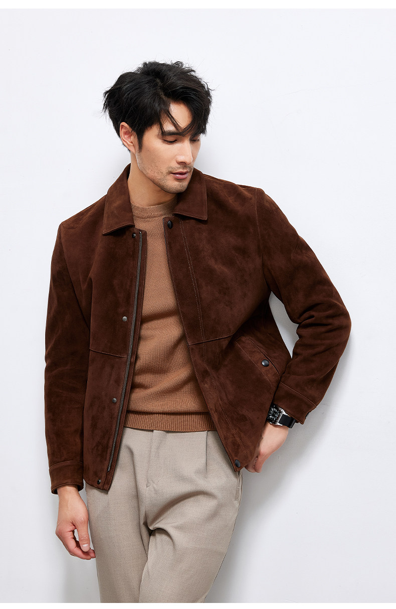 Autumn and Winter Haining Genuine Leather Jacket for Men, Suede Sheepskin Lapel Short Style with Added Fleece, Vintage Trendy Coat