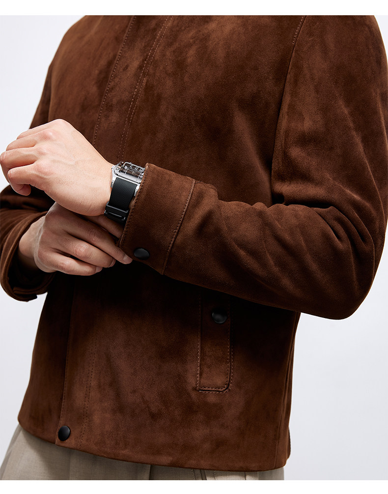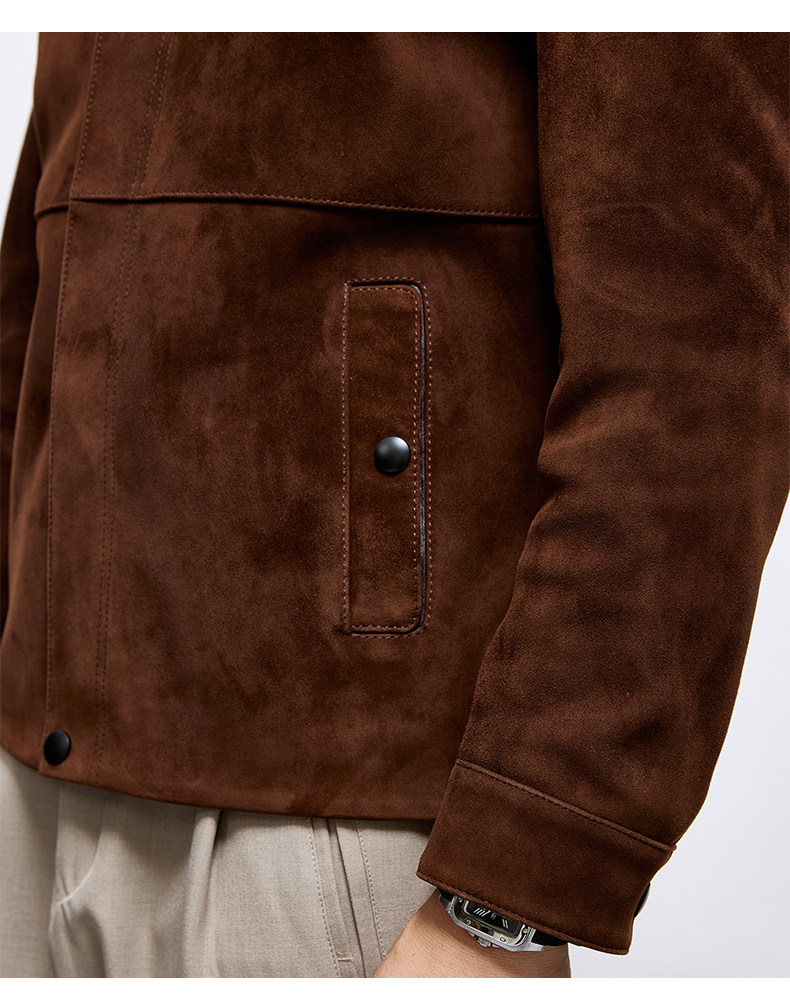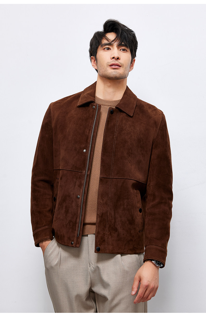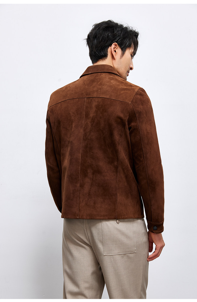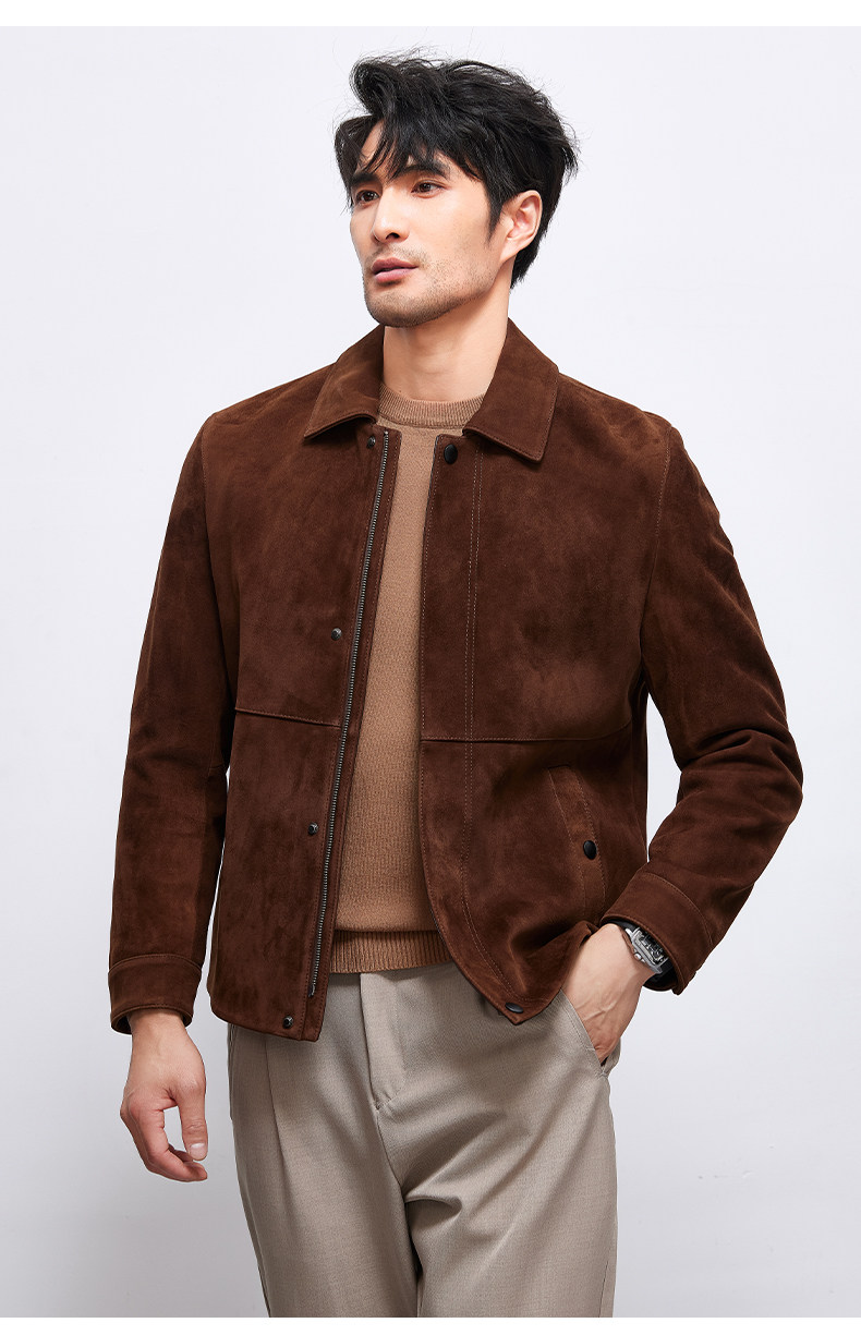 Autumn and Winter Haining Genuine Leather Jacket for Men, Suede Sheepskin Lapel Short Style with Added Fleece, Vintage Trendy Coat