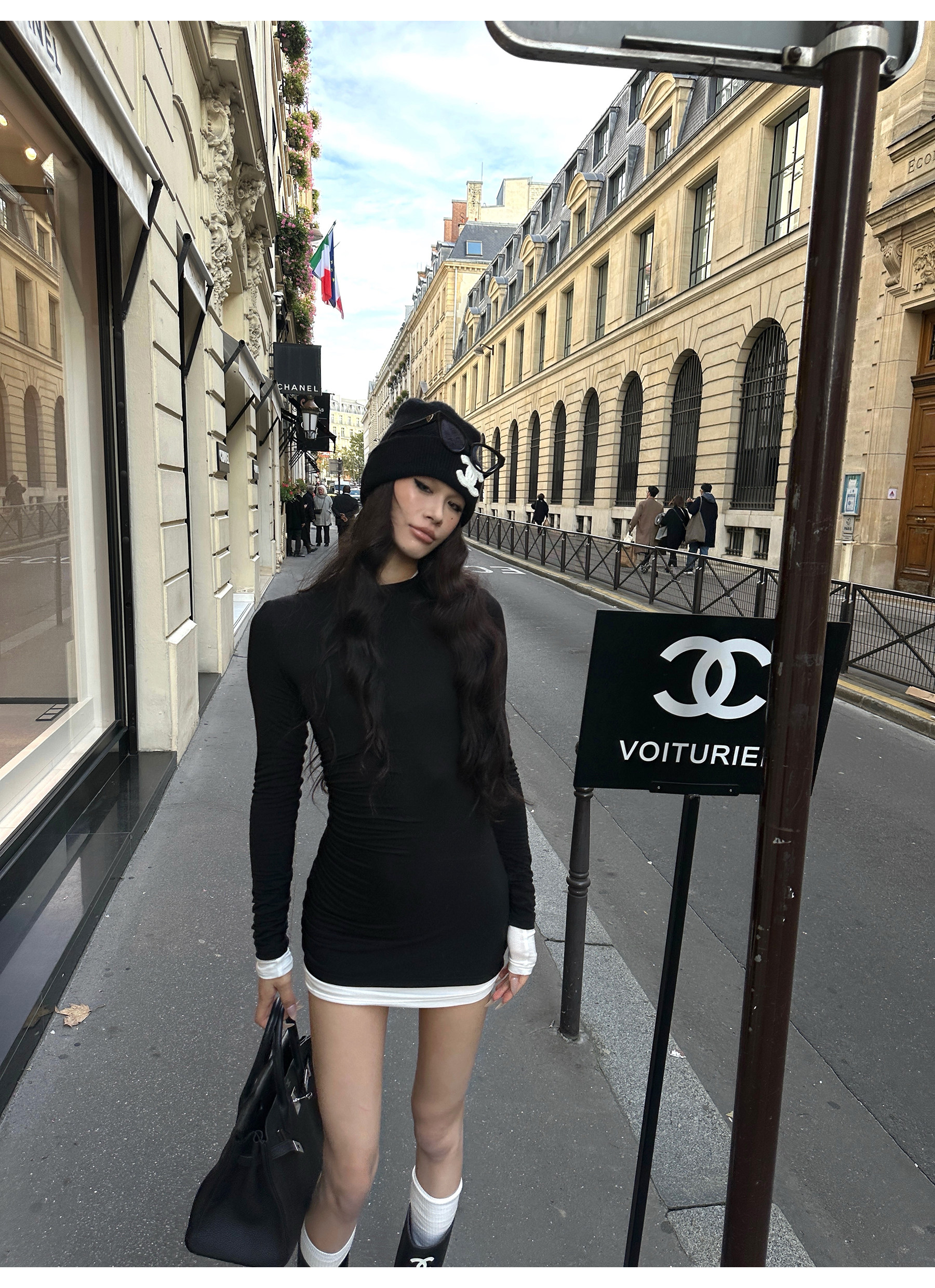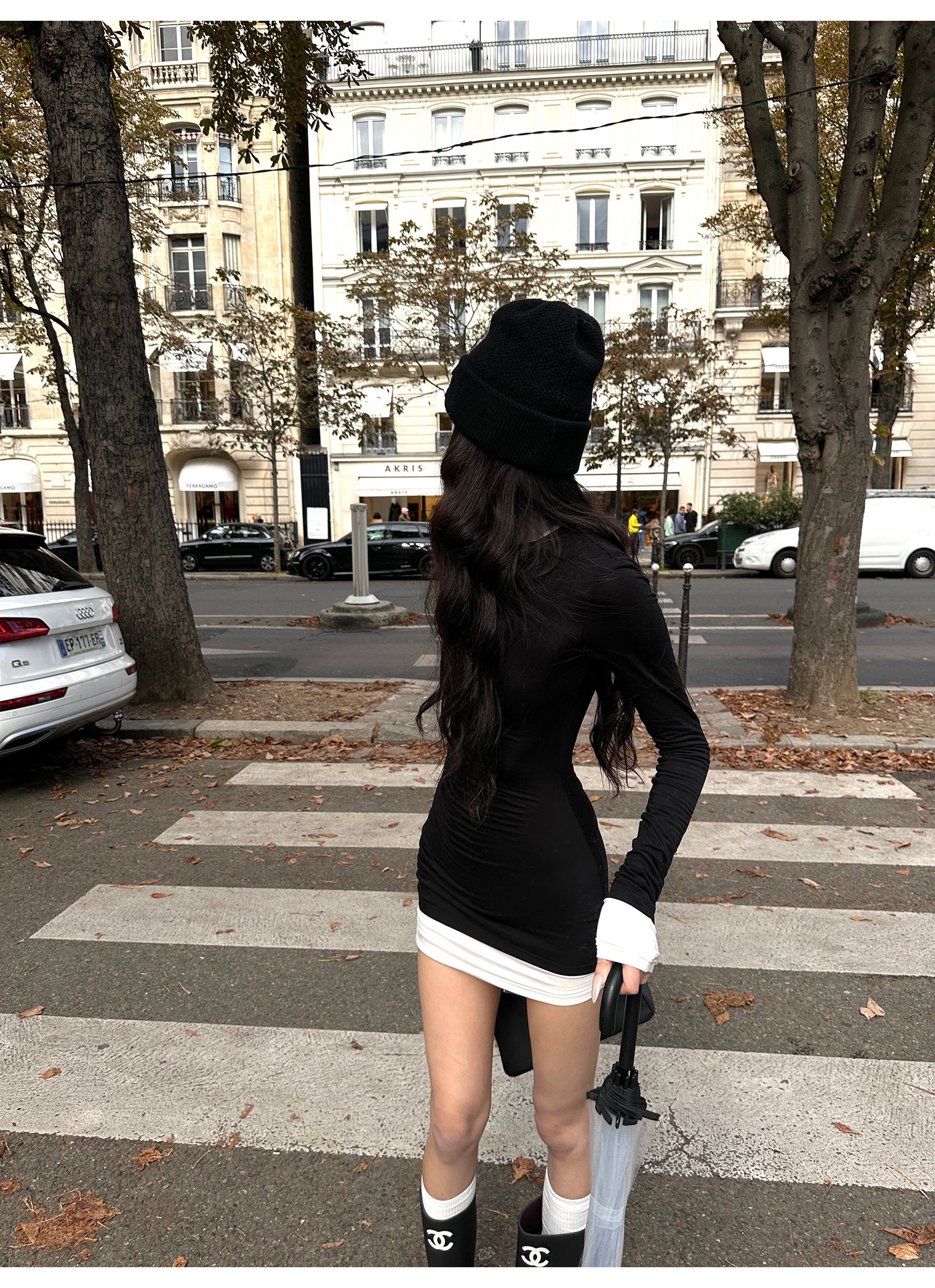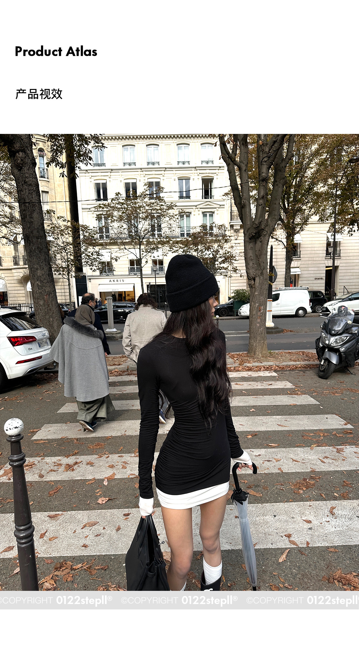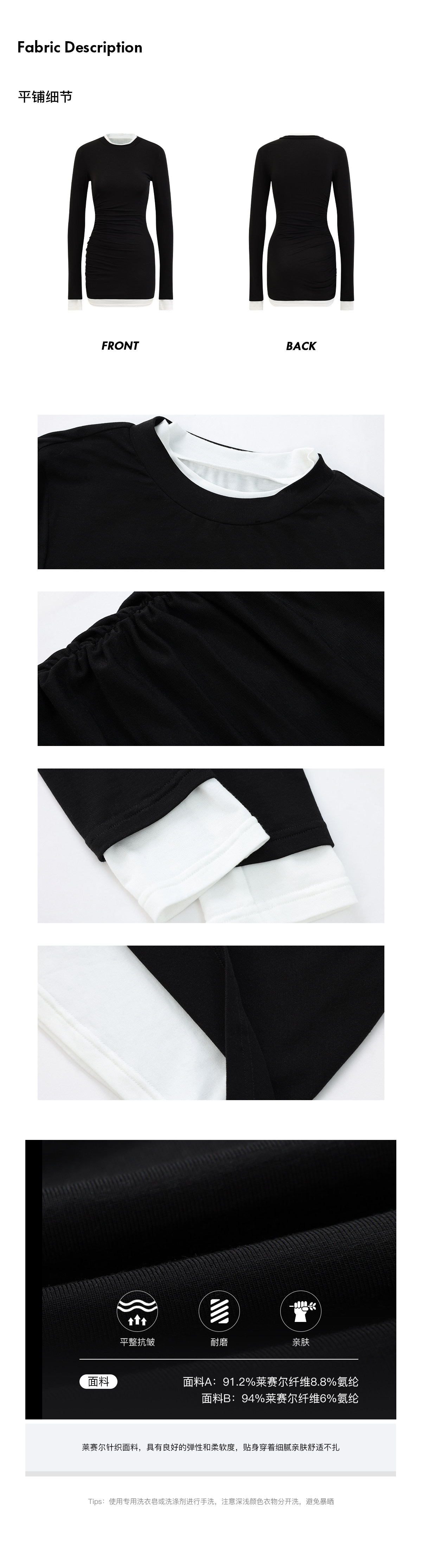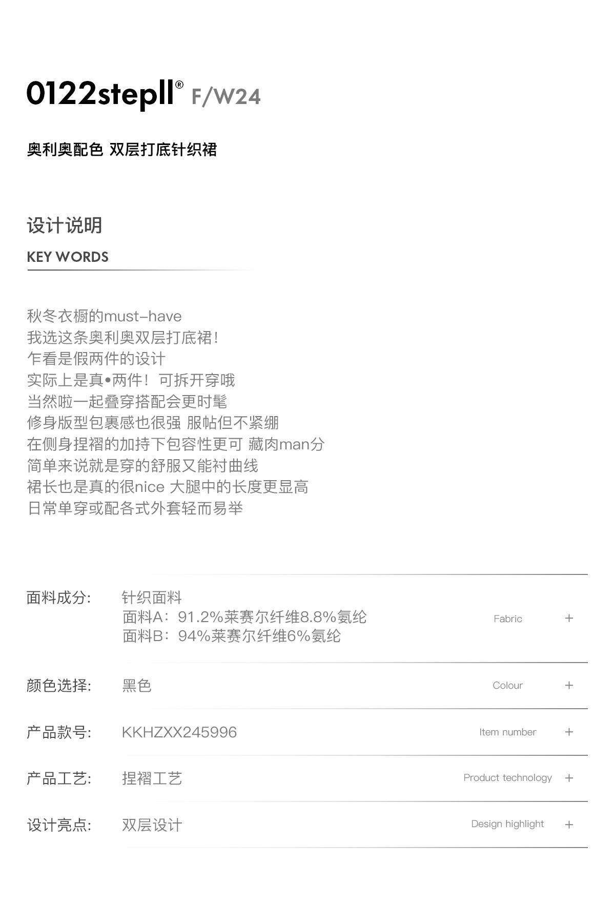 0122Stepll Oreo Color Scheme Double-Layer Black Inner Layer Dress Spring Slim Fit Elegant Knitted Short Skirt