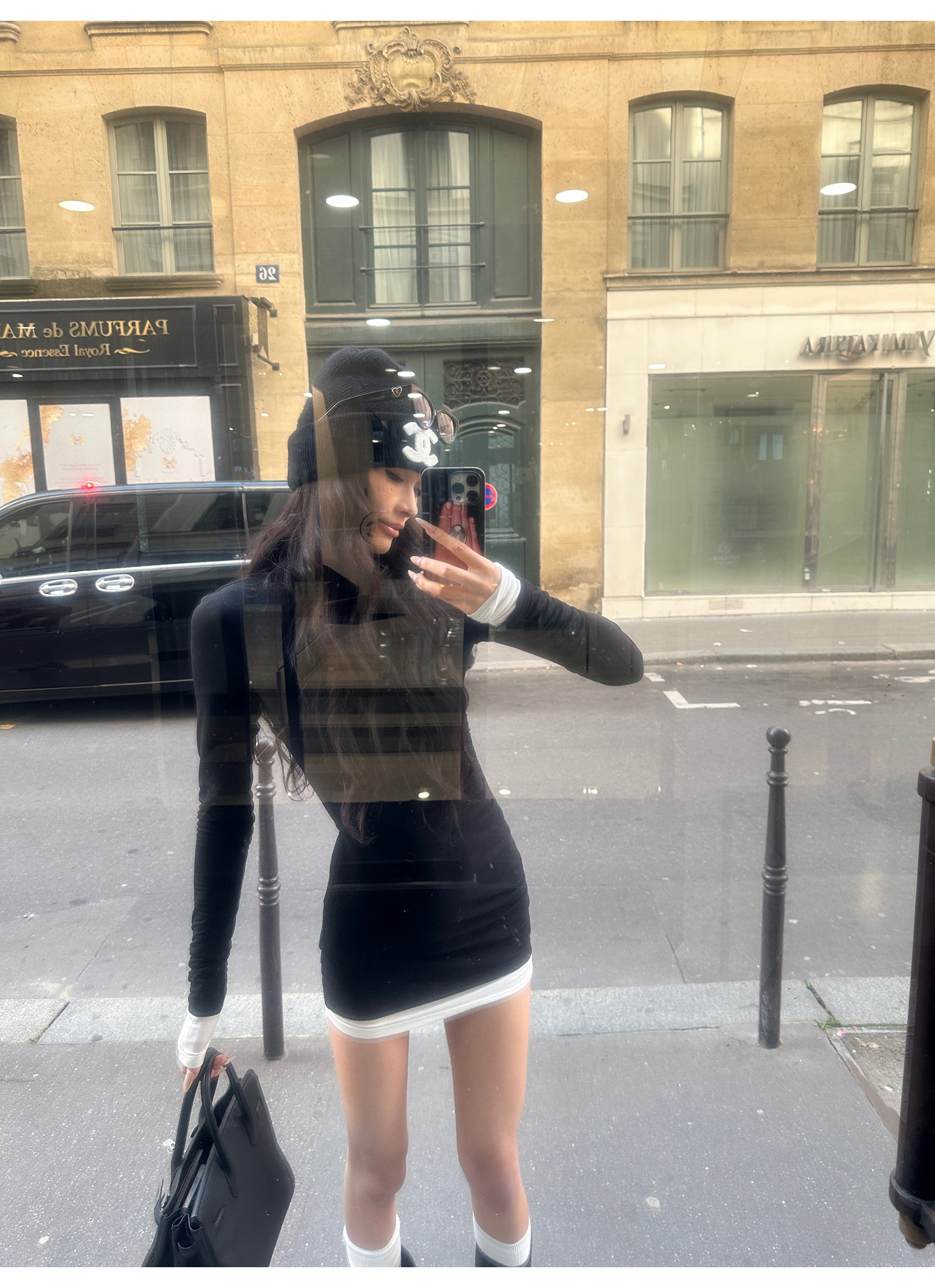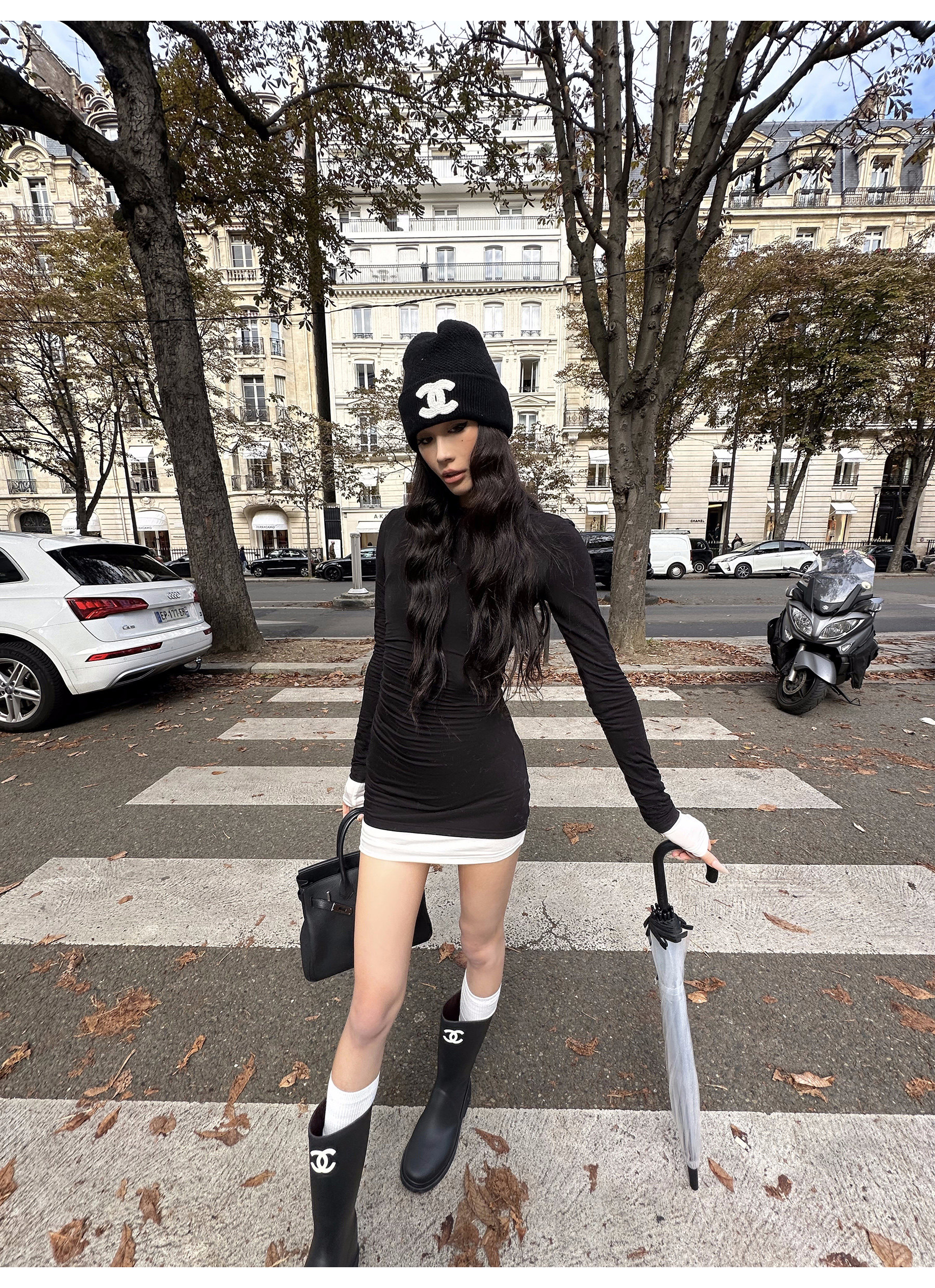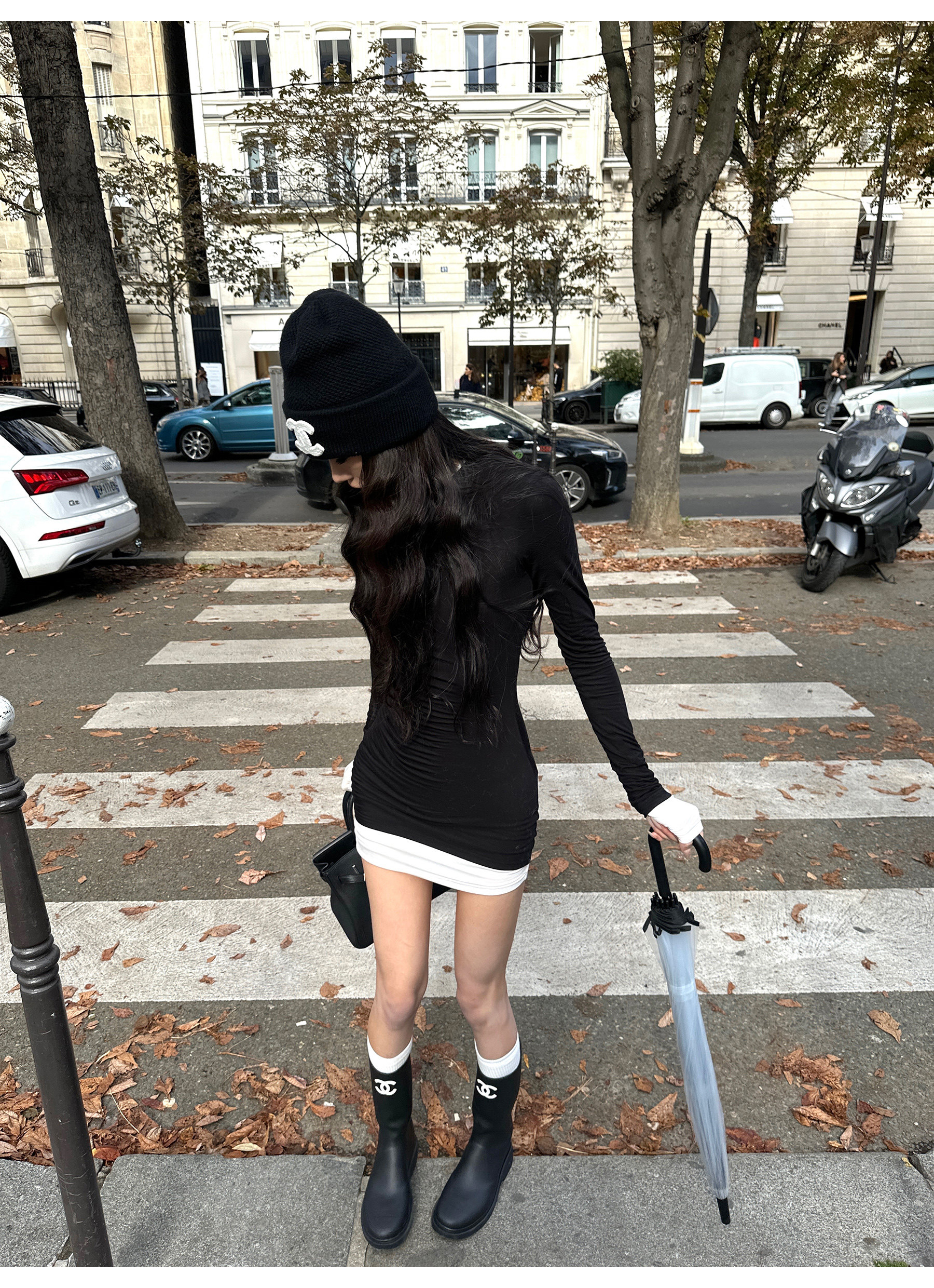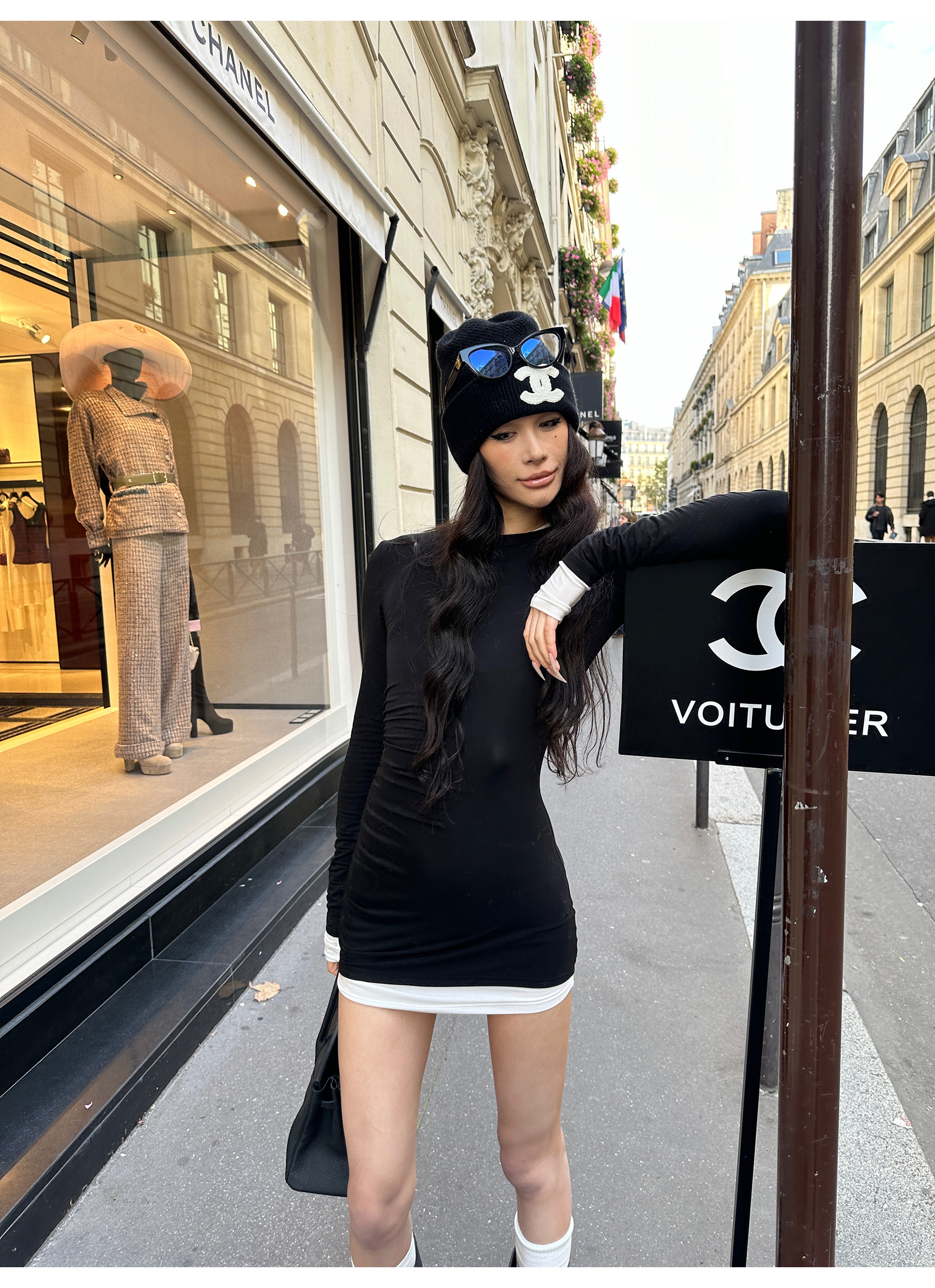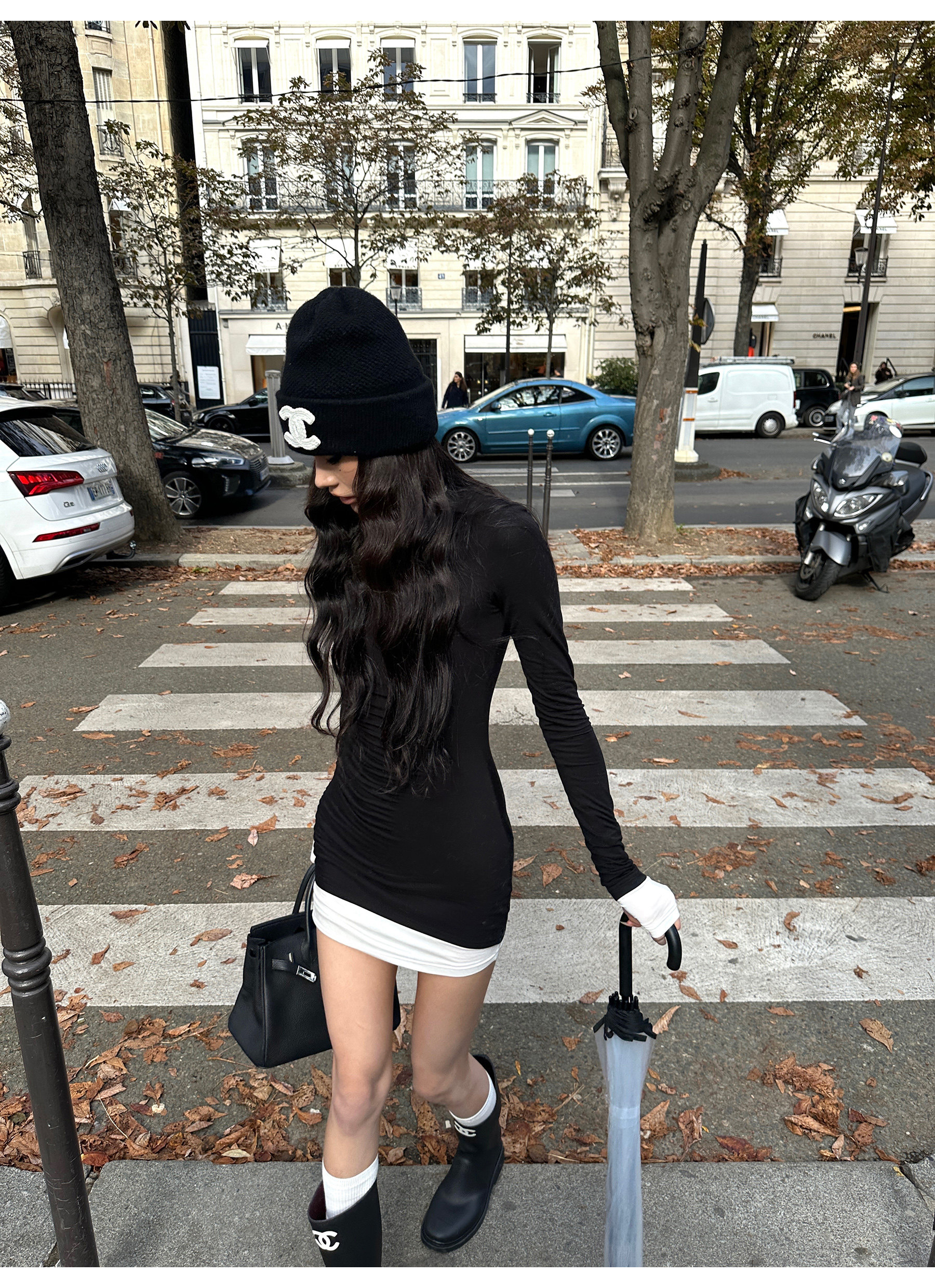 0122Stepll Oreo Color Scheme Double-Layer Black Inner Layer Dress Spring Slim Fit Elegant Knitted Short Skirt