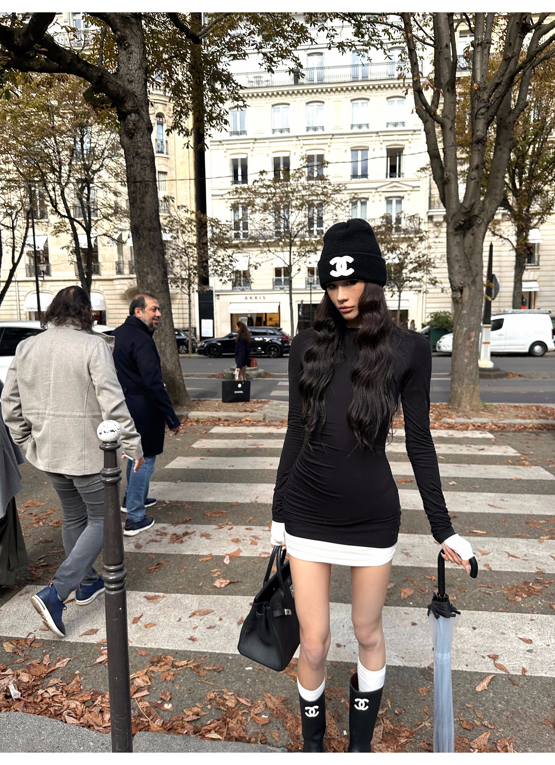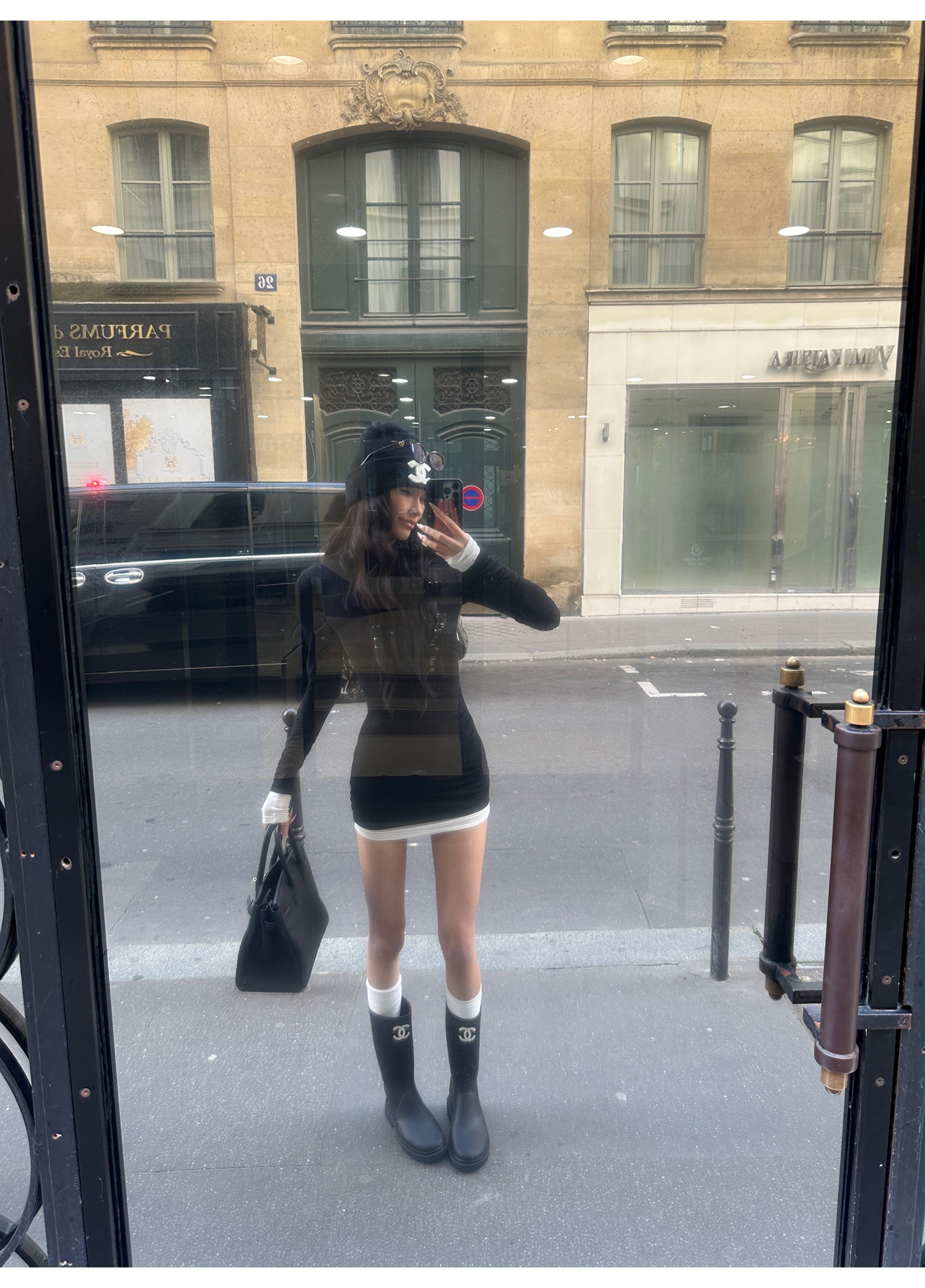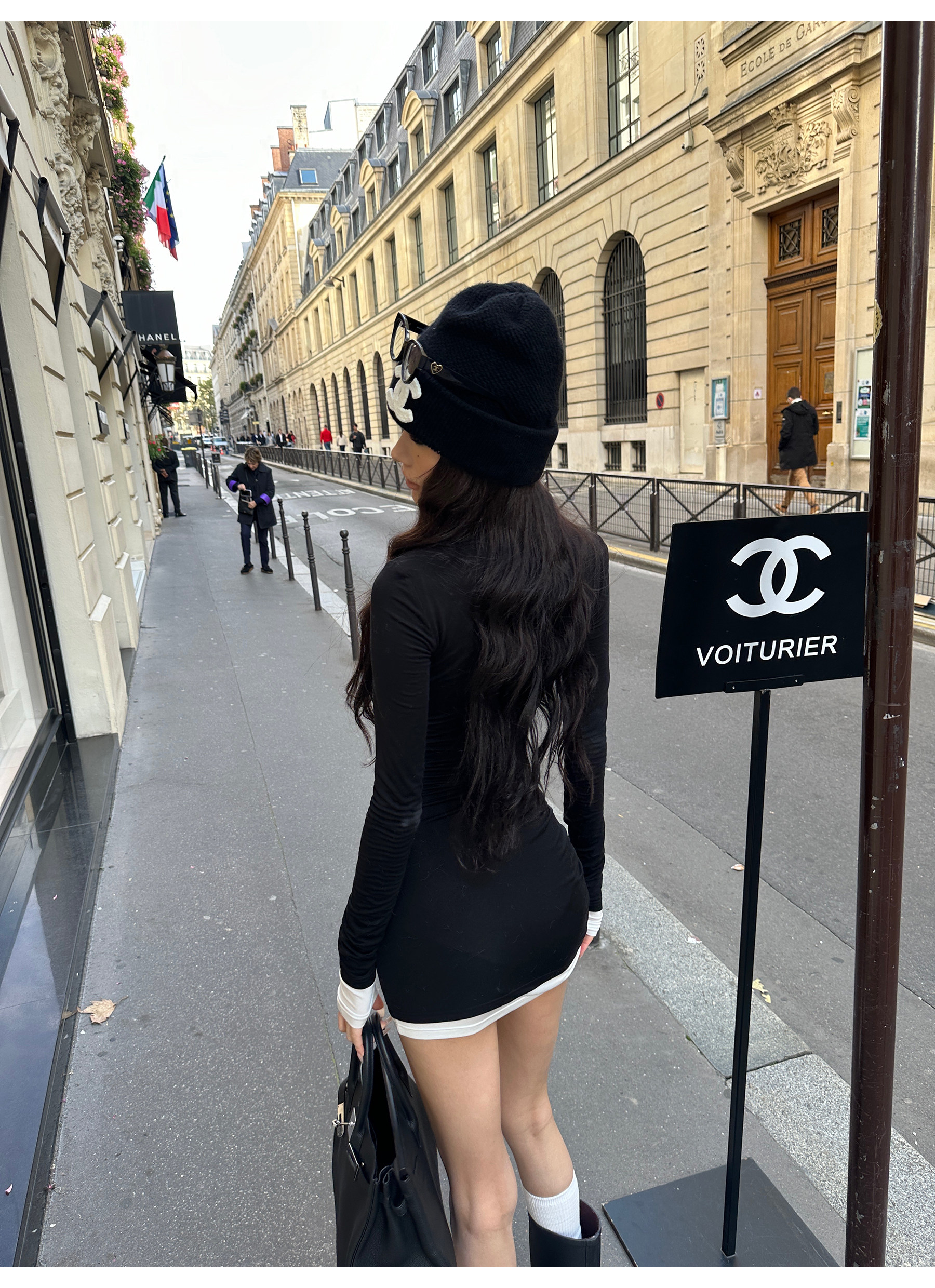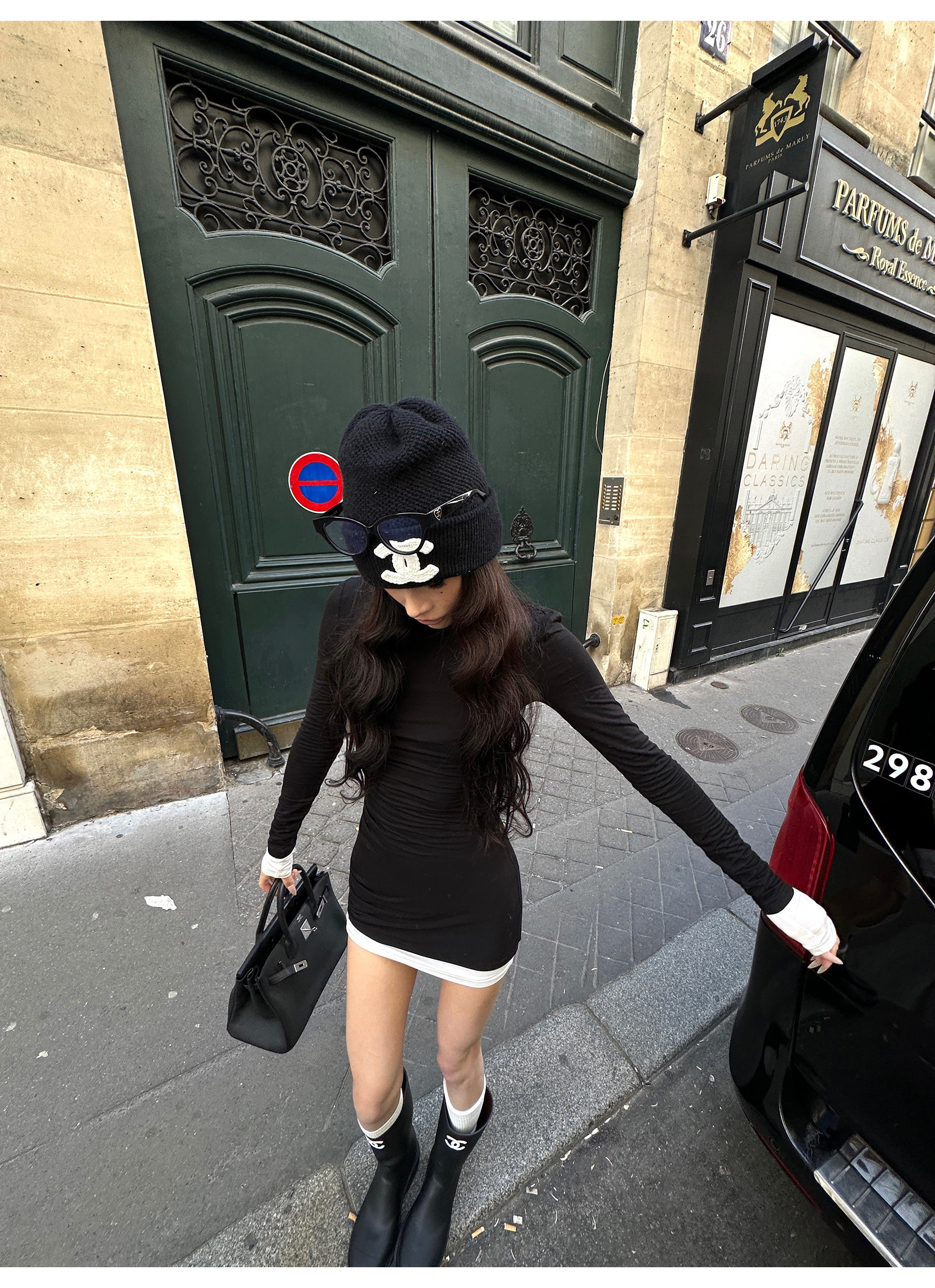 0122Stepll Oreo Color Scheme Double-Layer Black Inner Layer Dress Spring Slim Fit Elegant Knitted Short Skirt