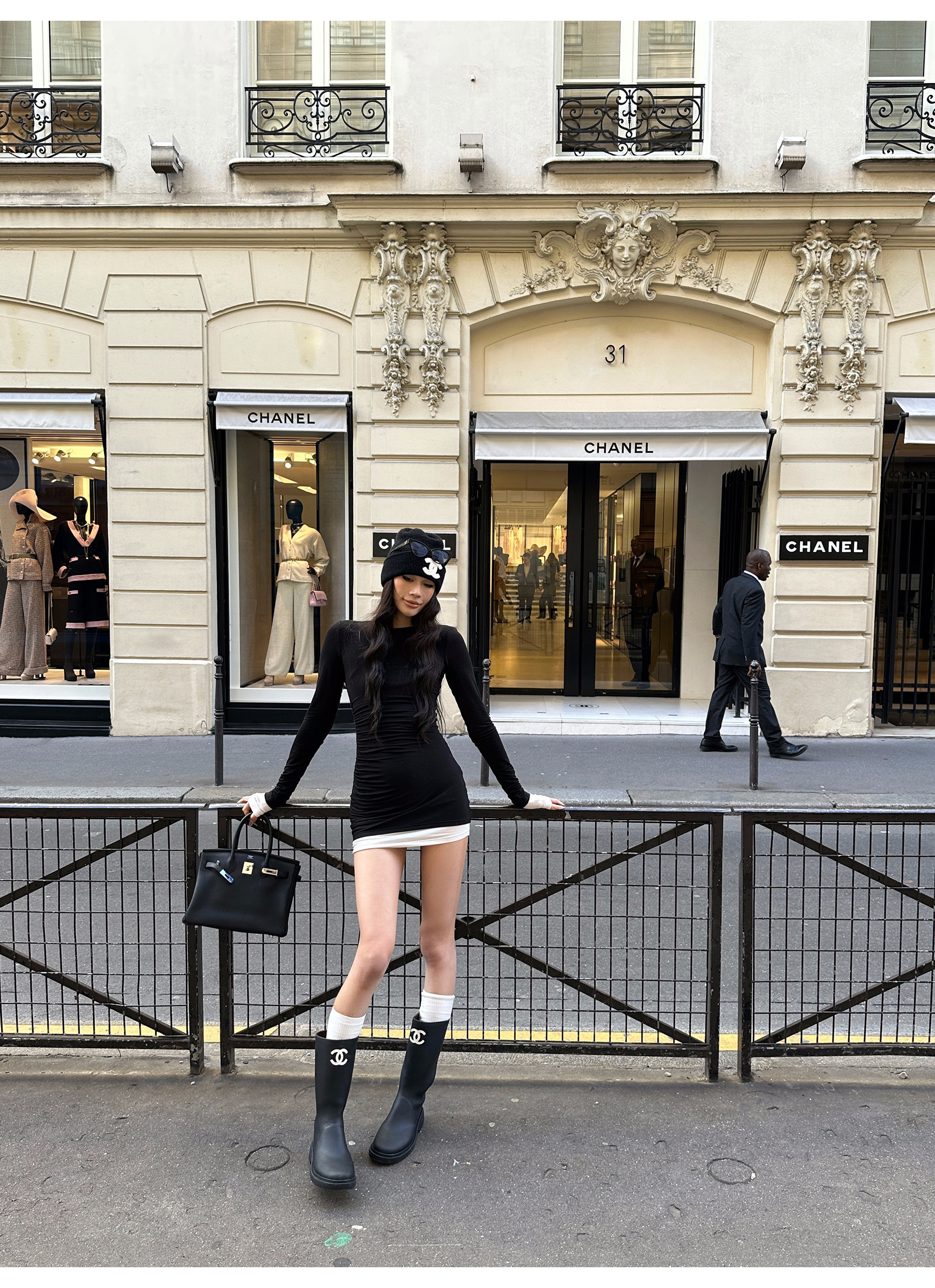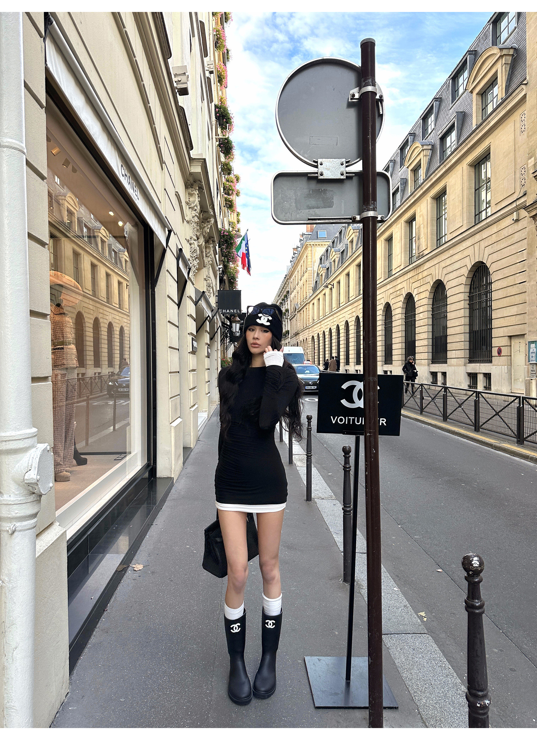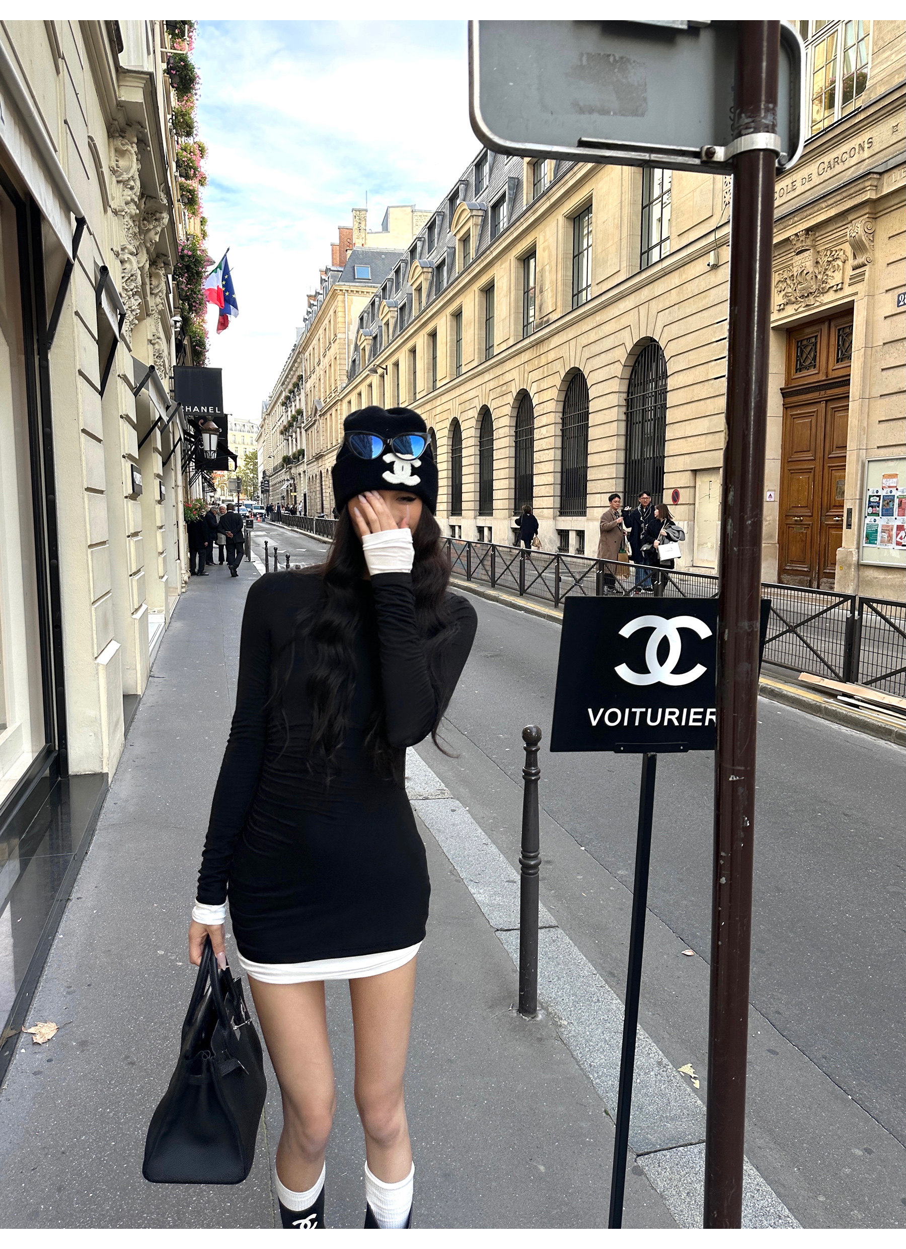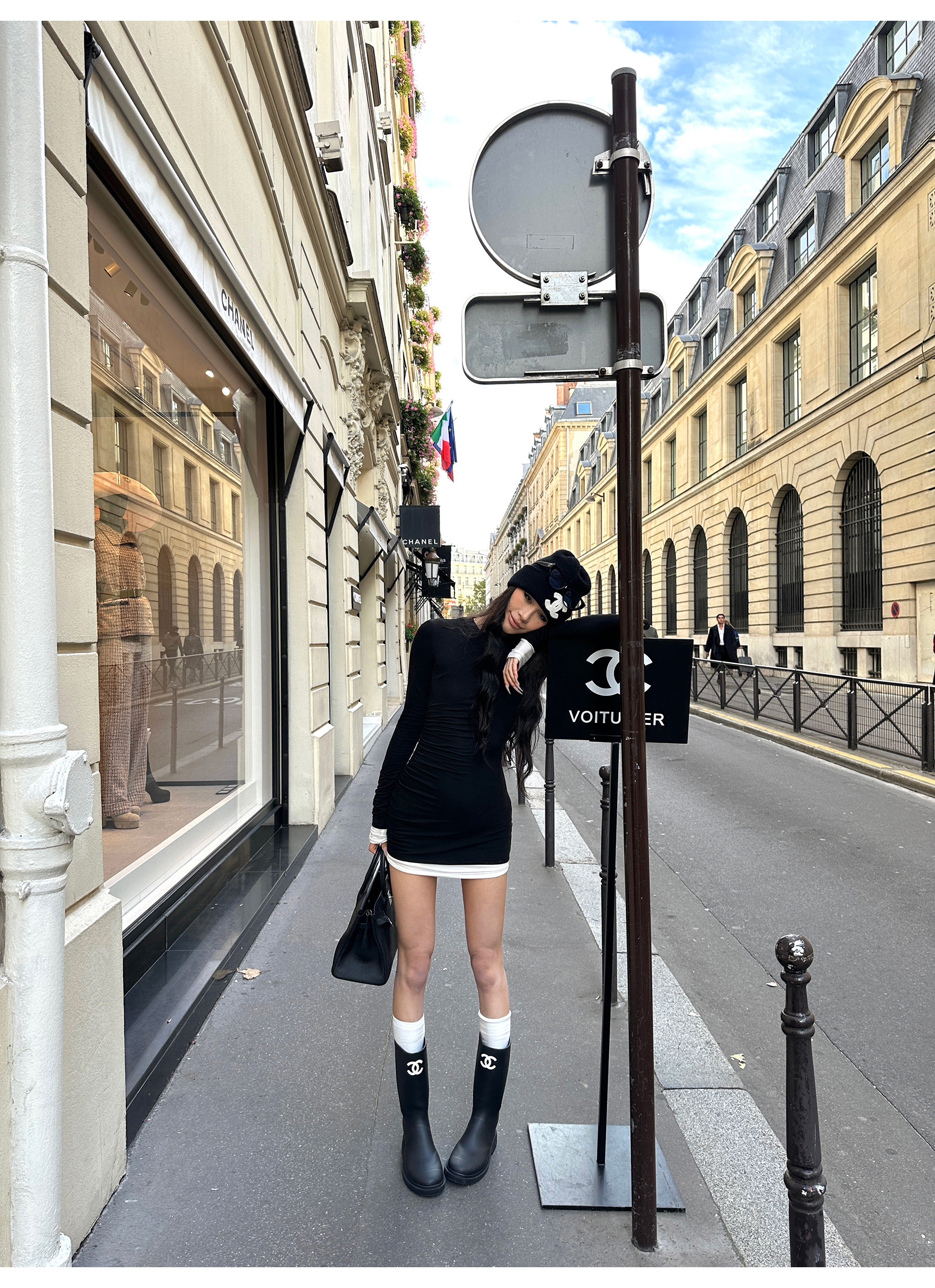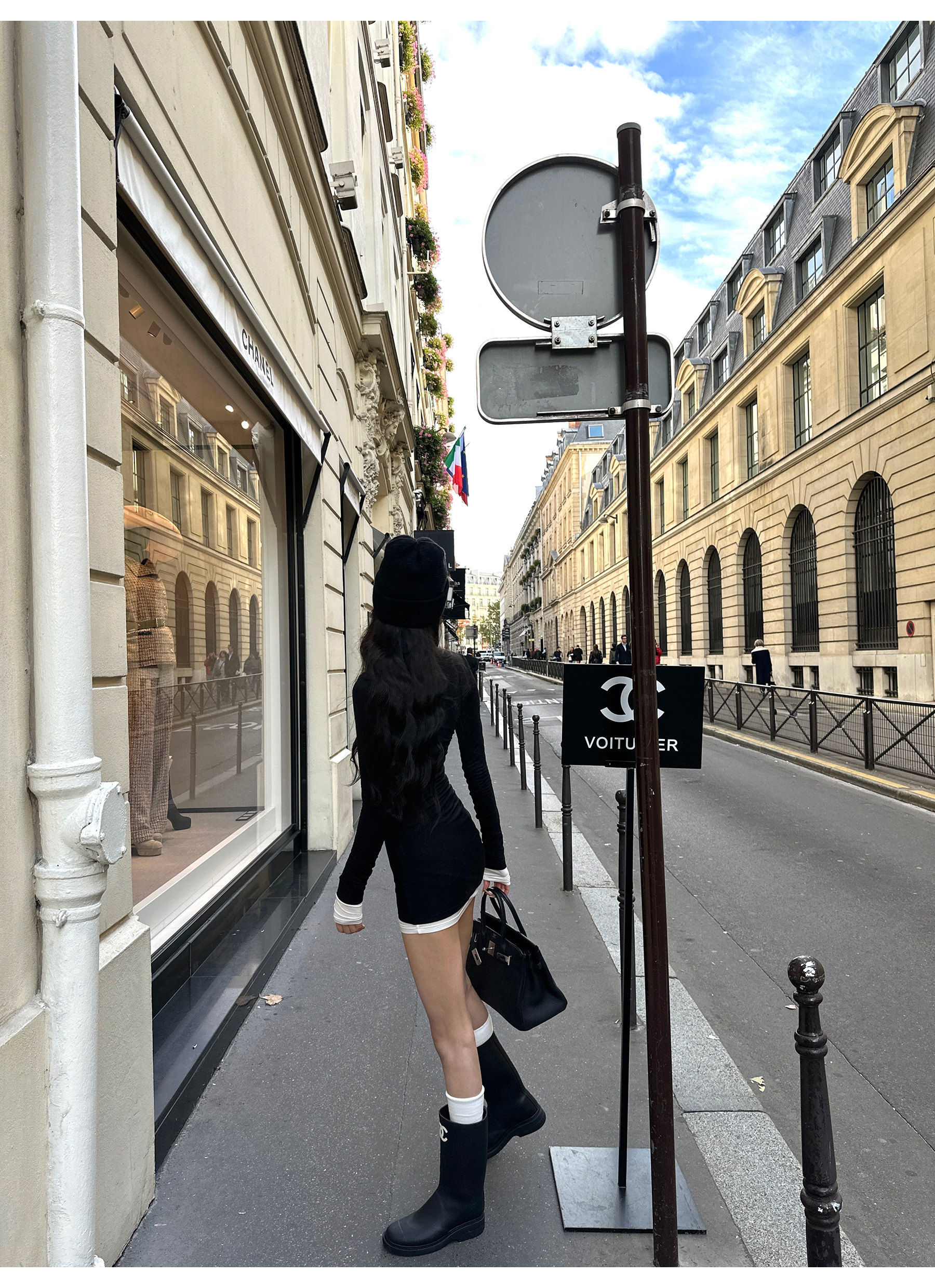 0122Stepll Oreo Color Scheme Double-Layer Black Inner Layer Dress Spring Slim Fit Elegant Knitted Short Skirt
