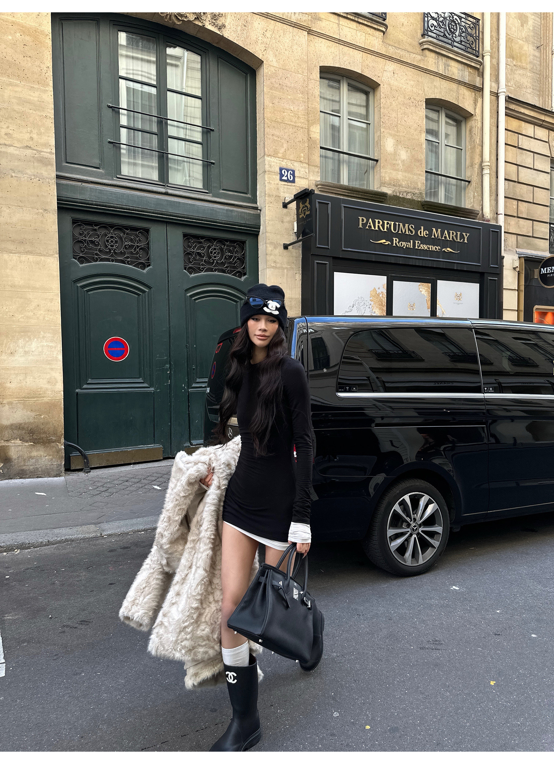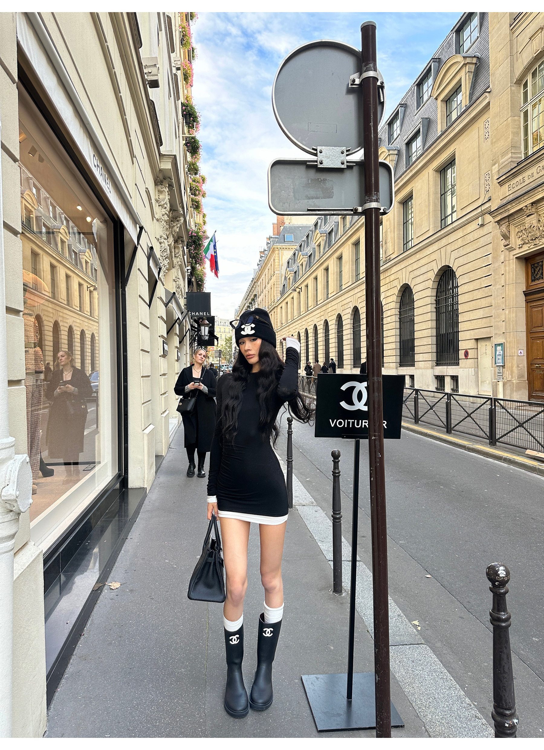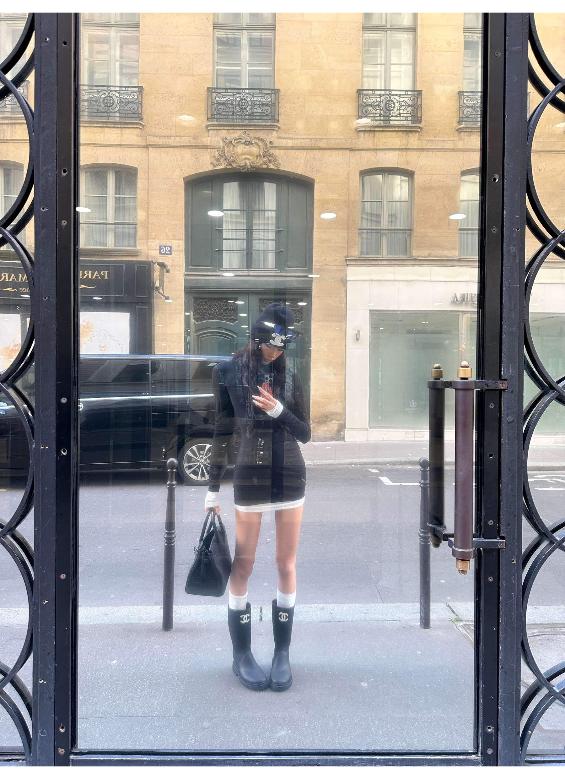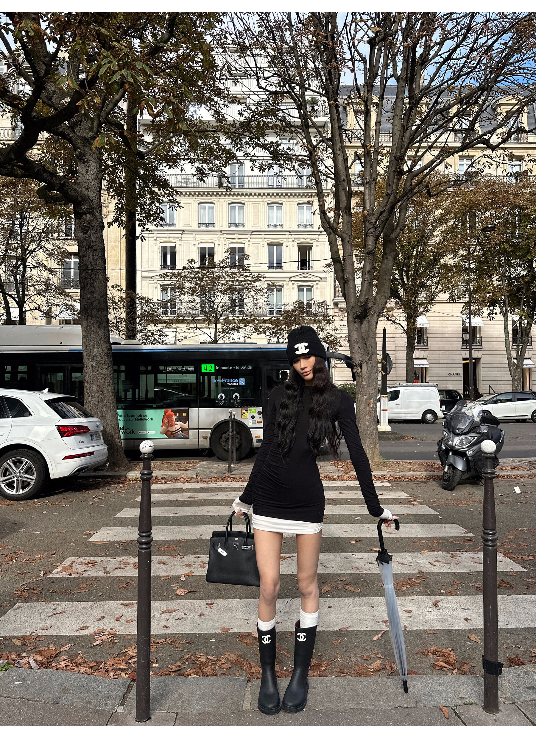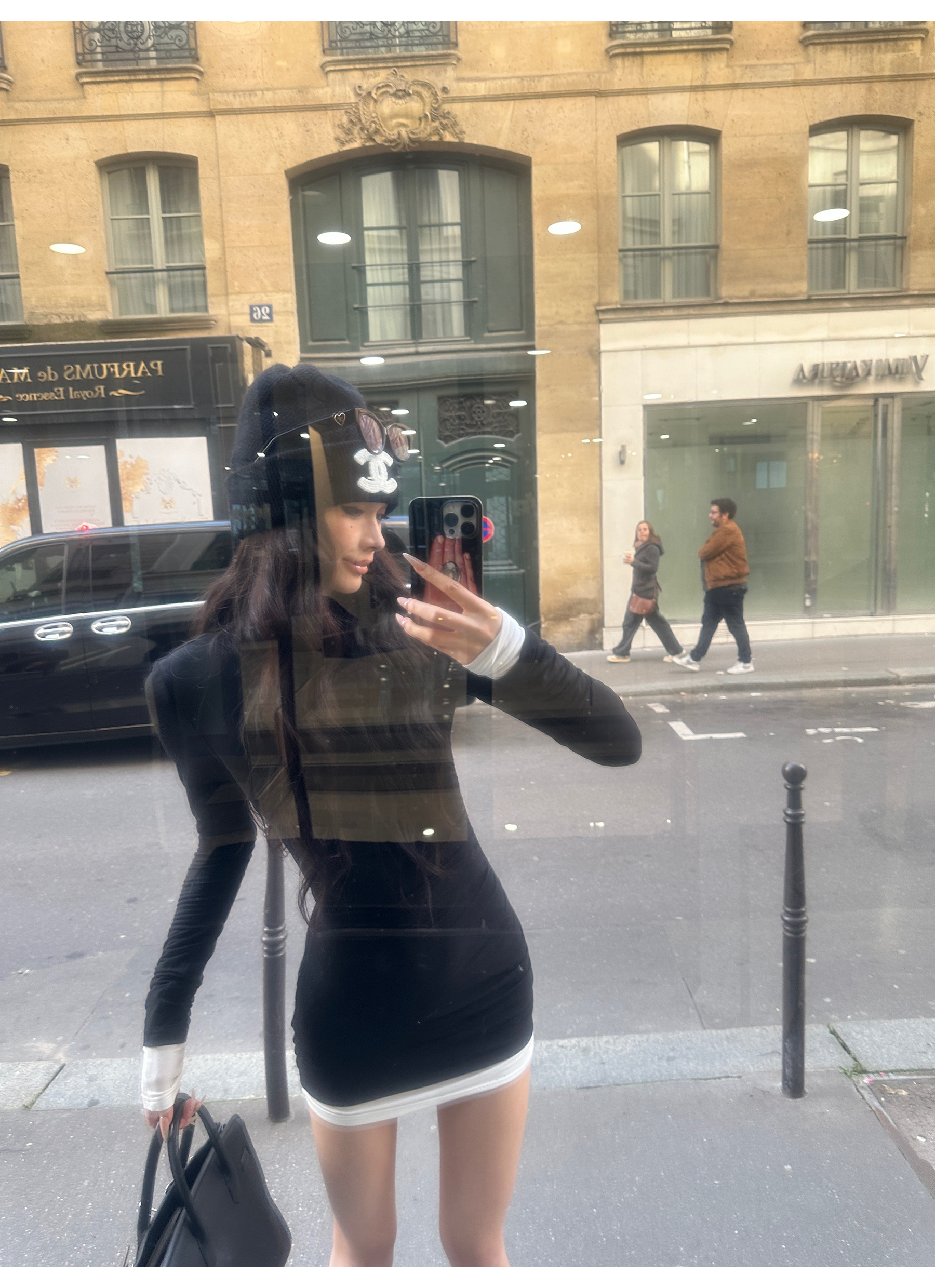 0122Stepll Oreo Color Scheme Double-Layer Black Inner Layer Dress Spring Slim Fit Elegant Knitted Short Skirt