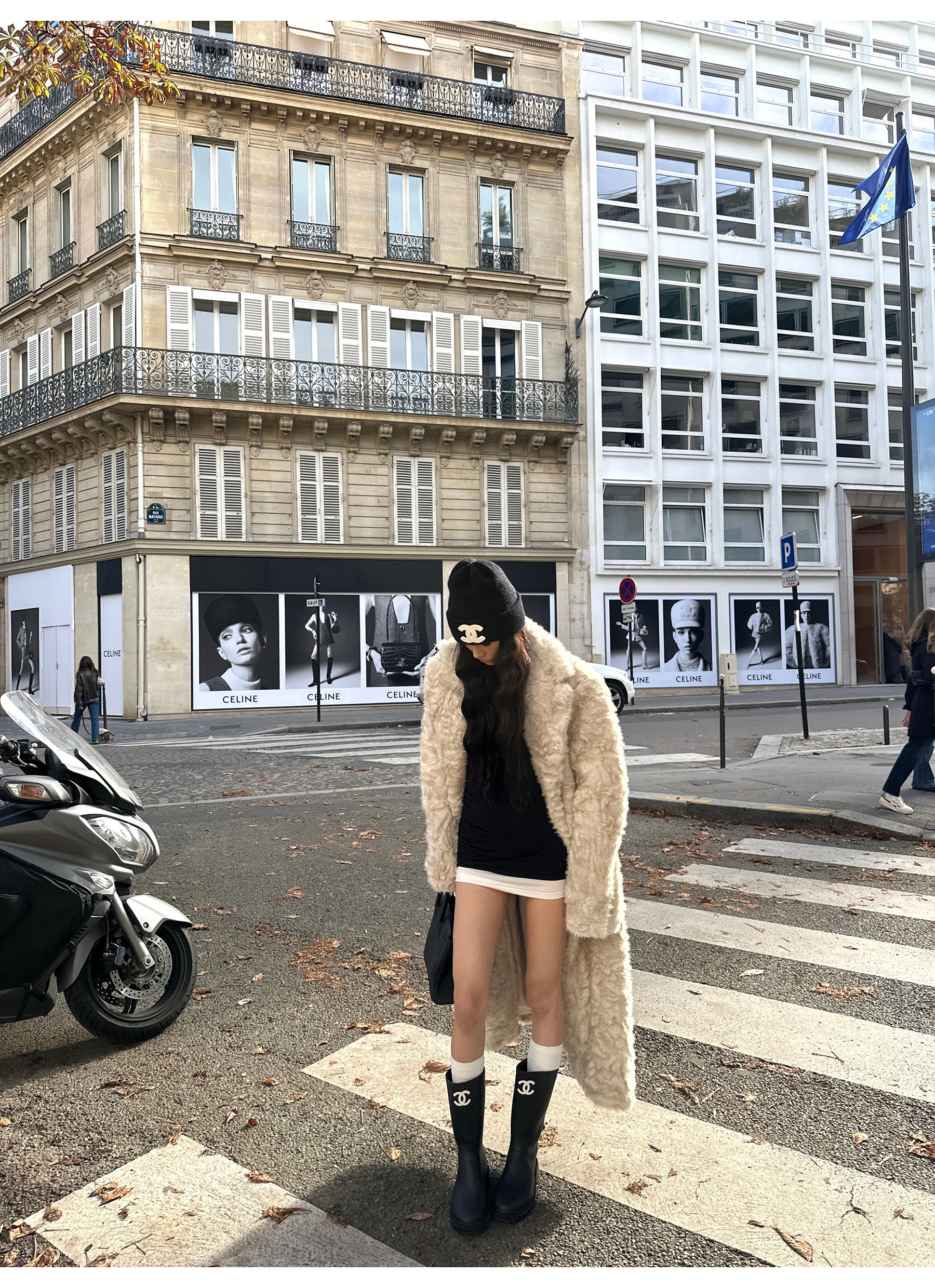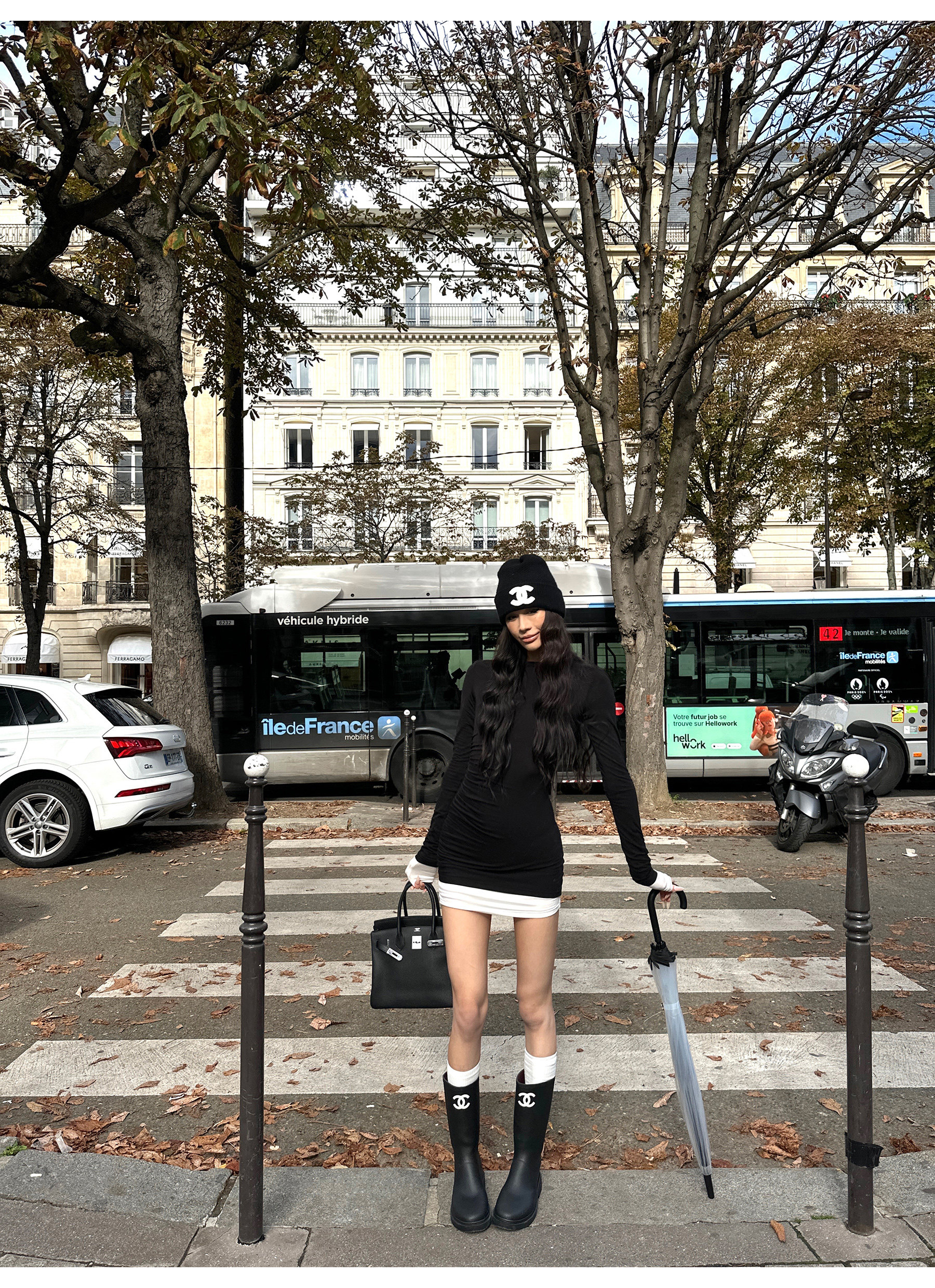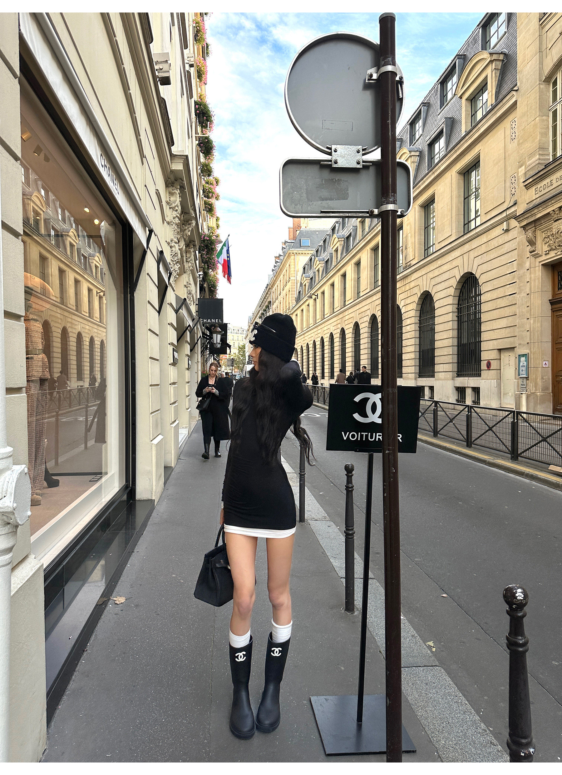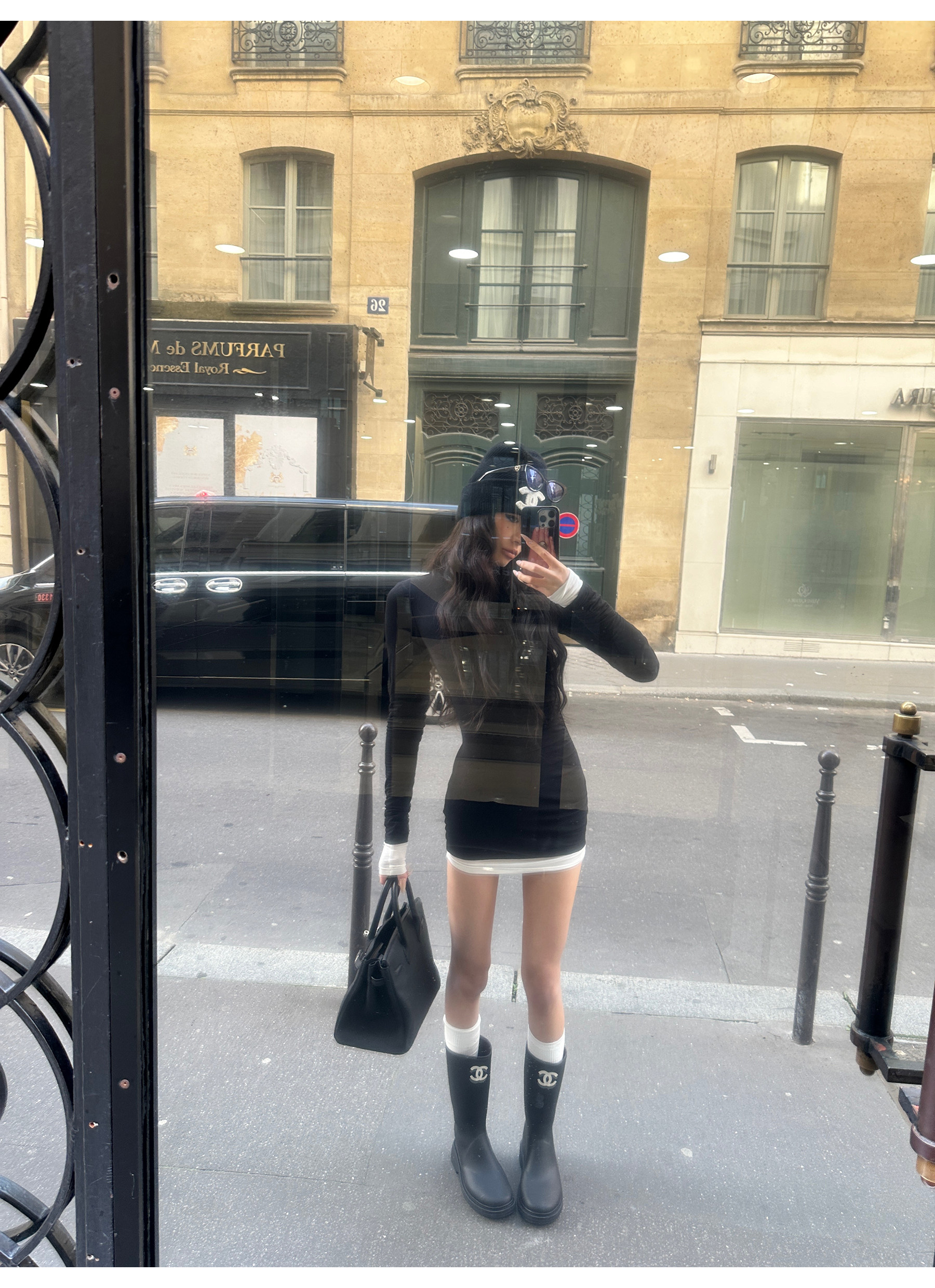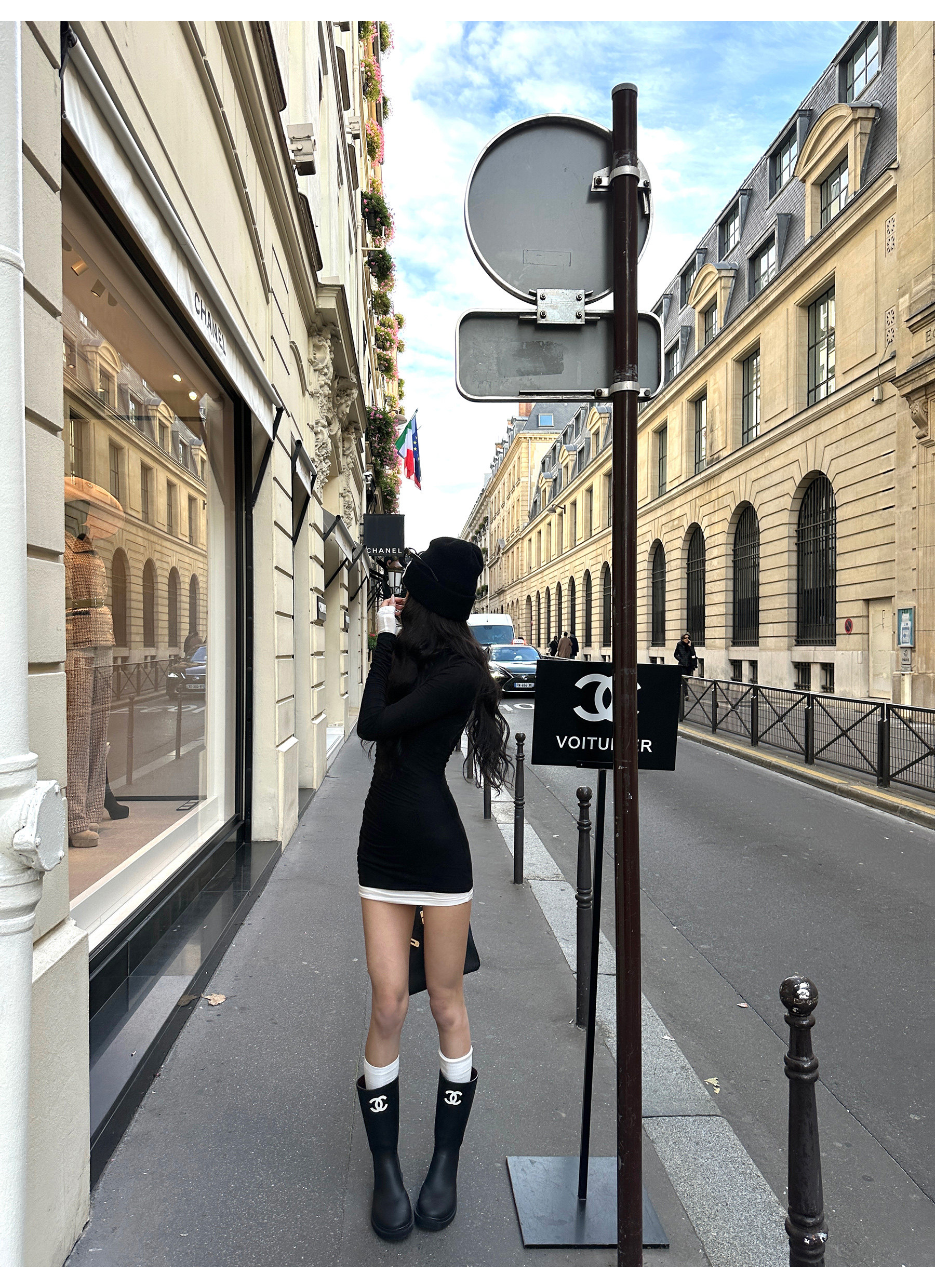 0122Stepll Oreo Color Scheme Double-Layer Black Inner Layer Dress Spring Slim Fit Elegant Knitted Short Skirt
