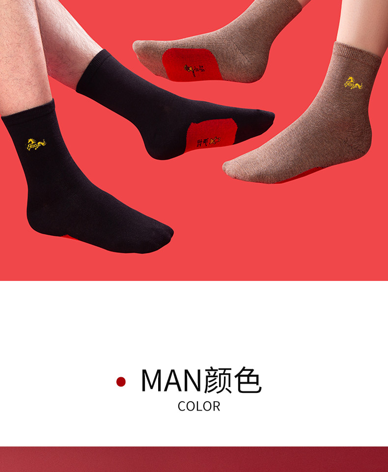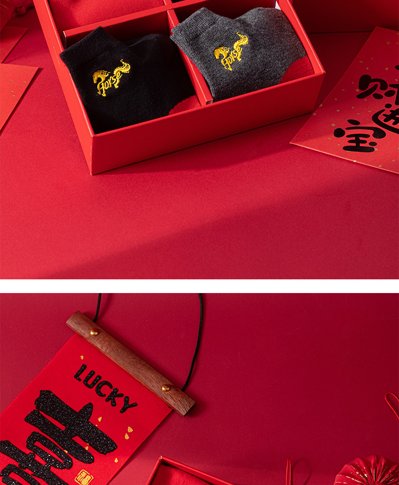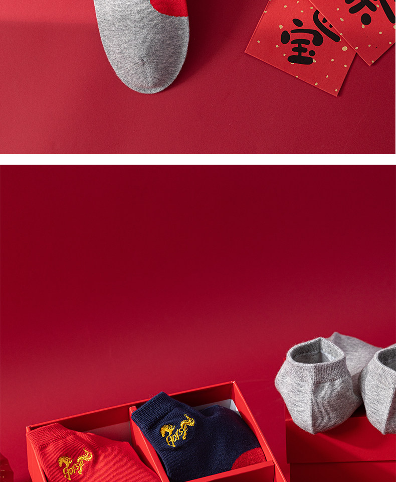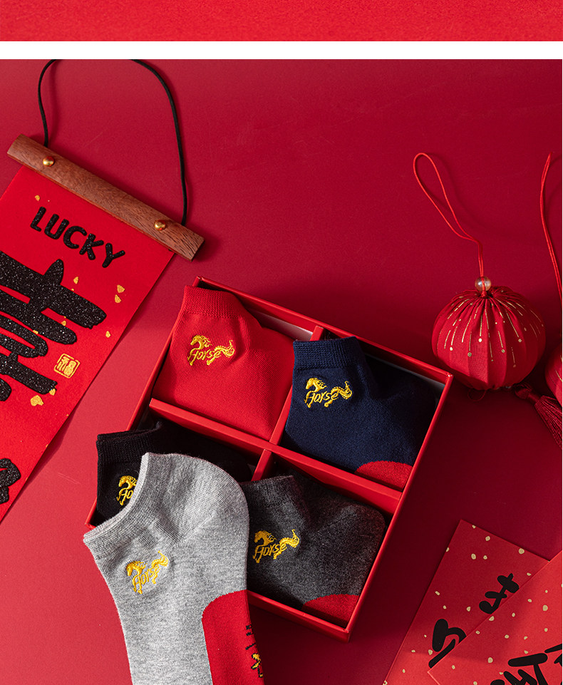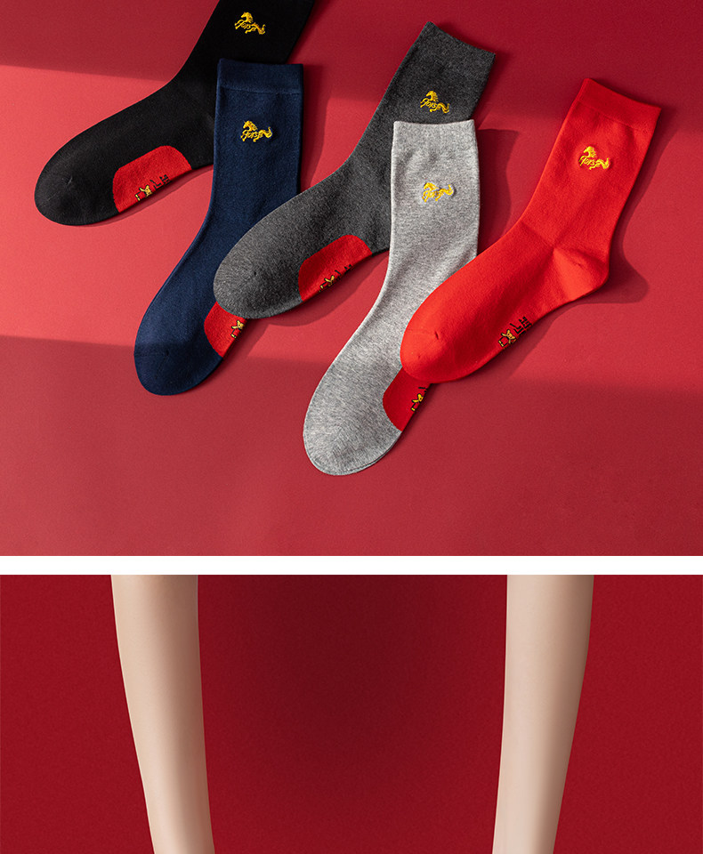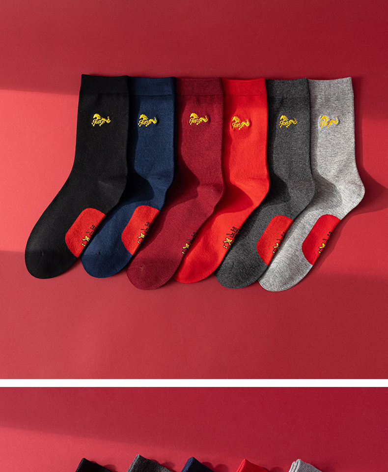 Year of the Horse, Zodiac Year, Men's Red Socks, Pure Cotton, Women's Bright Red Mid-Calf Socks, Autumn and Winter Couple's All-Cotton Short Socks, Gift