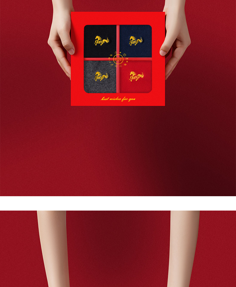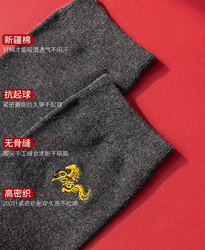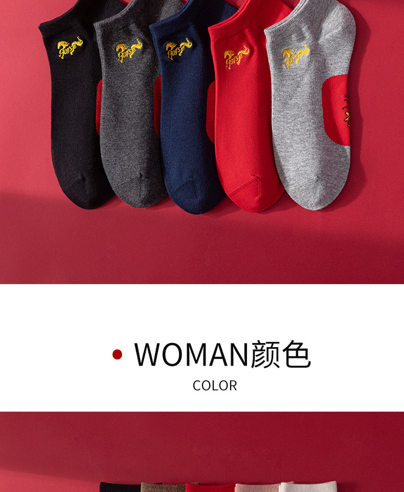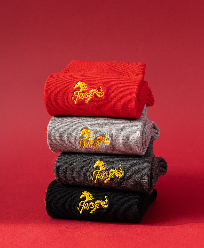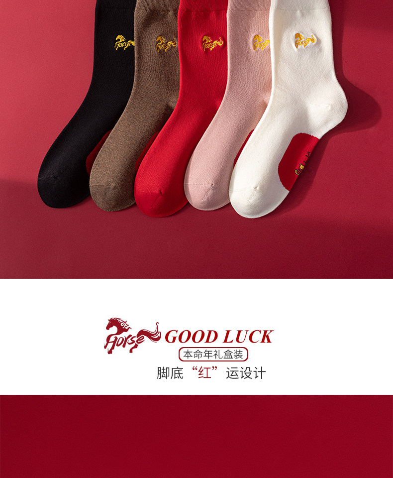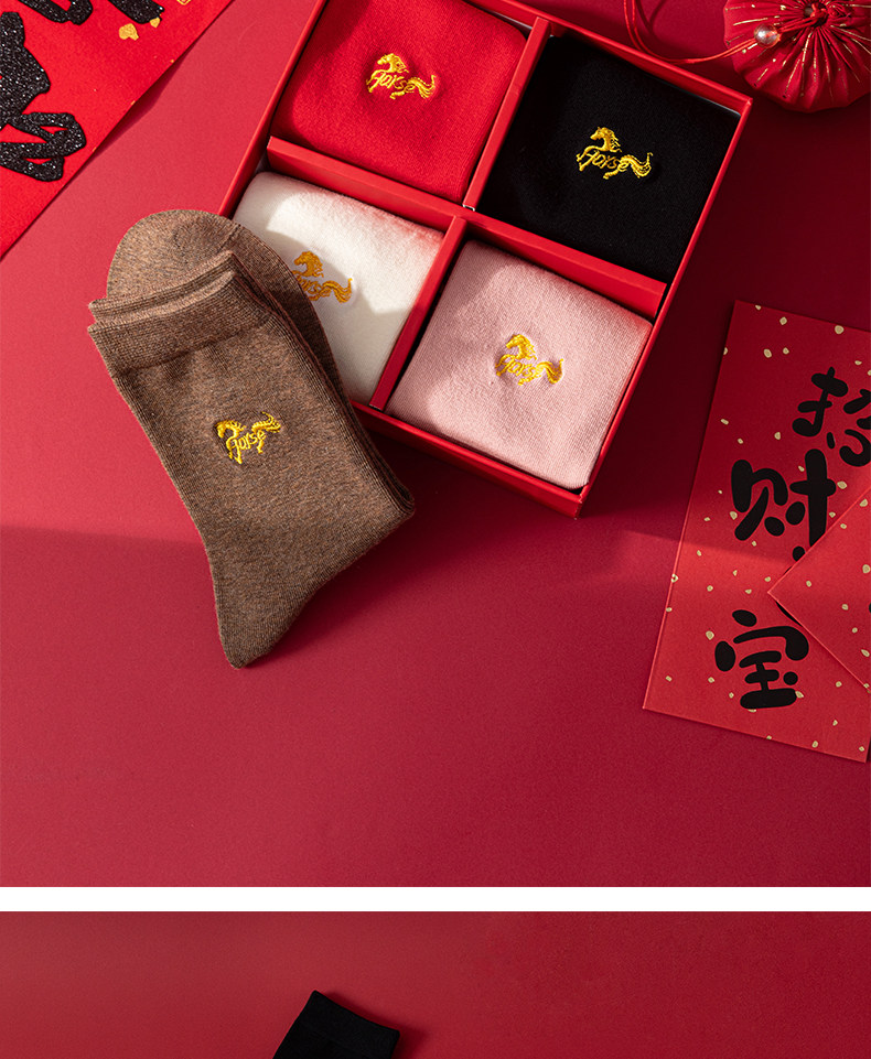 Year of the Horse, Zodiac Year, Men's Red Socks, Pure Cotton, Women's Bright Red Mid-Calf Socks, Autumn and Winter Couple's All-Cotton Short Socks, Gift
