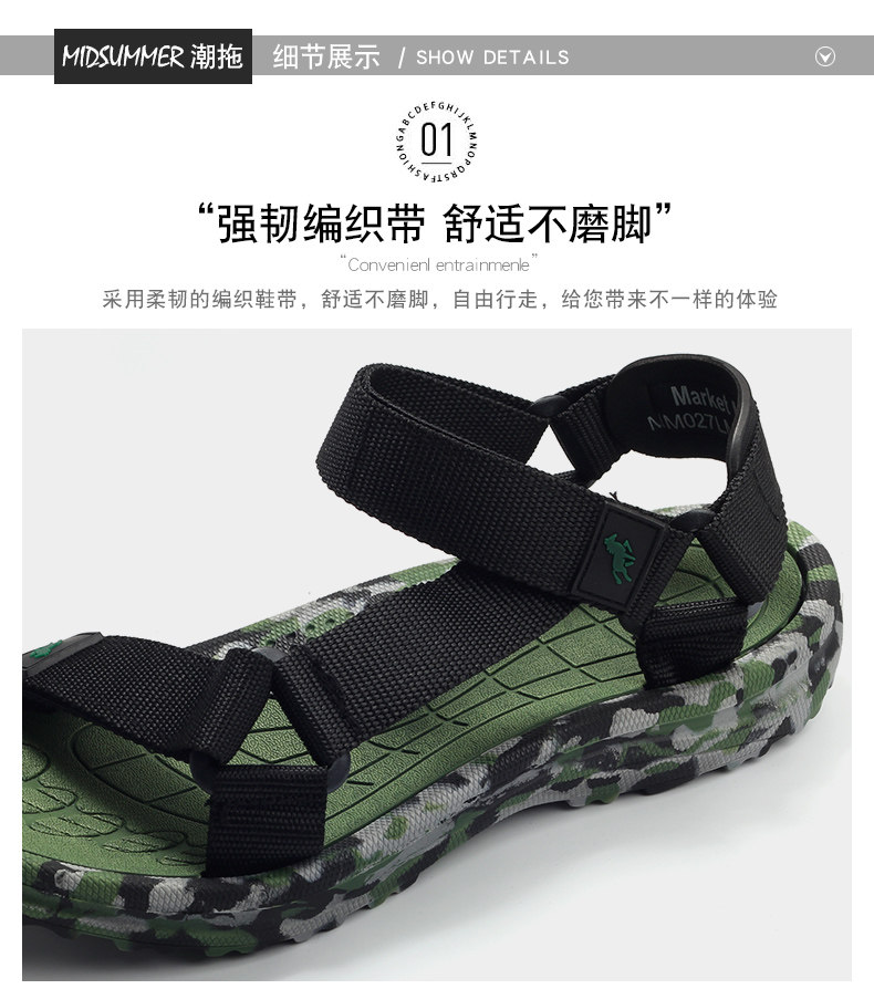 Vietnamese Men's Sandals, Dual-Purpose Slippers for Driving, Non-Slip, Waterproof, Casual Outdoor Camouflage Sports Beach Shoes, Trendy