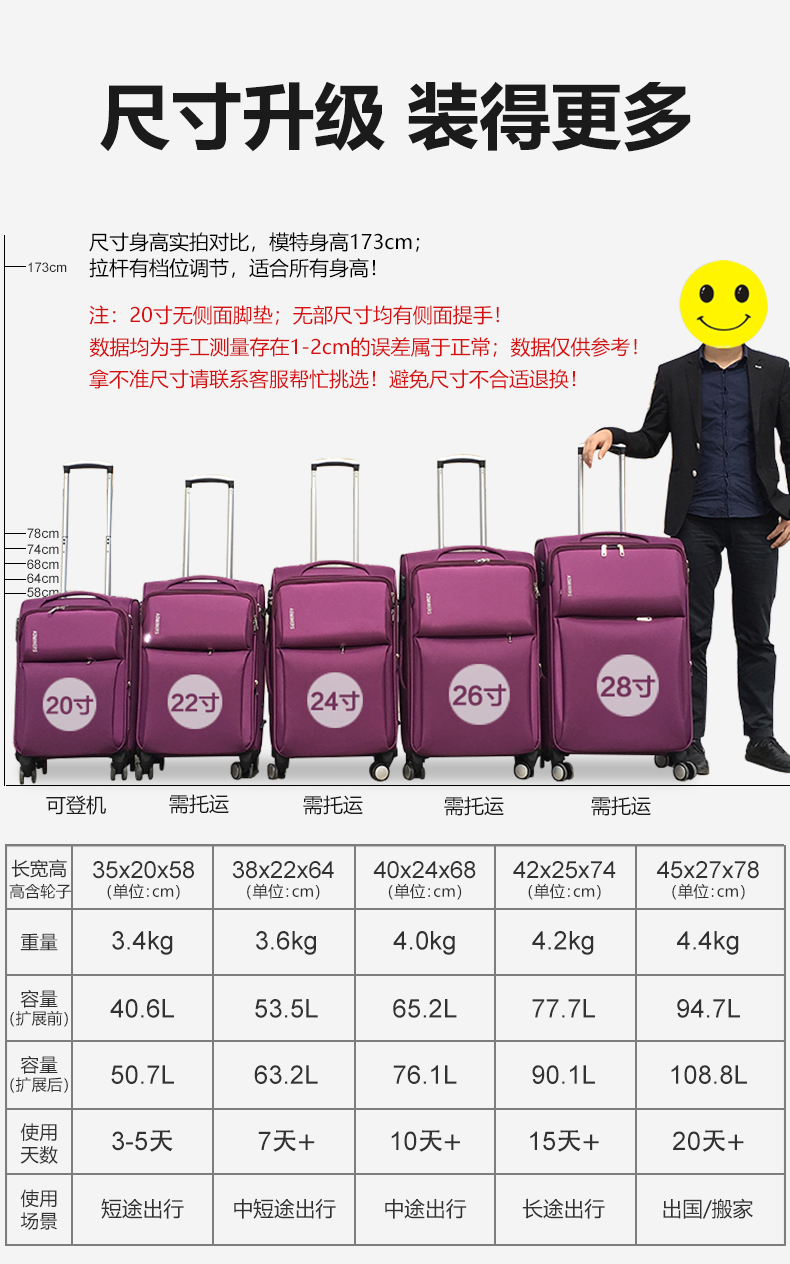 Luggage Suitcase Canvas Oxford Trolley Case 24 28 20inch Password Lock Carry-On Suitcase for Men and Women Travel Suitcase with Universal Wheels