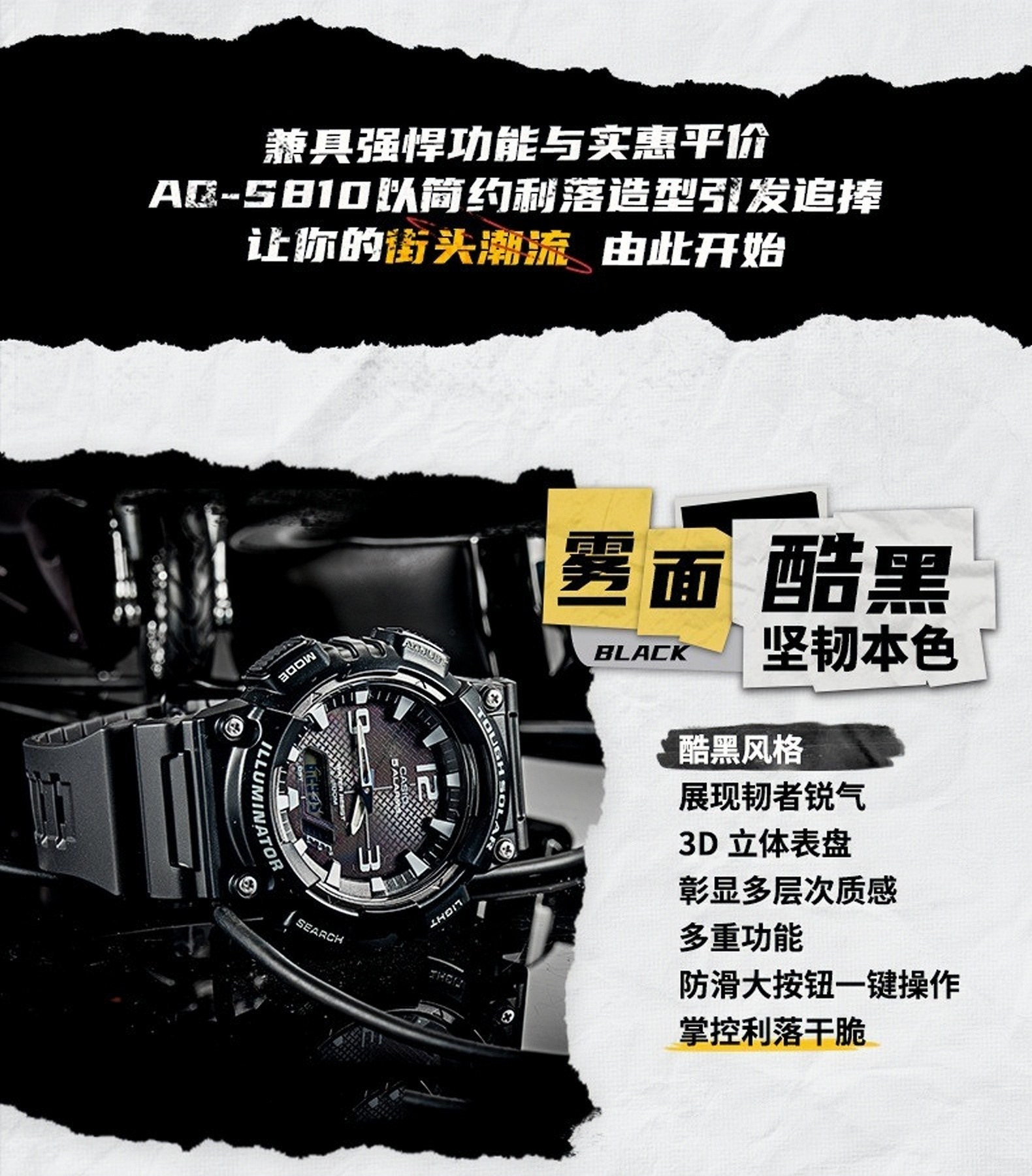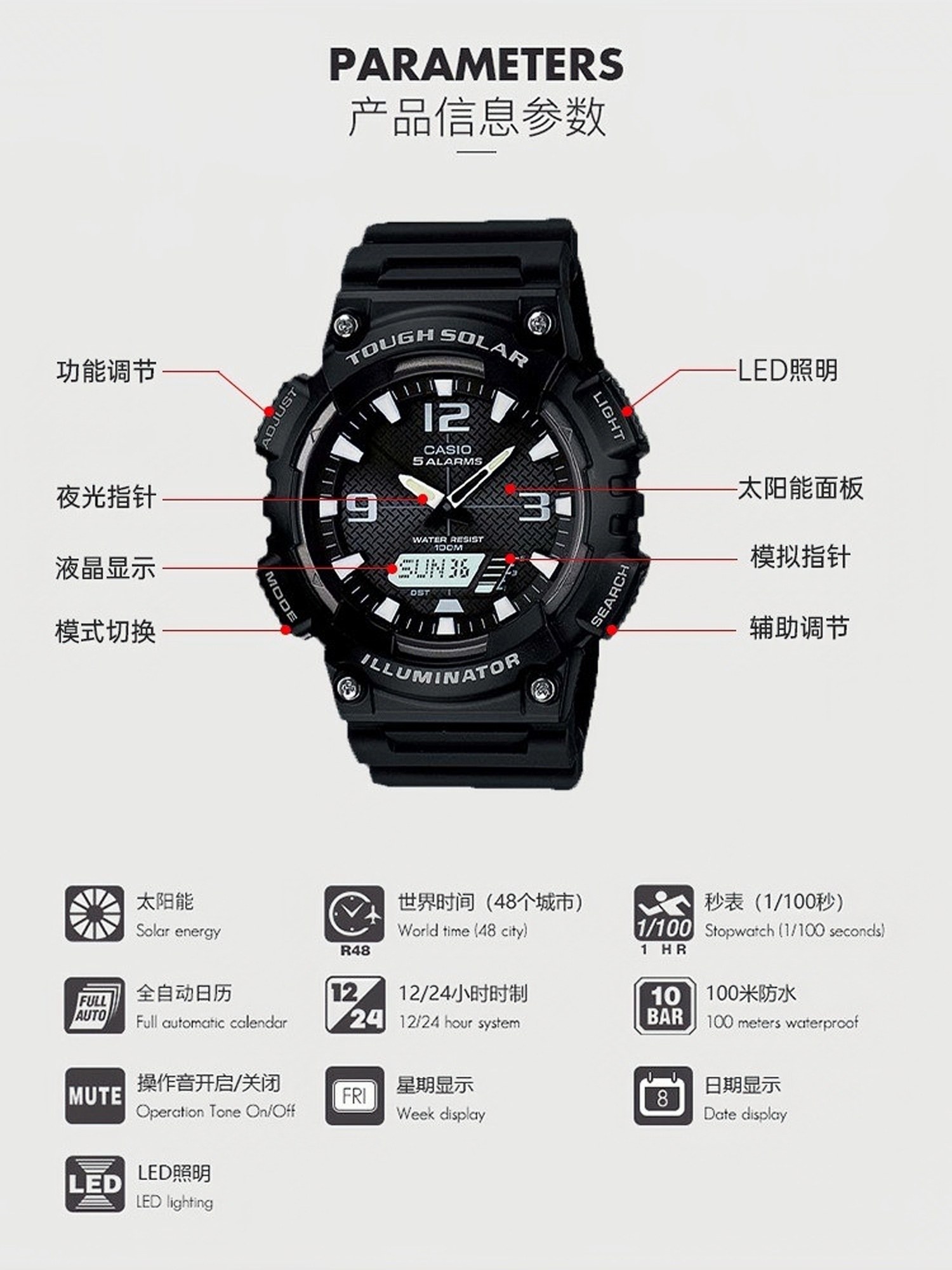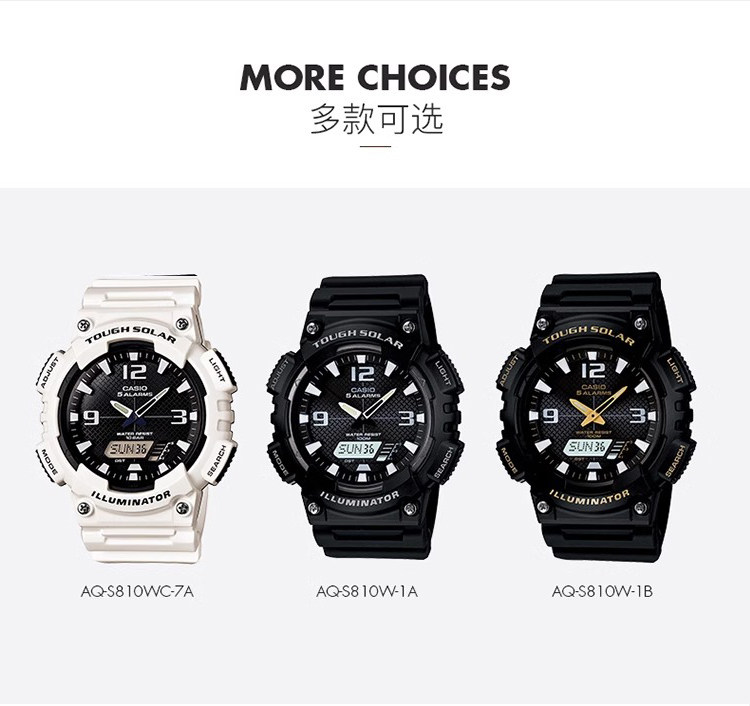 New Year's Gift Casio Casio Junior High School Student Watch Male Student Youth Aq-S810 Solar Digital Watch