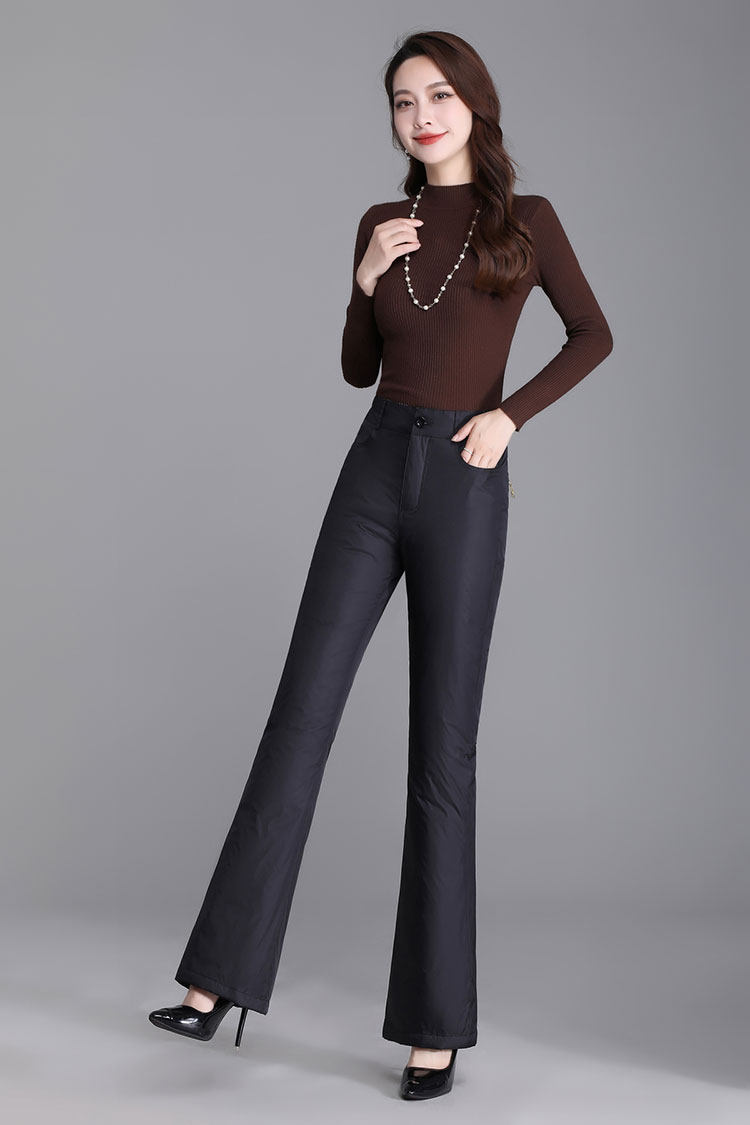 New Style down Pants for Women, High-Waisted, Thick, Plus-Size Duck down Pants, Slimming Flared Pants, Winter Micro-Flared Cotton Pants