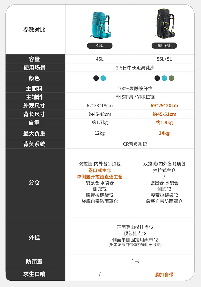 【Yunjing】【Celebrity Style】Nuo Outdoor Mountaineering Backpack Professional Hiking Heavy-Duty Large Capacity 55