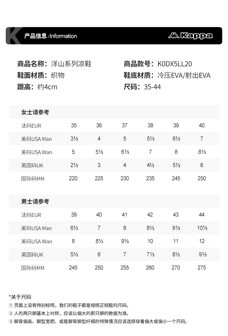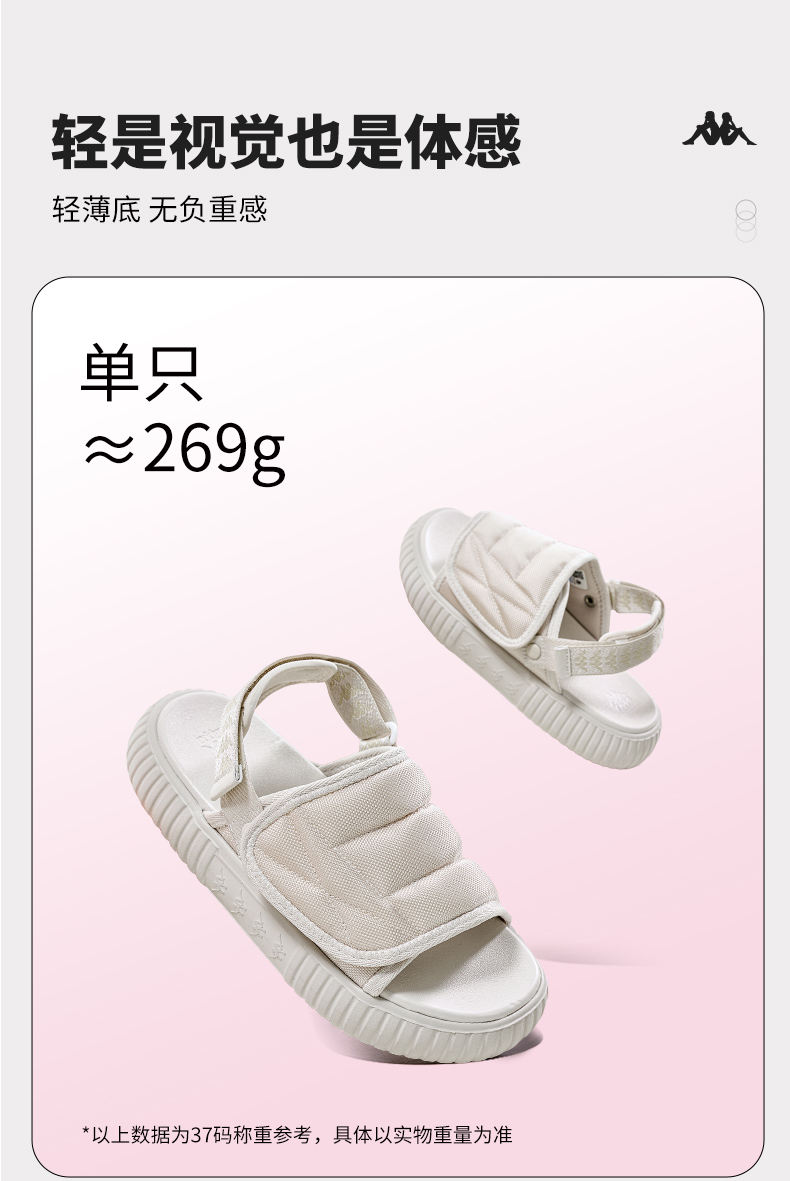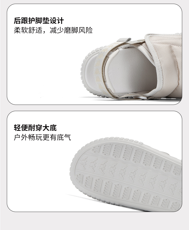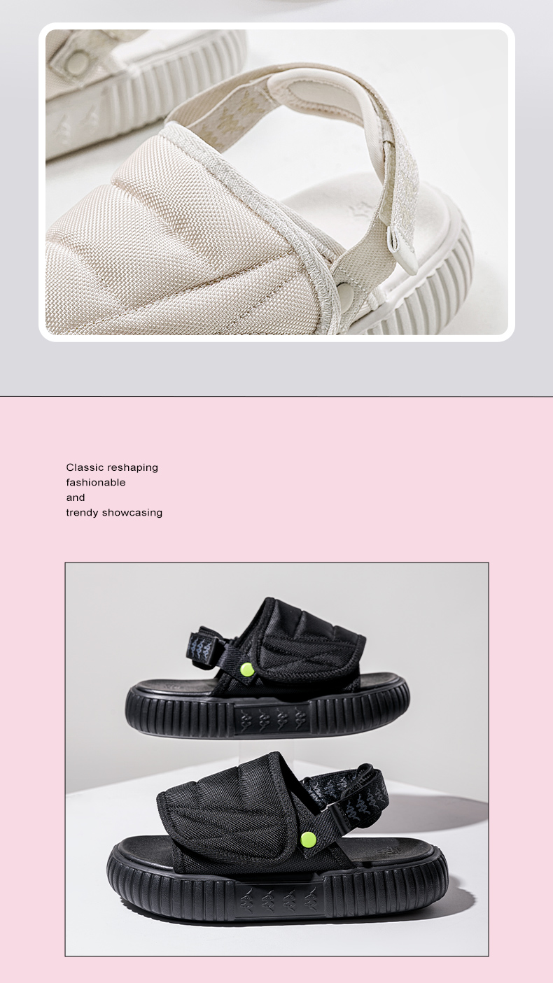 Kappa Women's Shoes Sandals Women's 2025 New Arrival Summer Outwear Beach Shoes Couple Velcro Thick Sole Half Slippers