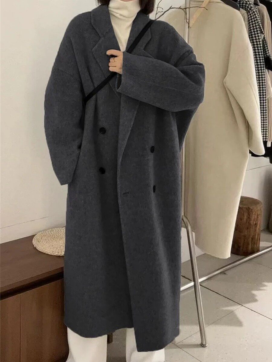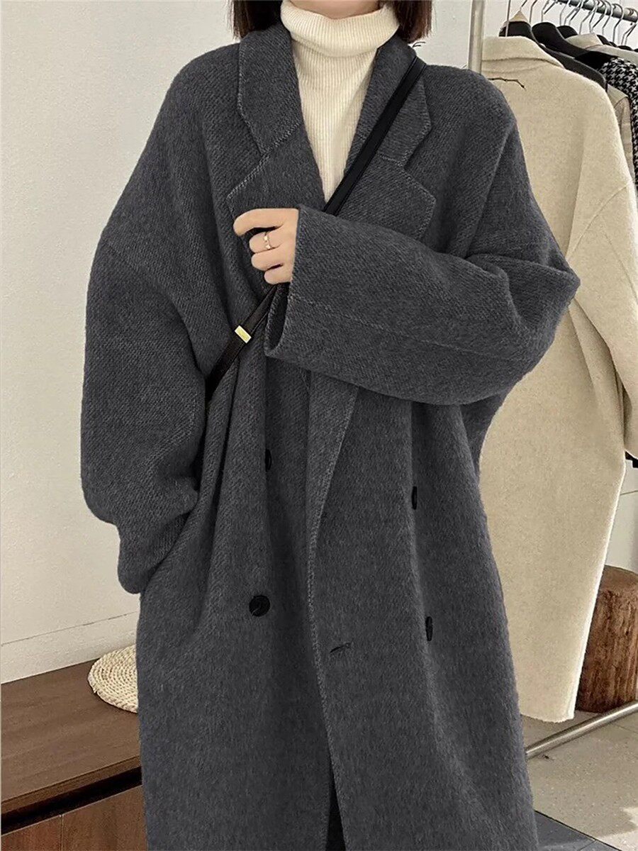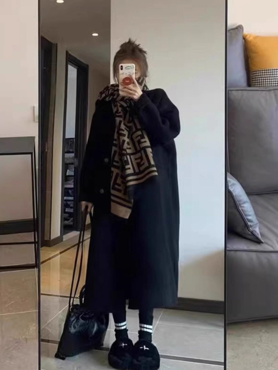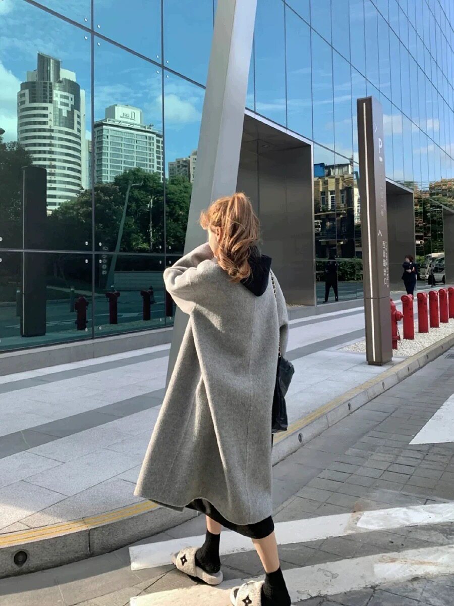 High-End Black and Gray Woolen Coat for Women 2024 Winter Clothing New arrival thickened Loose down Lining Woolen Coat Outwear
