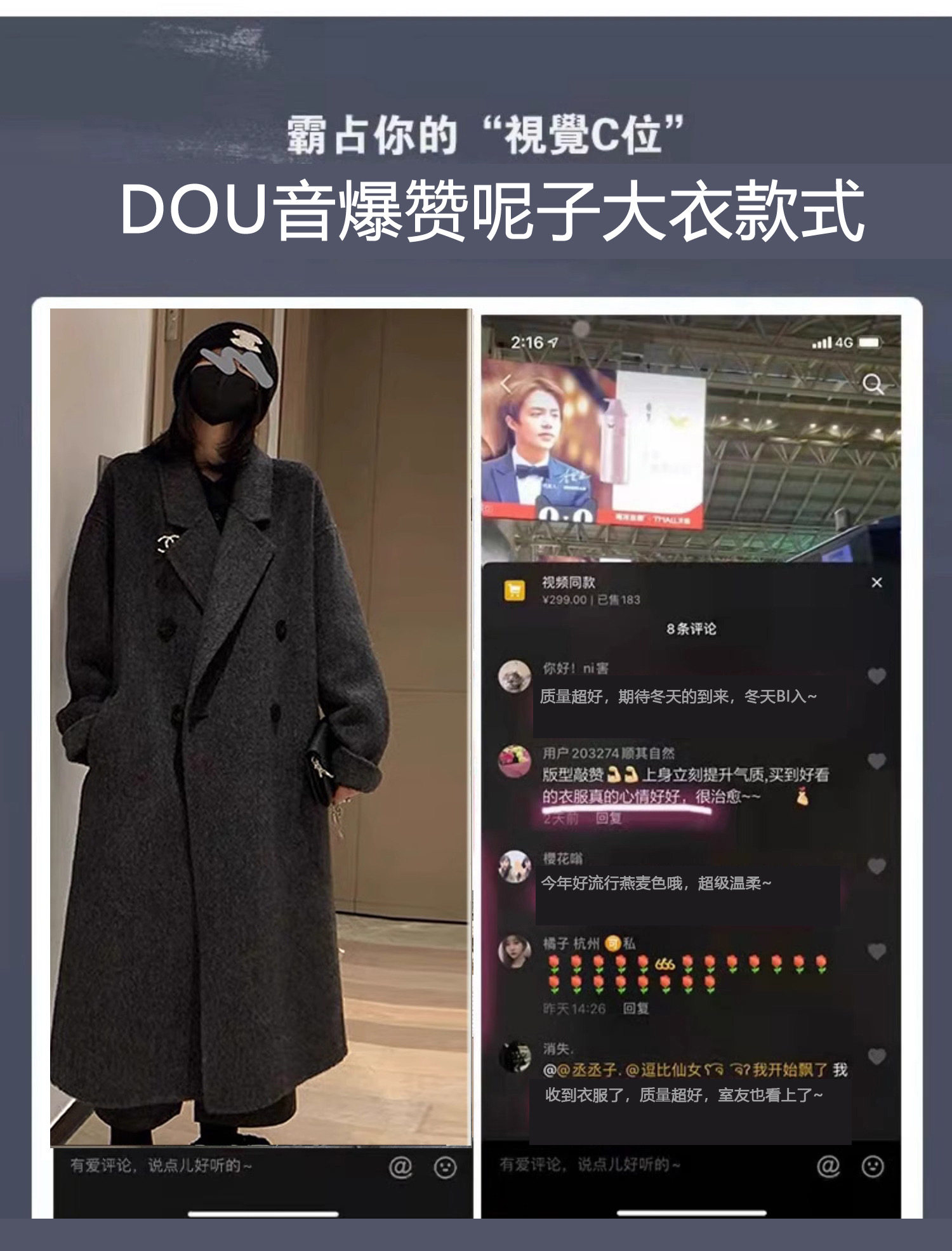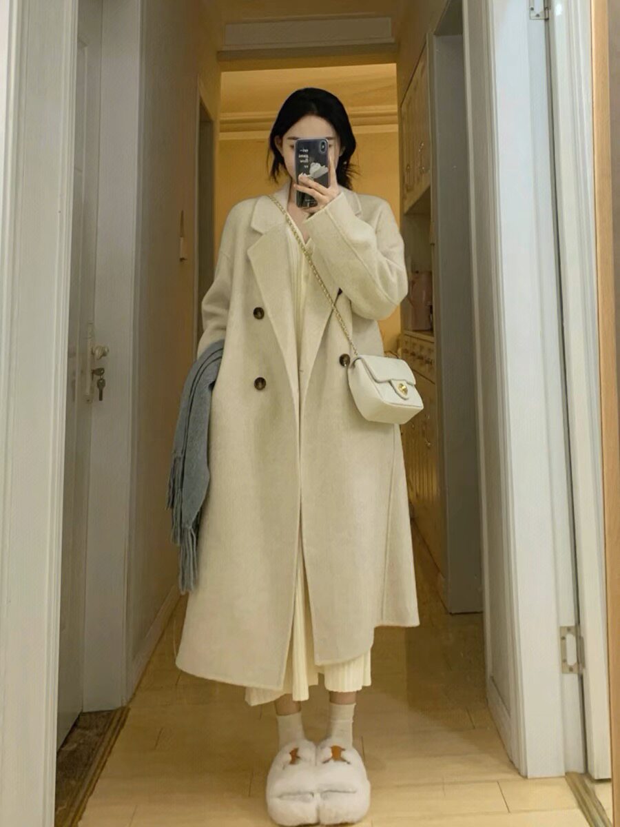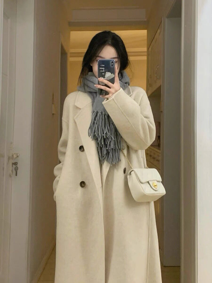 High-End Black and Gray Woolen Coat for Women 2024 Winter Clothing New arrival thickened Loose down Lining Woolen Coat Outwear