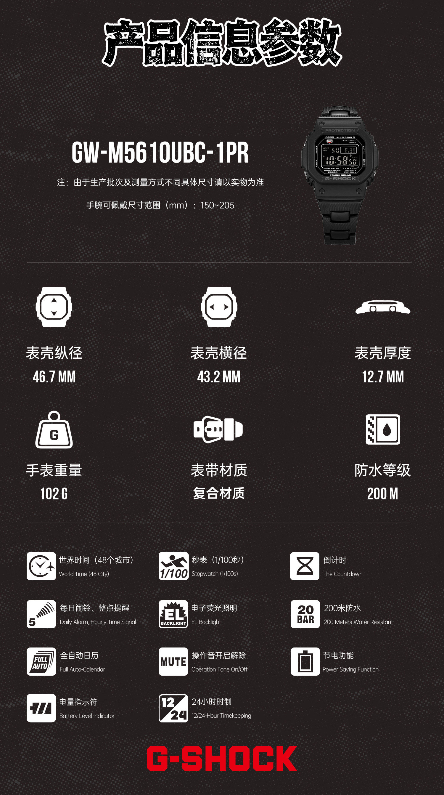 Casio Official Flagship Store Gw-M5610Ubc Solar-Powered Small Square Sports Watch for Men G-Shock