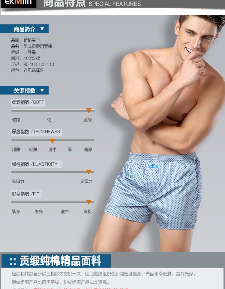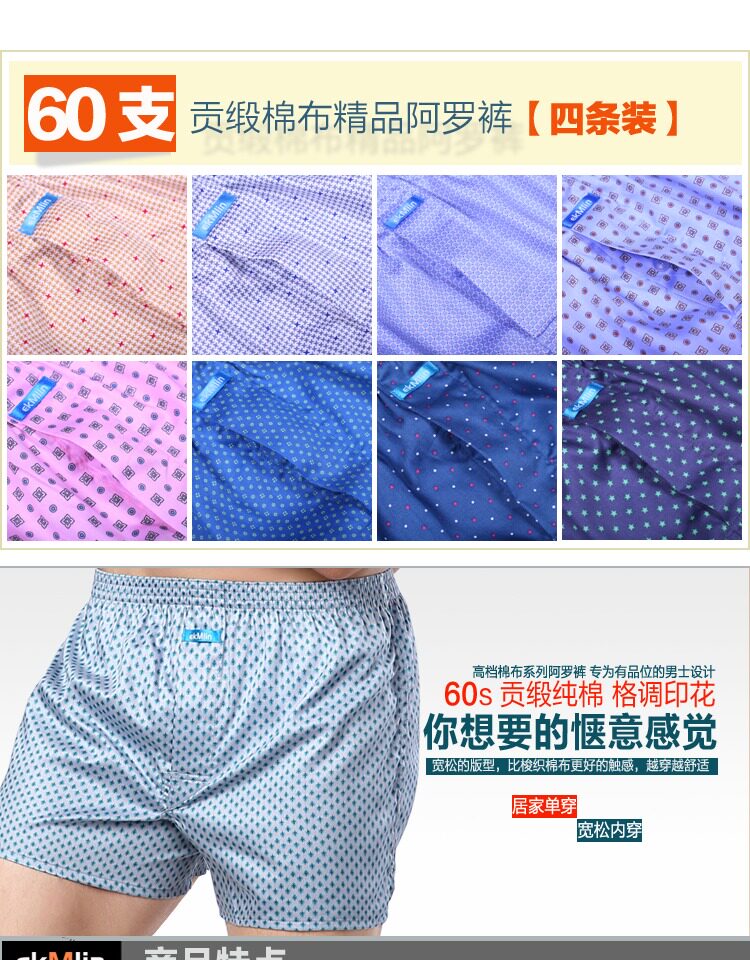 【Pack of Four】Igmaning 60-Count Satin Pure Cotton Boxer Briefs Men's Loose Fit Underwear