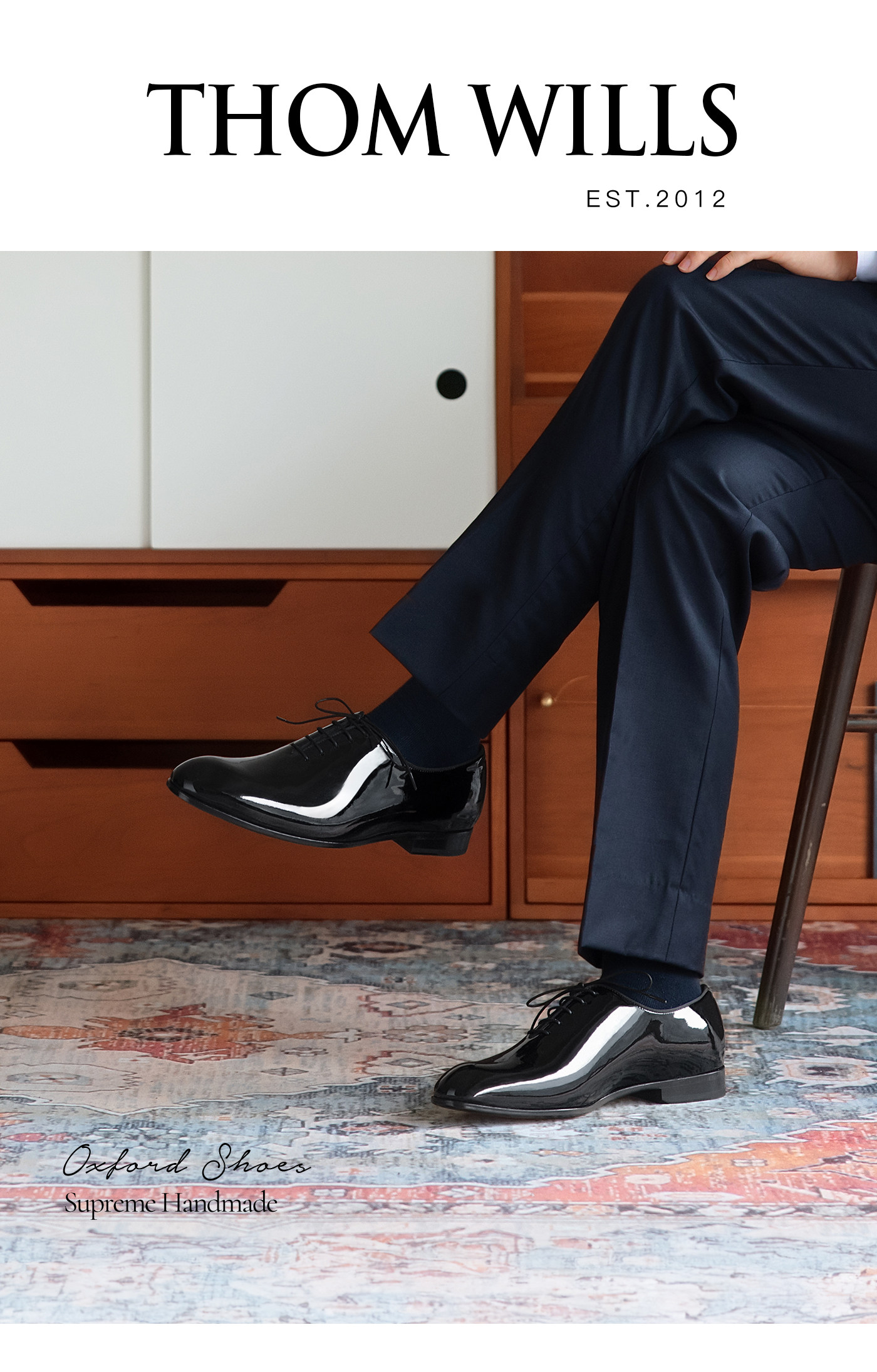 Thomwills Handmade Genuine Leather Men's Shoes Business Formal Leather Shoes Men's British Patent Leather One-Piece Oxford Shoes