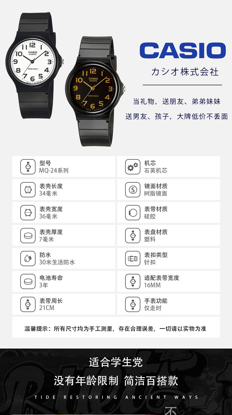 Casio Watches for Men and Women, Casio Trendy Black Watch, Same Style as Joe Mi, Retro Japanese Student Couple Children's Watch
