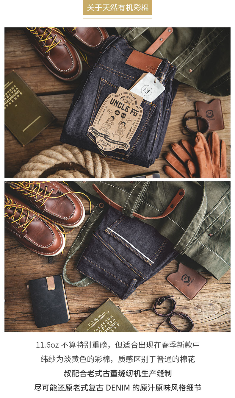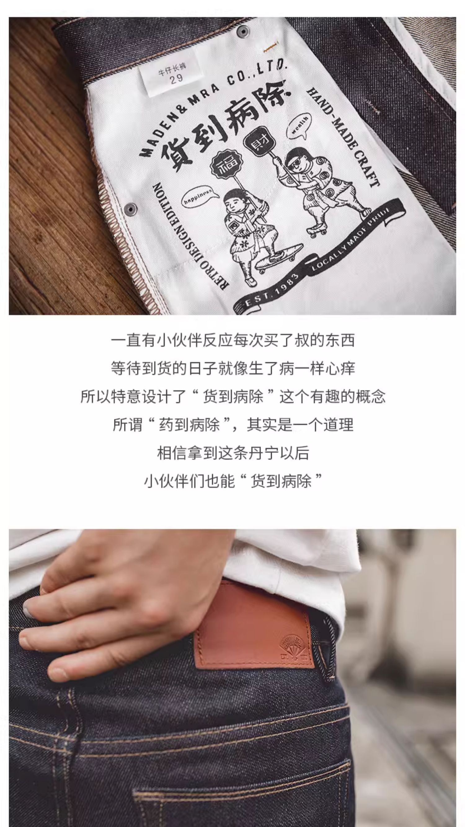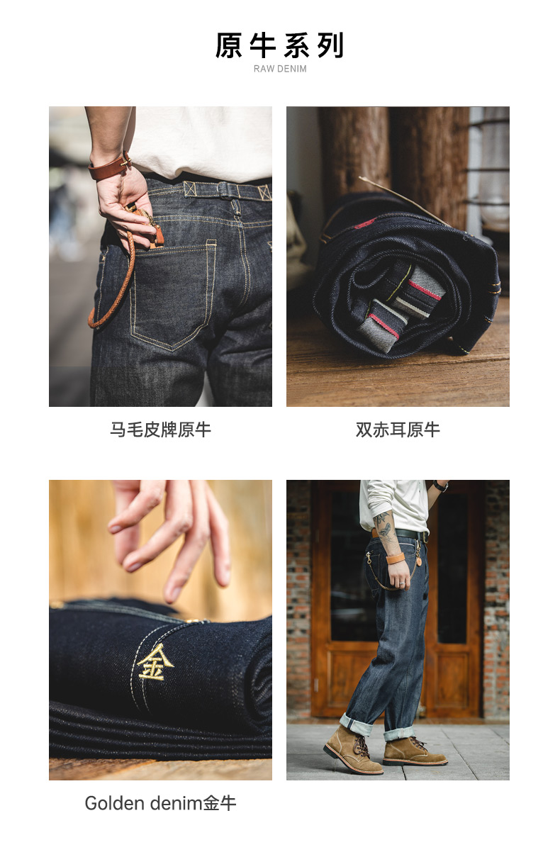 Madden Workwear American Retro Raw Selvedge Raw Denim Jeans Amekaji Heavy Denim Straight-Leg Pants for Men