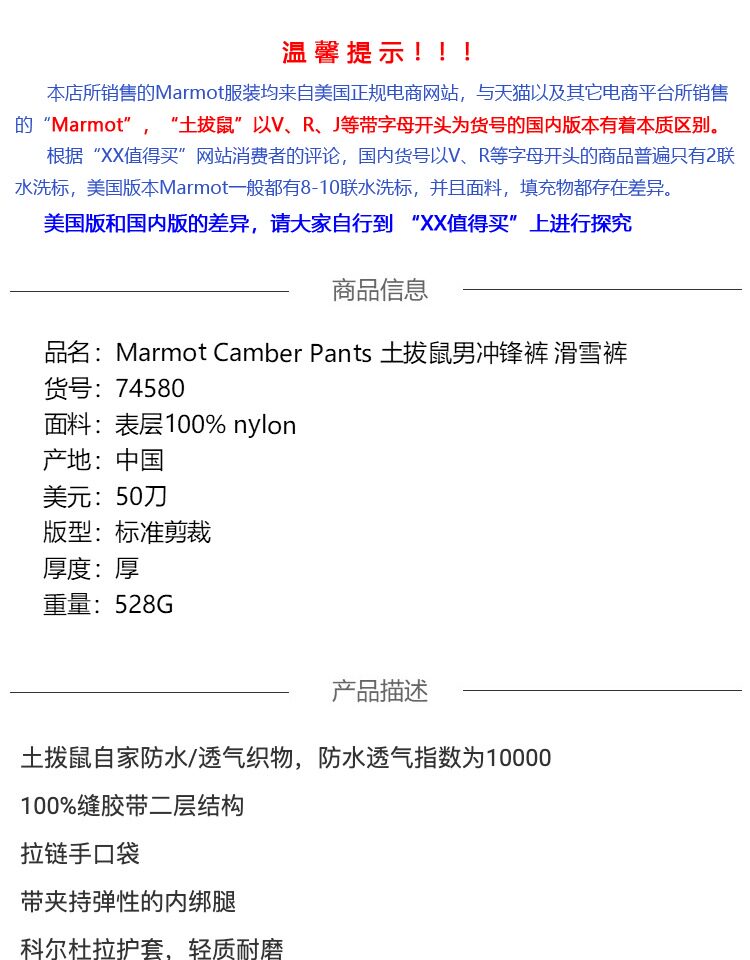 Clearance Price Marmot Camber Men's Outdoor Hiking Waterproof Ski Pants