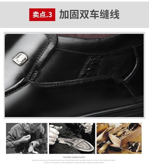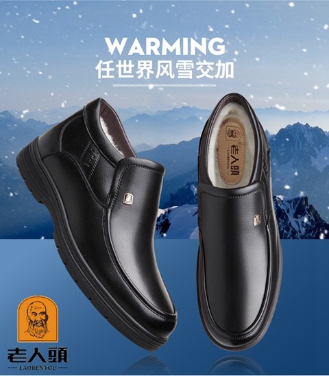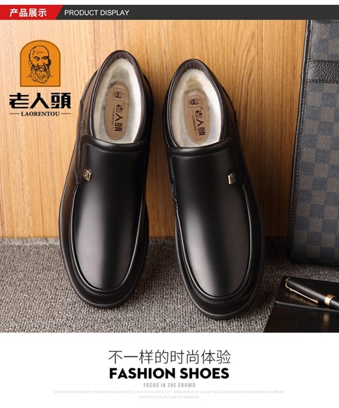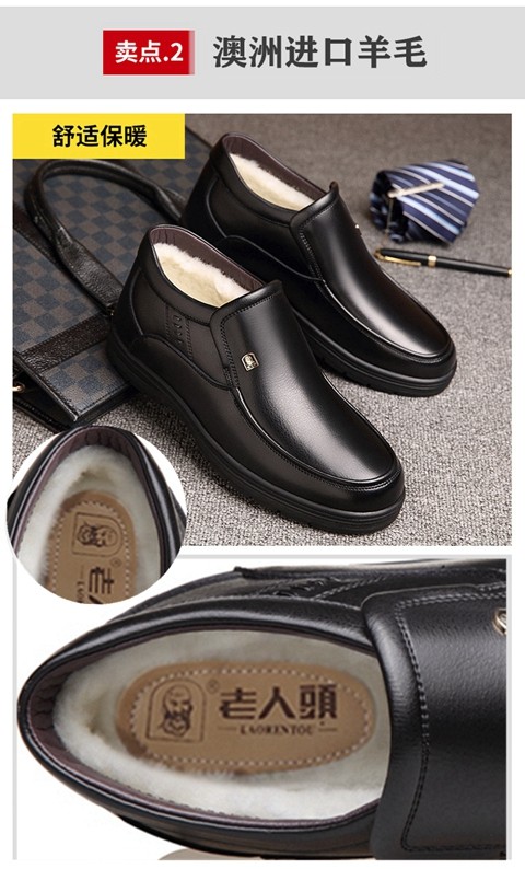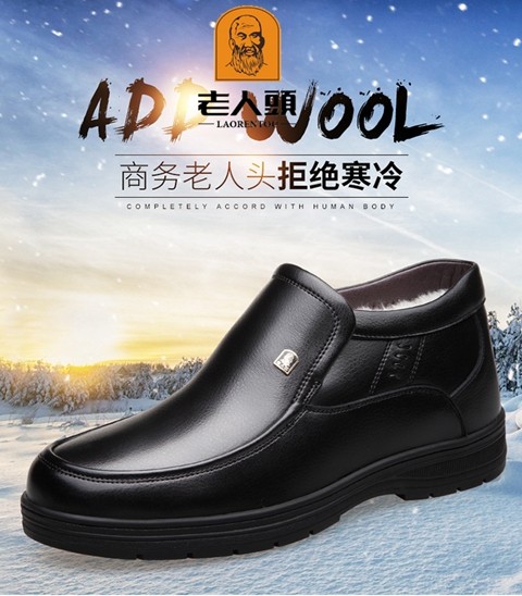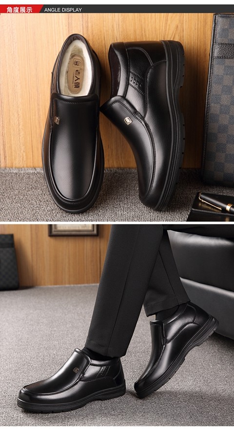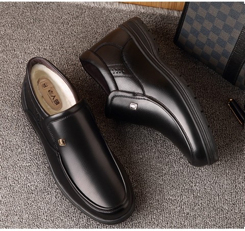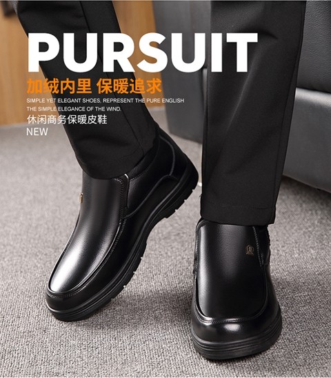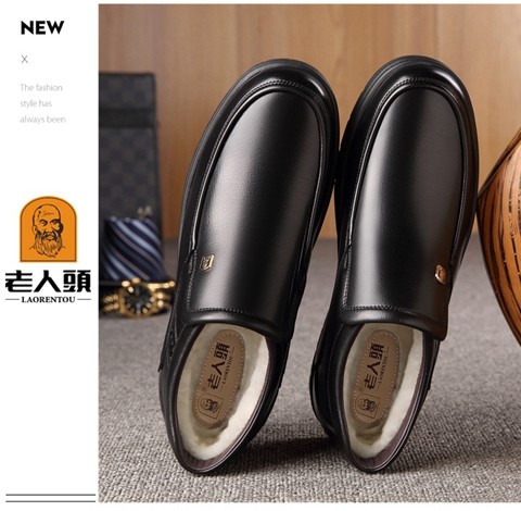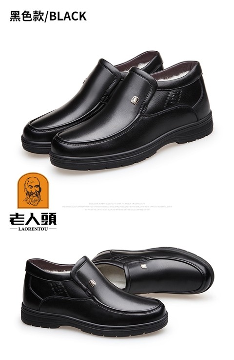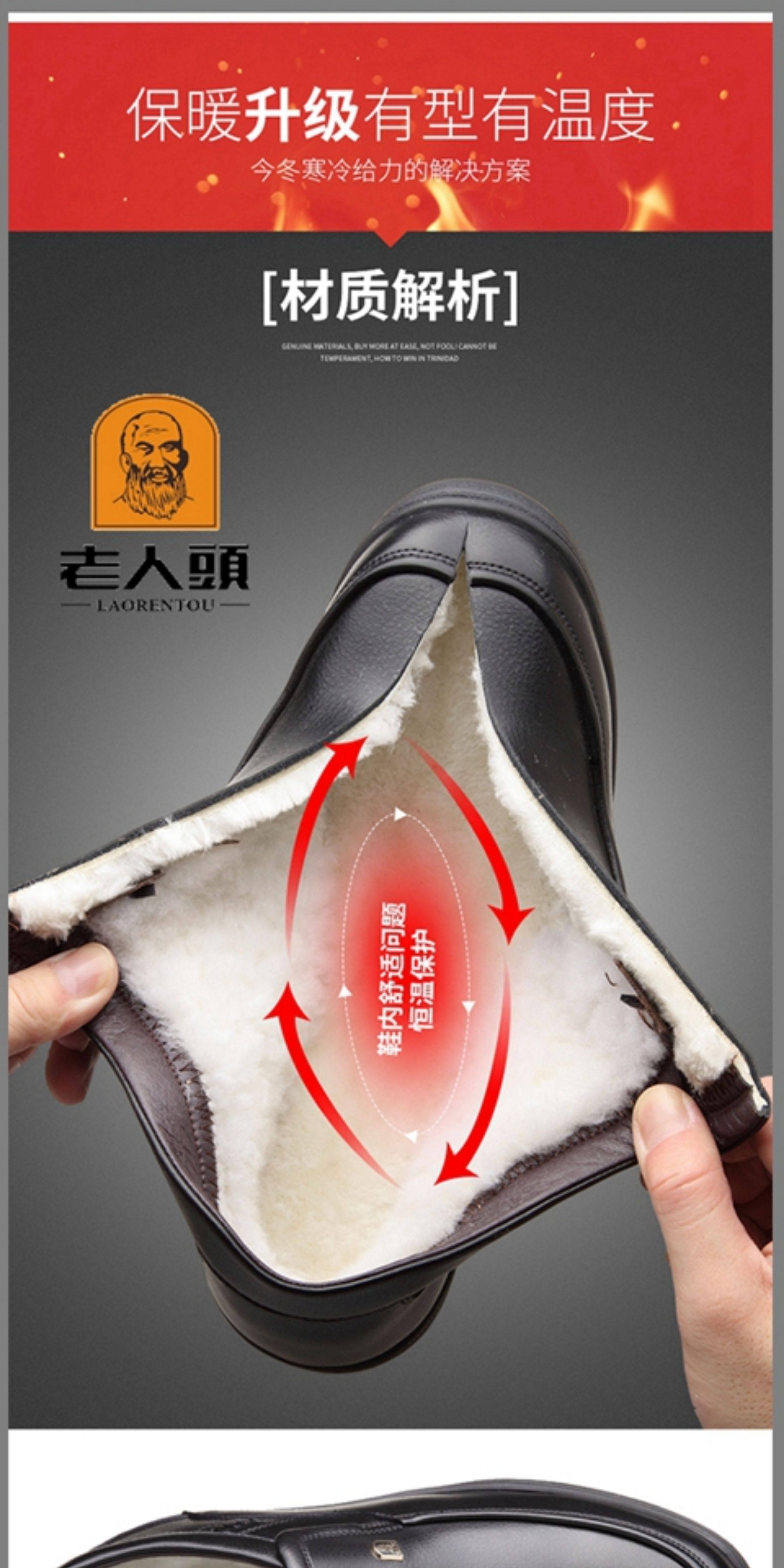 Elderly Men's Winter Warm Cotton Shoes, High-Top Leather and Fur Integrated Genuine Leather Shoes, Wool-Lined Shoes for Middle-Aged and Elderly Fathers, with Added Fleece