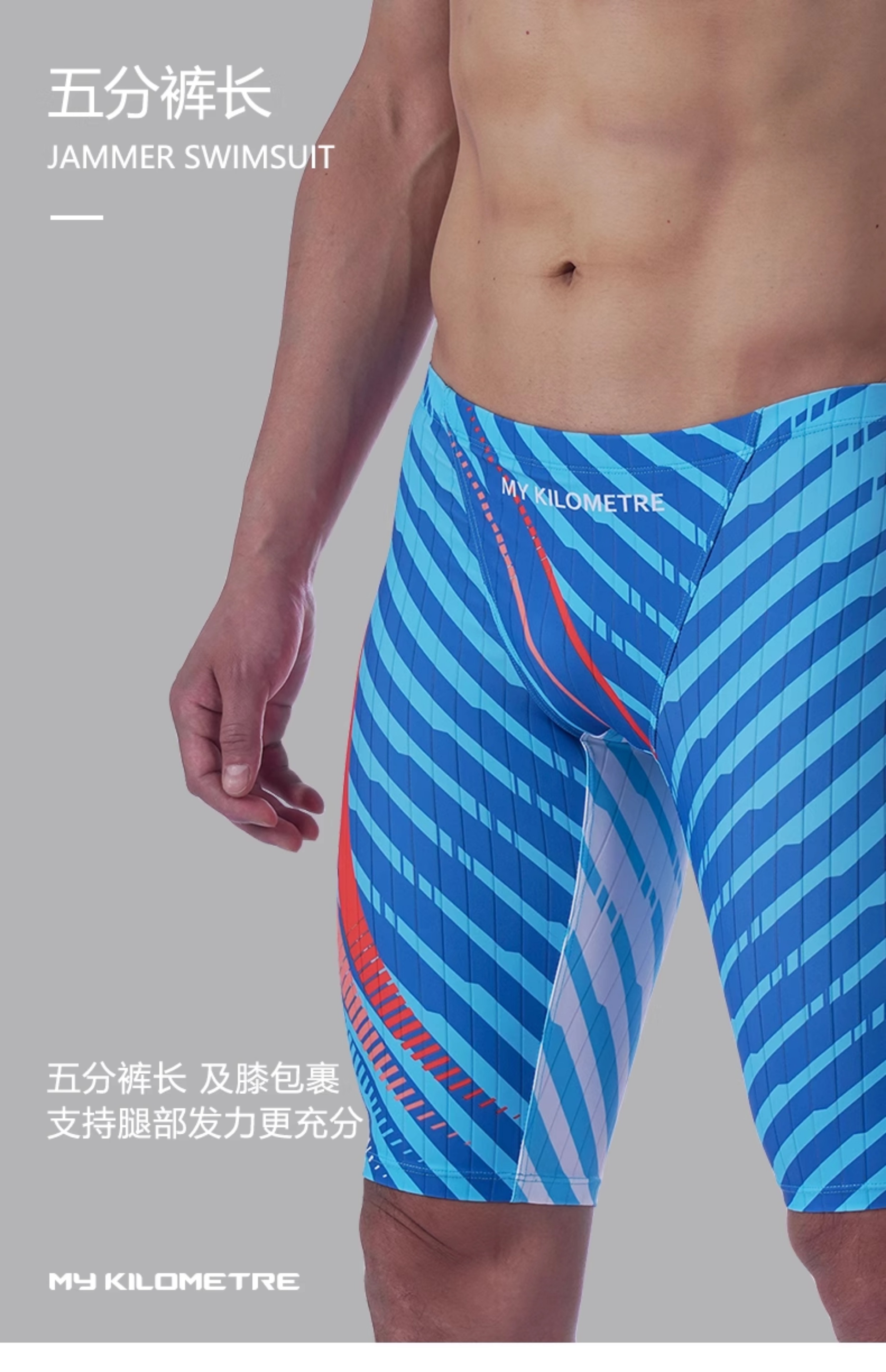 My Kilometre Dazz Professional Quick-Drying Five-Point Swim Trunks for Men, Long Training Racing Double Water Drainage