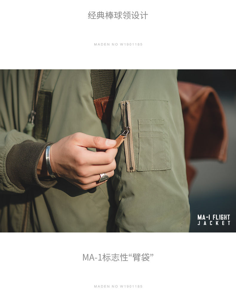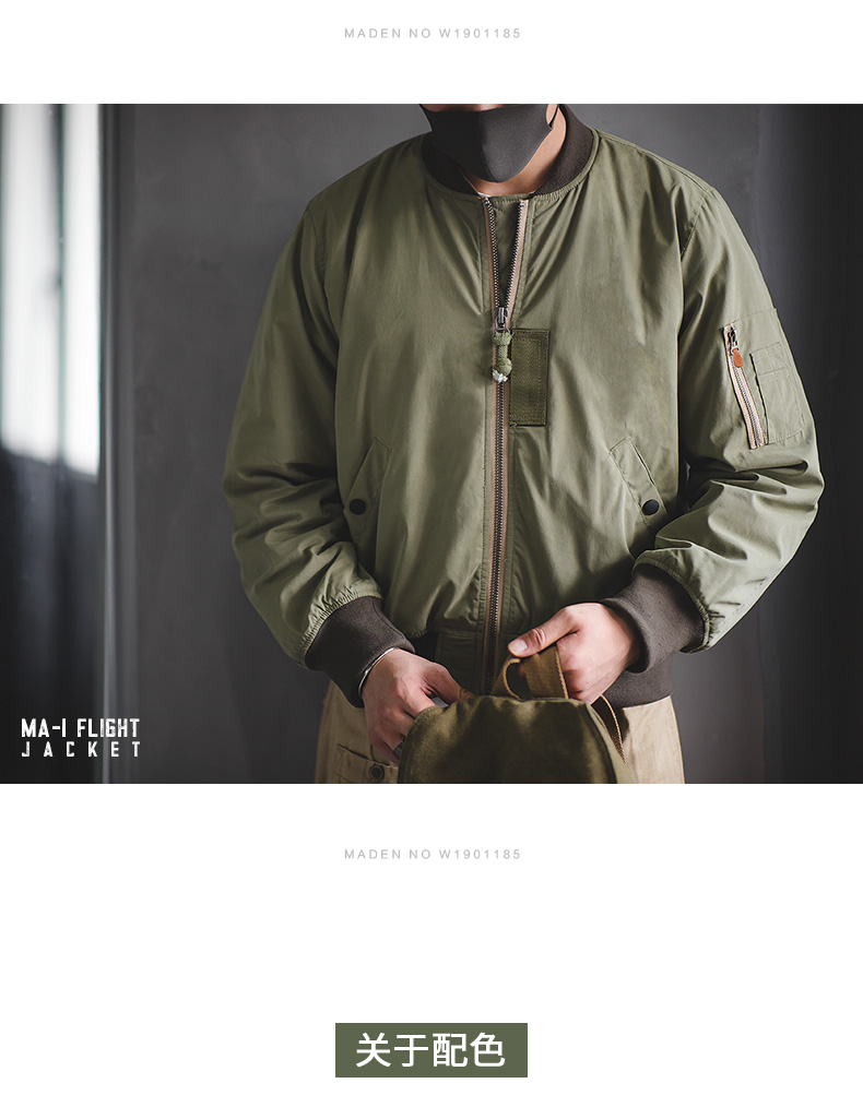 Madden Workwear American Style Ma1 Pilot Jacket Army Green Thickened Baseball Cotton Jacket Men's Winter