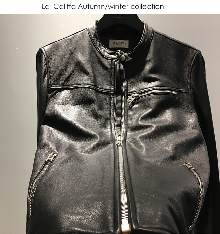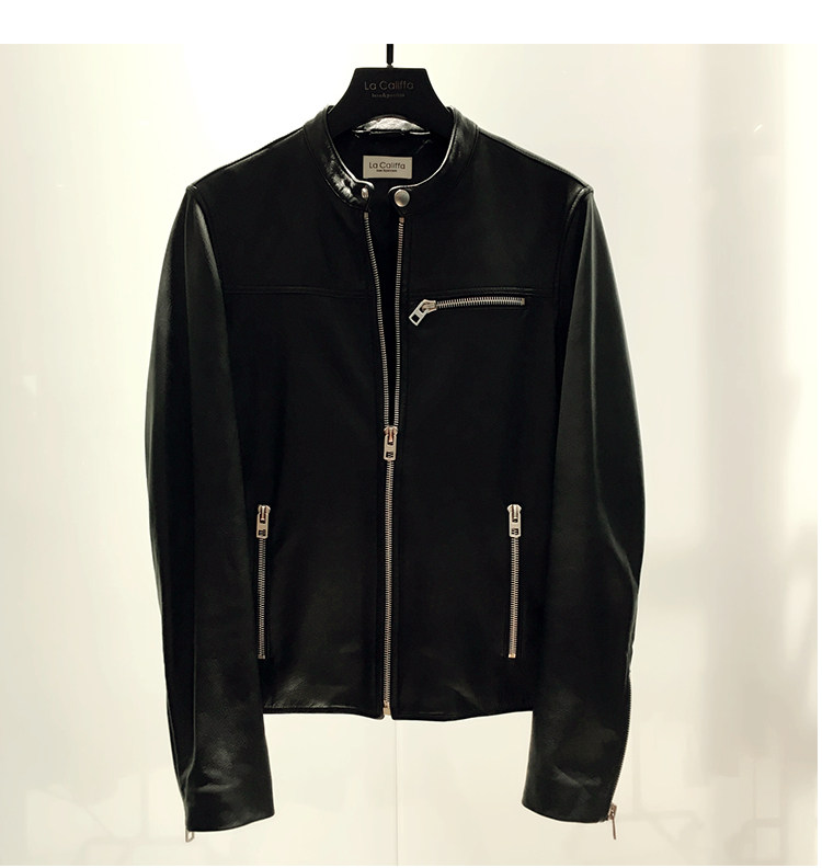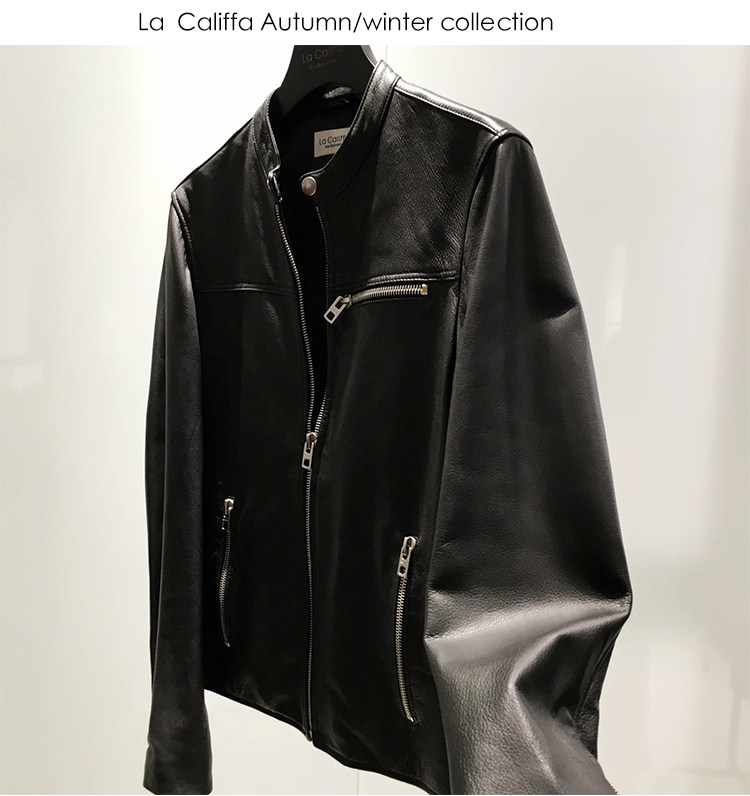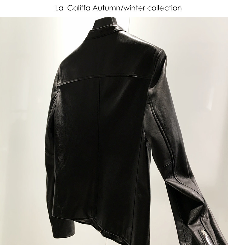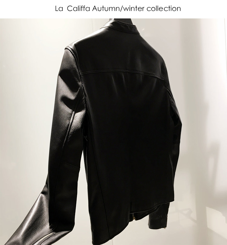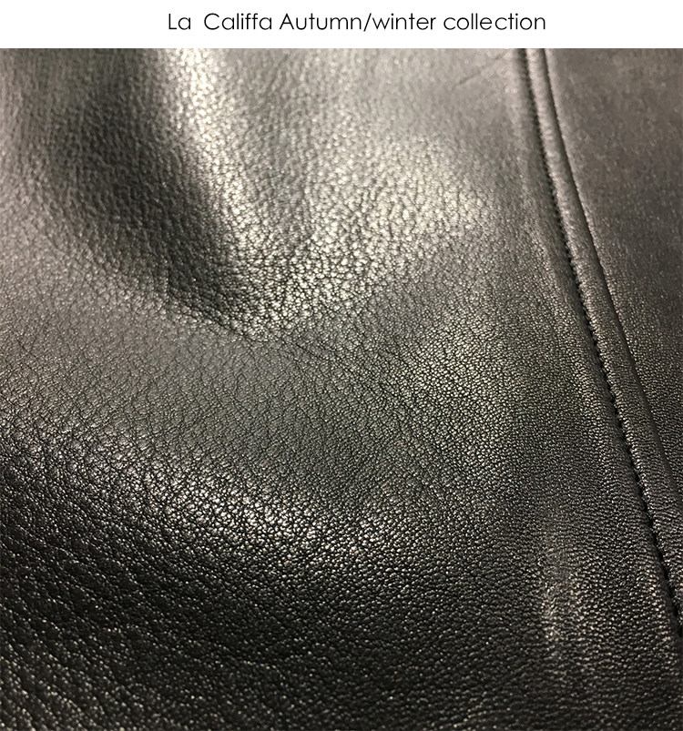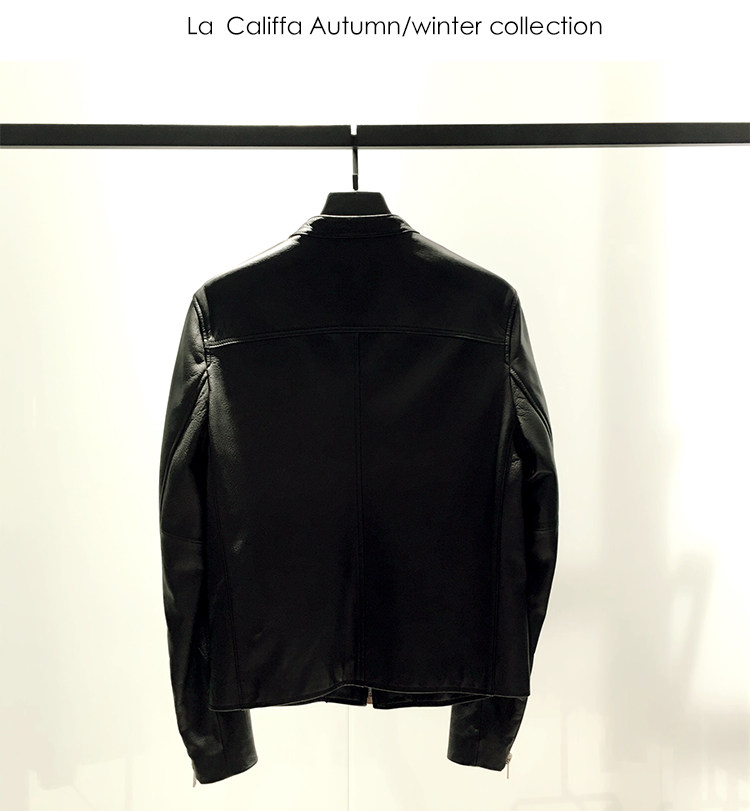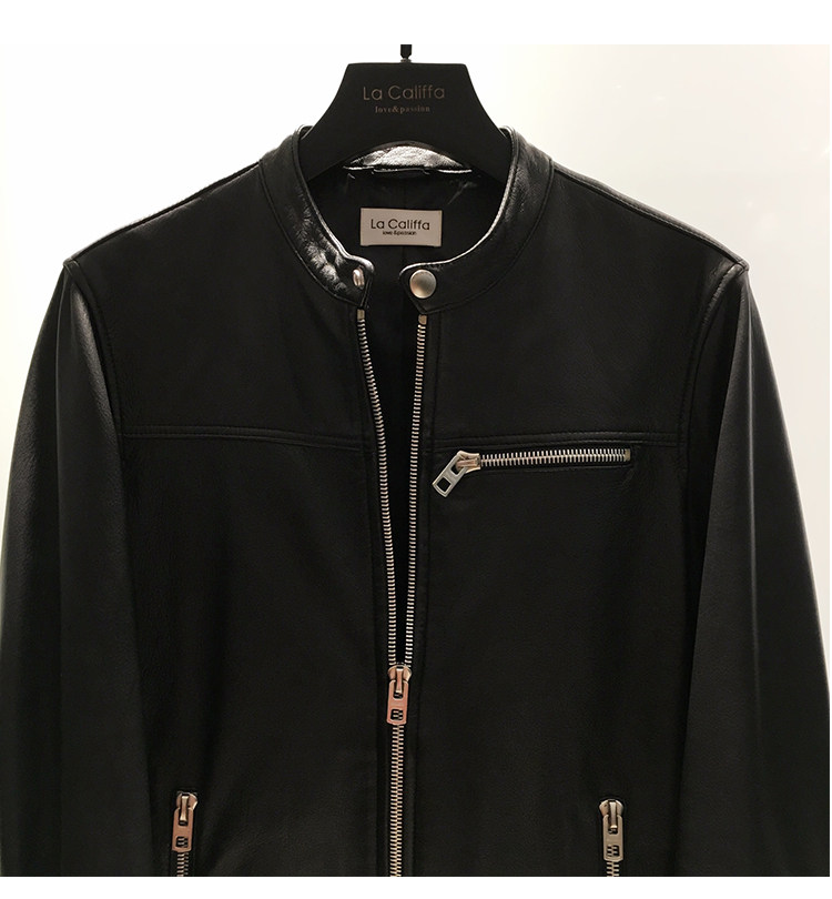 La Califfa Designer Italian Goatskin with a Calfskin Texture, Small Stand Collar, Genuine Leather Motorcycle Jacket