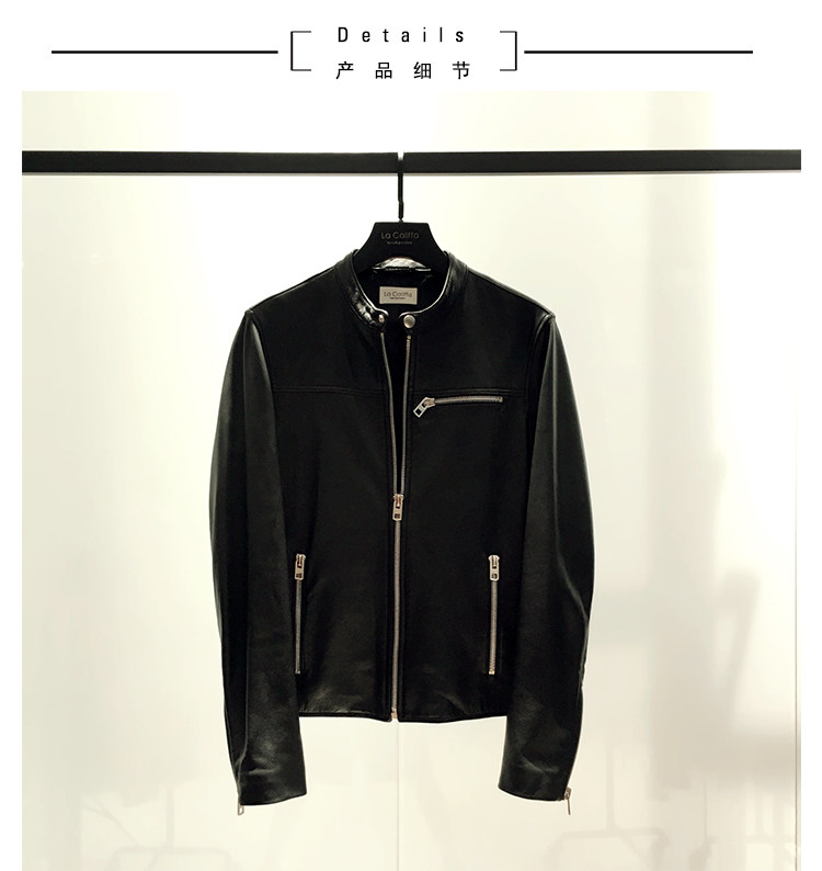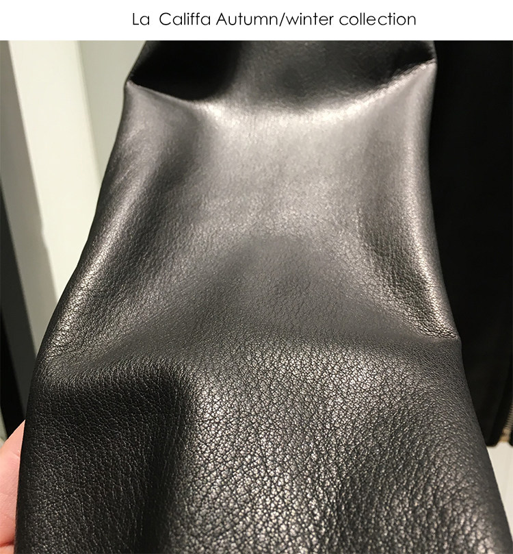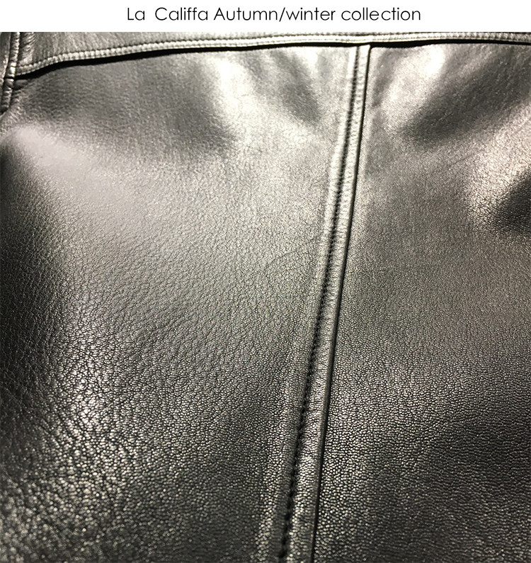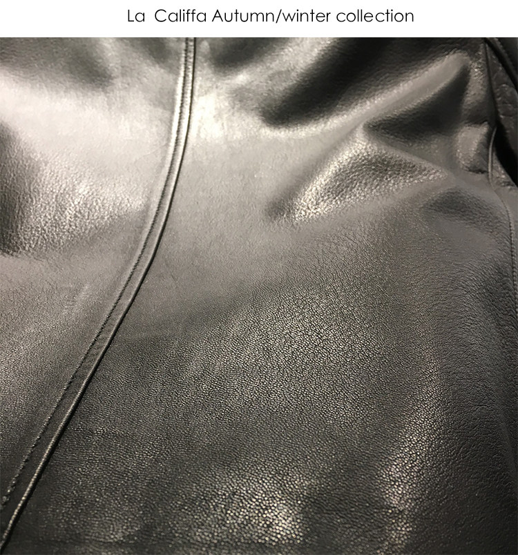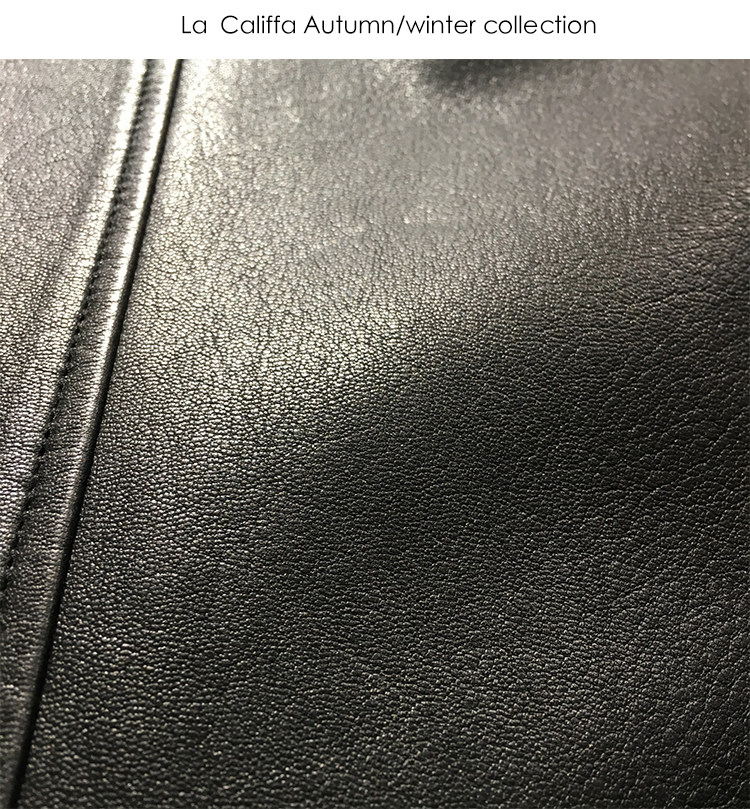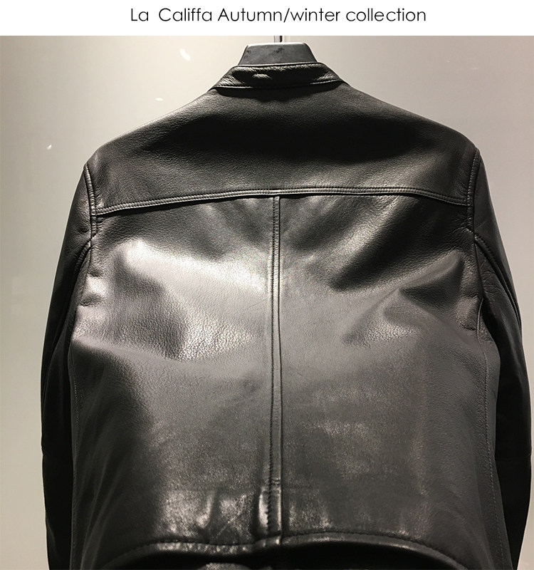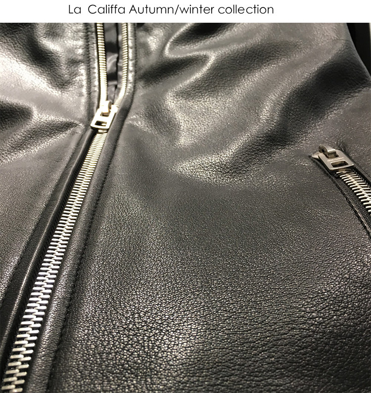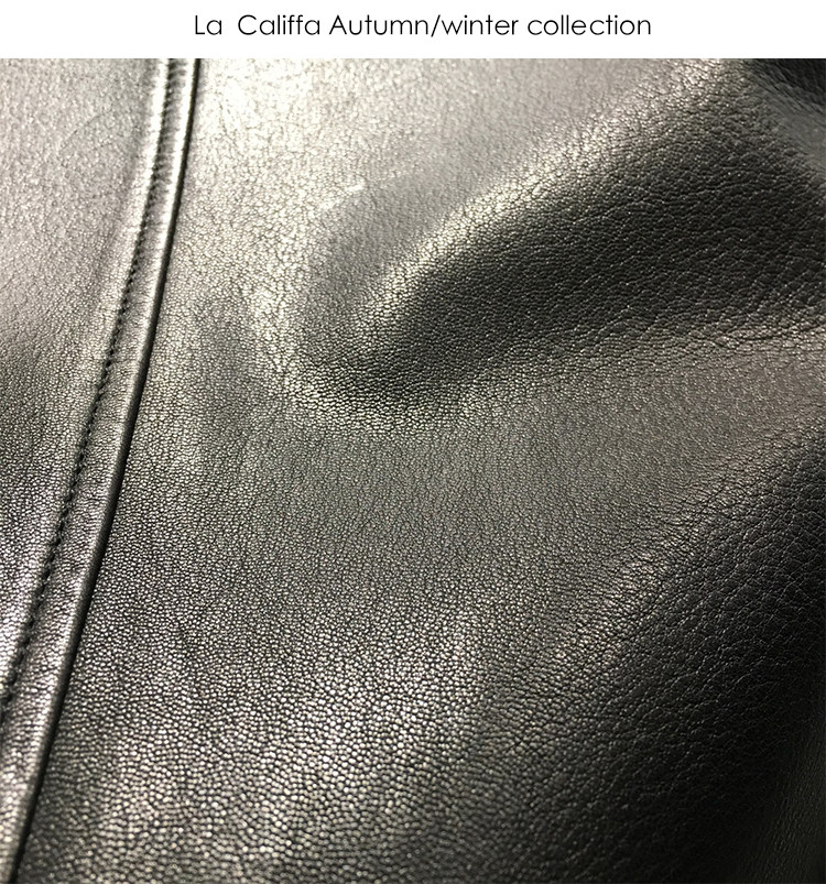 La Califfa Designer Italian Goatskin with a Calfskin Texture, Small Stand Collar, Genuine Leather Motorcycle Jacket