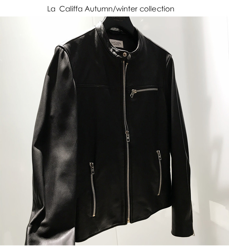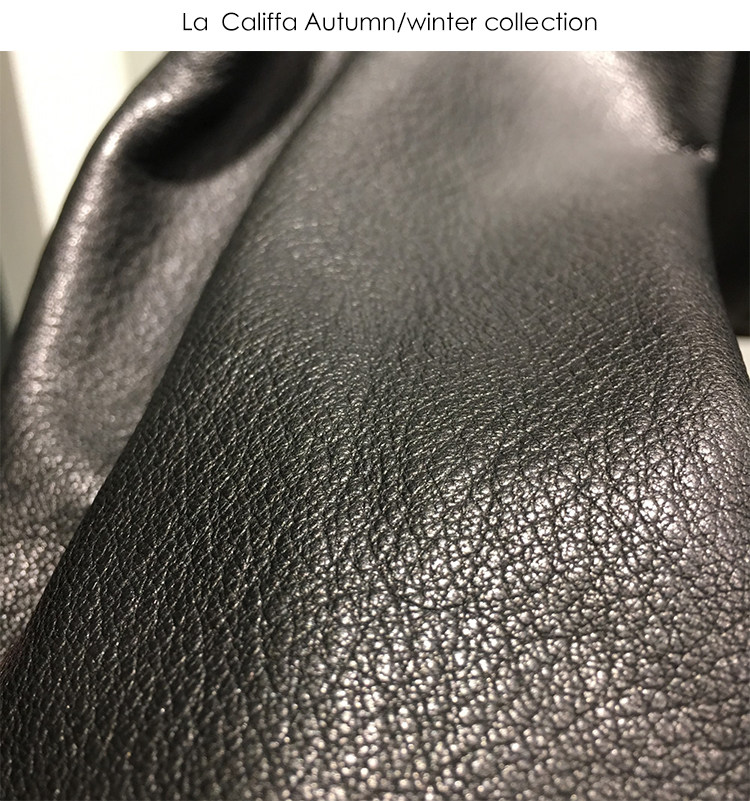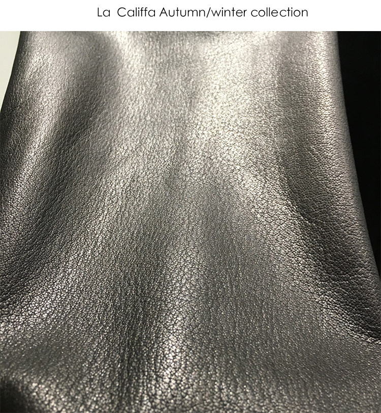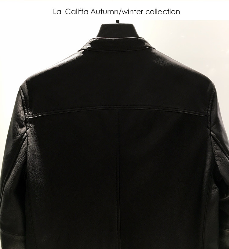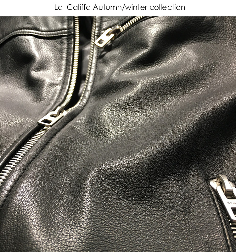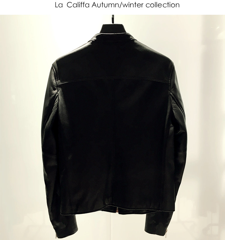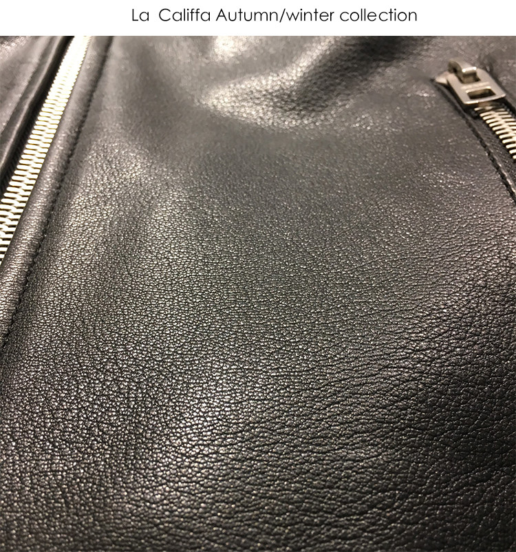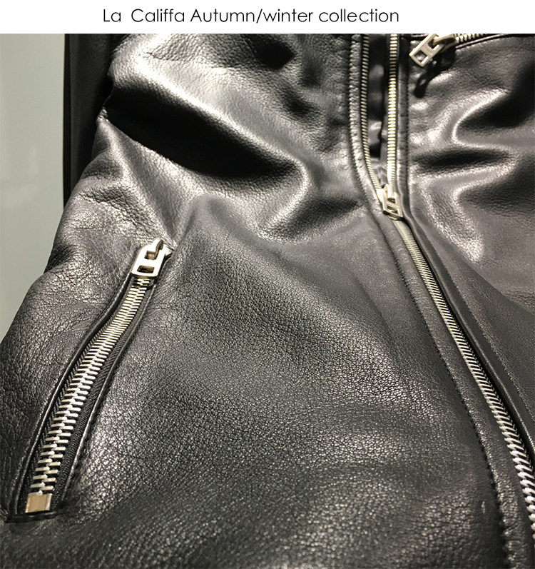 La Califfa Designer Italian Goatskin with a Calfskin Texture, Small Stand Collar, Genuine Leather Motorcycle Jacket