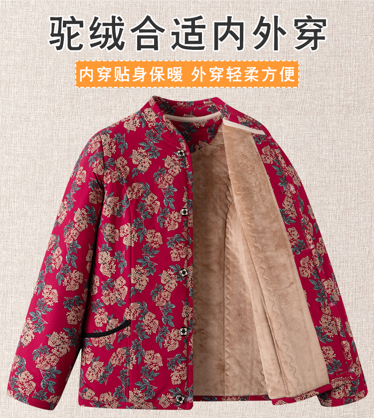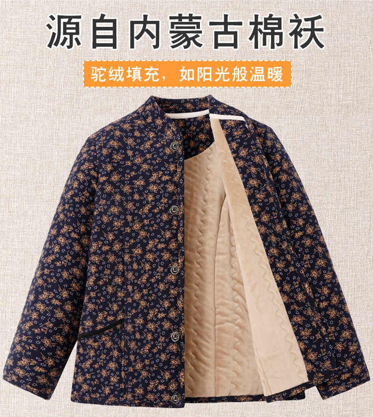 Middle-Aged and Elderly Women's Cotton-Padded Clothes, Suitable for Both Inner and Outer Wear, Winter Oversized Women's Loose Camel Wool Fleece-Lined Grandma Cotton Coat